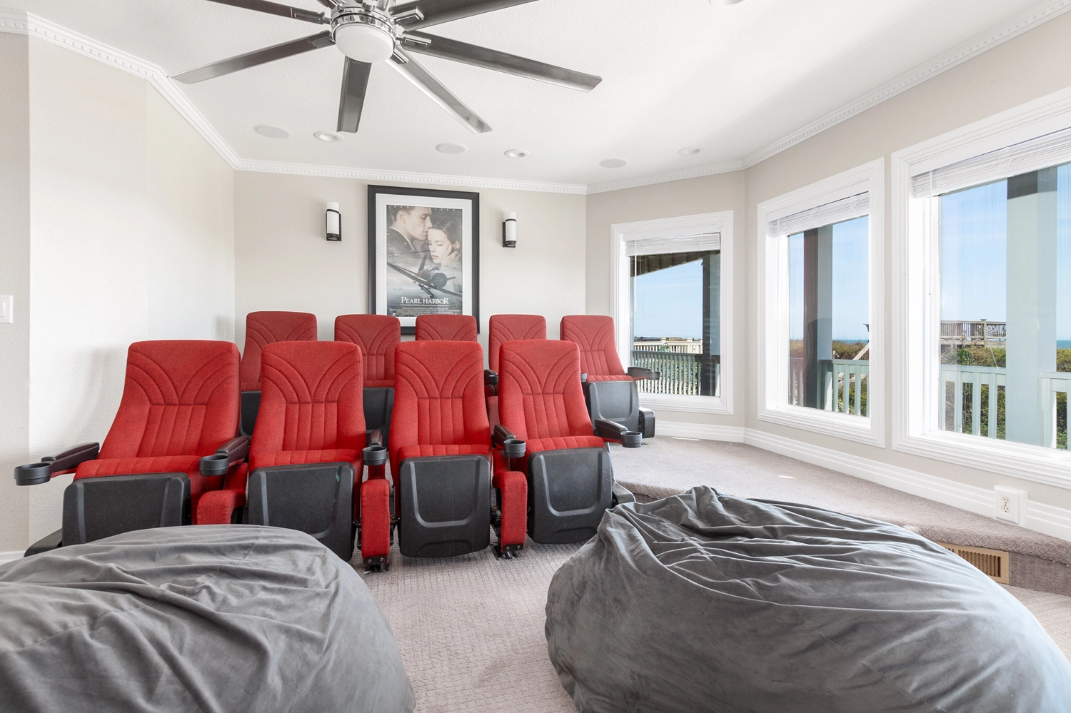 "The views of sunrise and sunset are amazing. Theater room was nice for our larger group. Bedrooms were a good size as well."