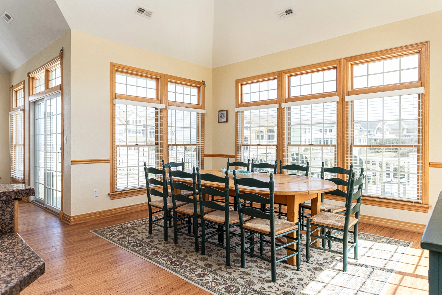 "Ample room for a large group. We only had five plus our dog so we had rooms to spare. Kitchen well equipped. Nice deck furniture along with pool furniture. They had a supply of beach chairs but we had our own. Billiard room was nice. Easy walk to beach with boardwalk. Nice neighborhood to walk. Overall very pleased."