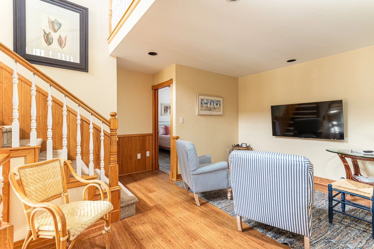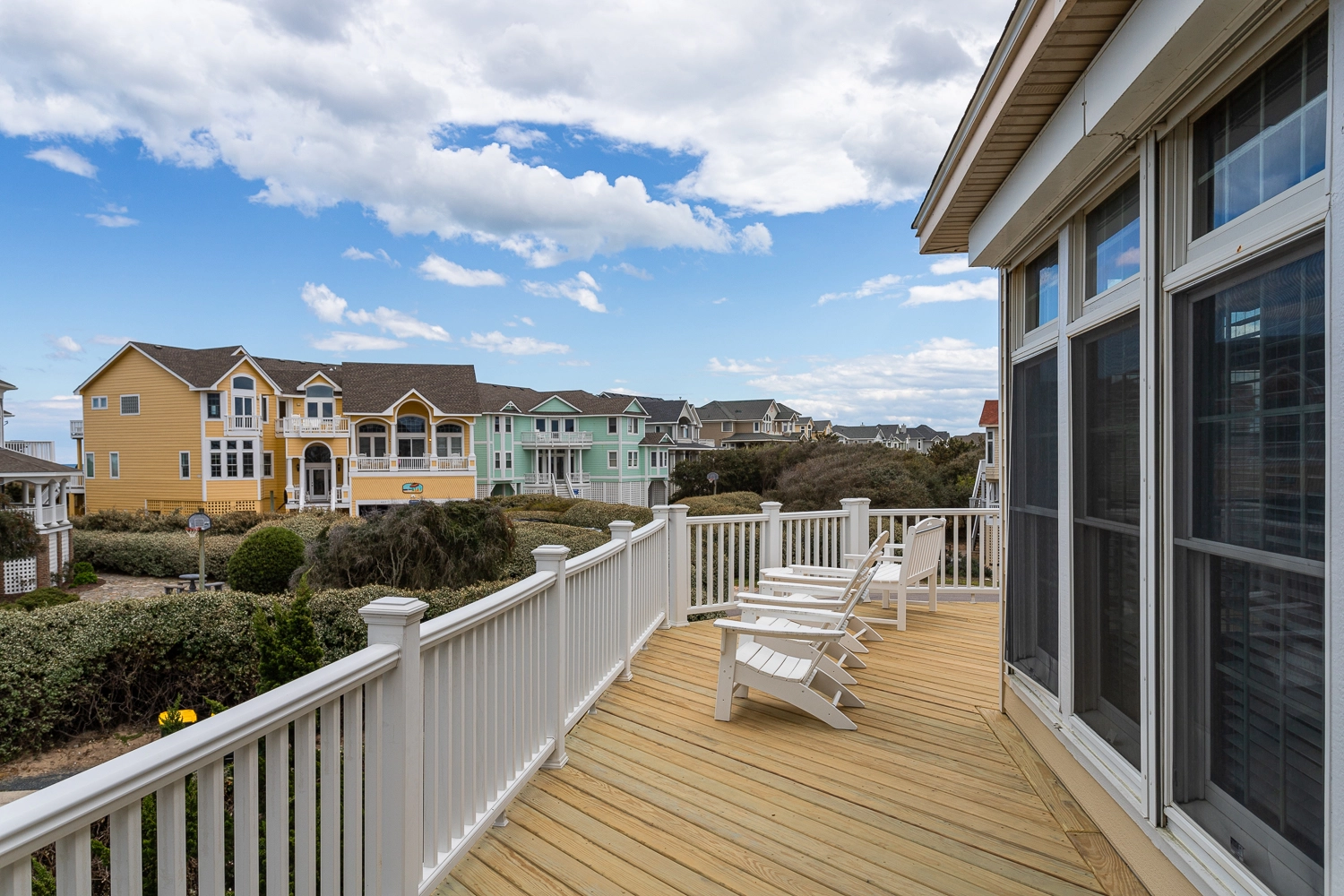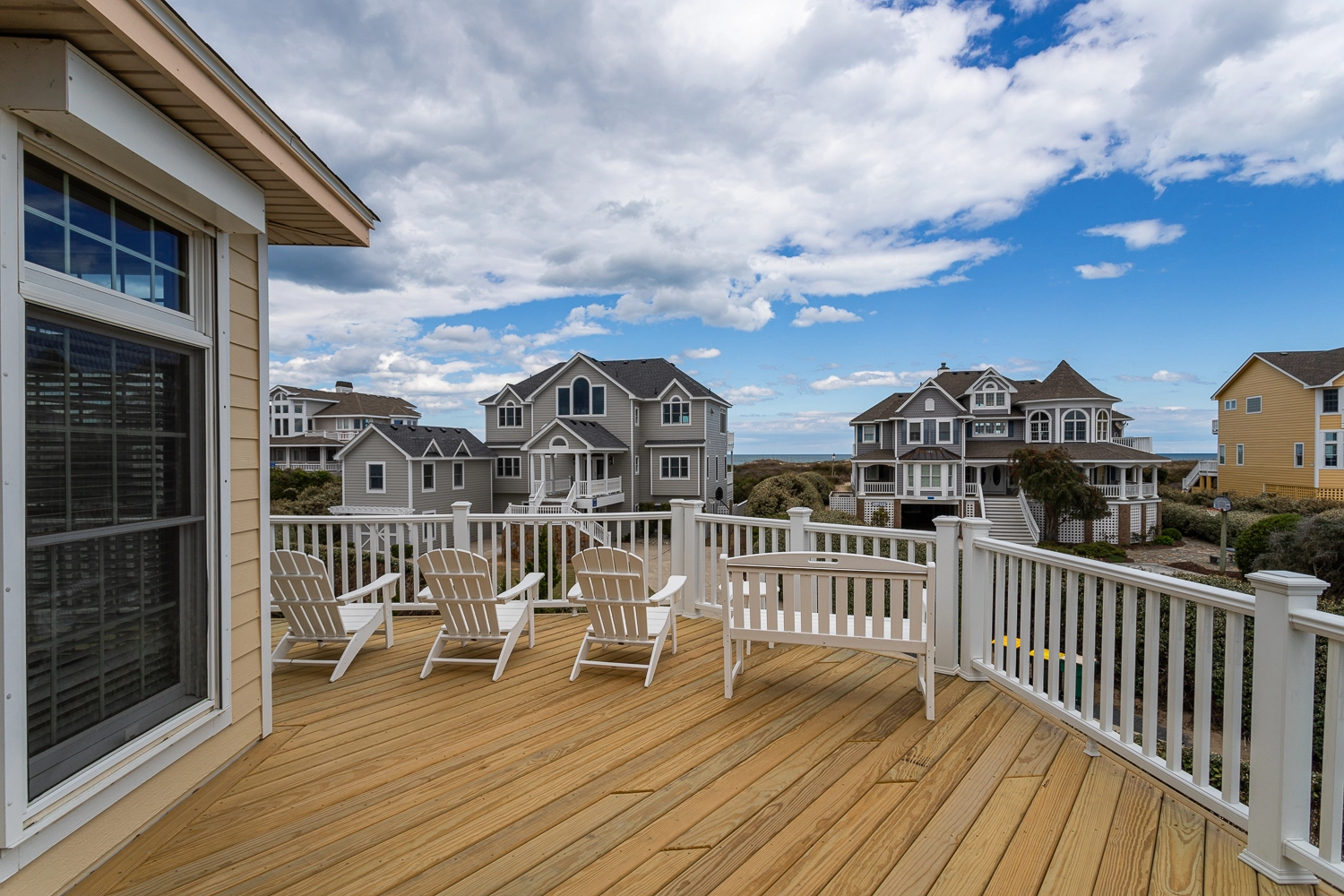 "Home is convenient to the beach access. The upper deck was well furnished with chairs for a small group of people."