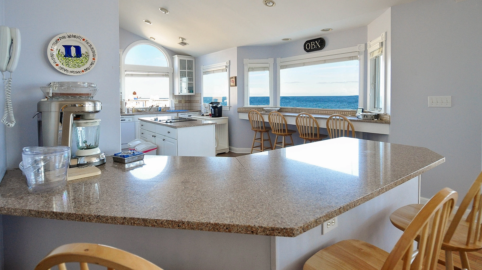 "The location in a gated community was great though keep in mind that public access is right next to the house so the beach does get more people than we’re used to when staying in other communities. We were the first of the season there so I think we encountered some upkeep issues. The pool had so much sand inside from the dunes that it was literally an inch thick and 2 feet out from the fence, which made it difficult to keep out of the pool and hot tub. We had to have an electrician come due to exposed wiring that had shorted by the pool and the grill was completely rusted out. All was fixed by the time we left though! And we were excited to use the Margaritaville mixer shown in the picture, but it doesn’t work (they have another blender to use). The elevator was so nice to have, the beds are all comfortable and the views can’t be beat! We bought a squeegee for the windows at Rocky’s in Corolla though because the sea mist gathers on them quickly. I’d def recommend doing that for pristine views, which includes the dolphins swimming by. We loved having 2 fridges, 2 coffee makers and 2 stoves! Everything you need is in the kitchen, there’s a ton of games and videos for rainy days and the whole house sound system (inside and outside) was great to play music. There is setup of an umbrella and 3 chairs by the beach, but it took us a few days to figure out which ones were ours because there’s no sign and there’s another company that sets up chairs and umbrellas in the same area. Access to the beach was right off a walkway to your left, which was so nice to have! Overall, we enjoyed the house and found it more than spacious to fit everyone."