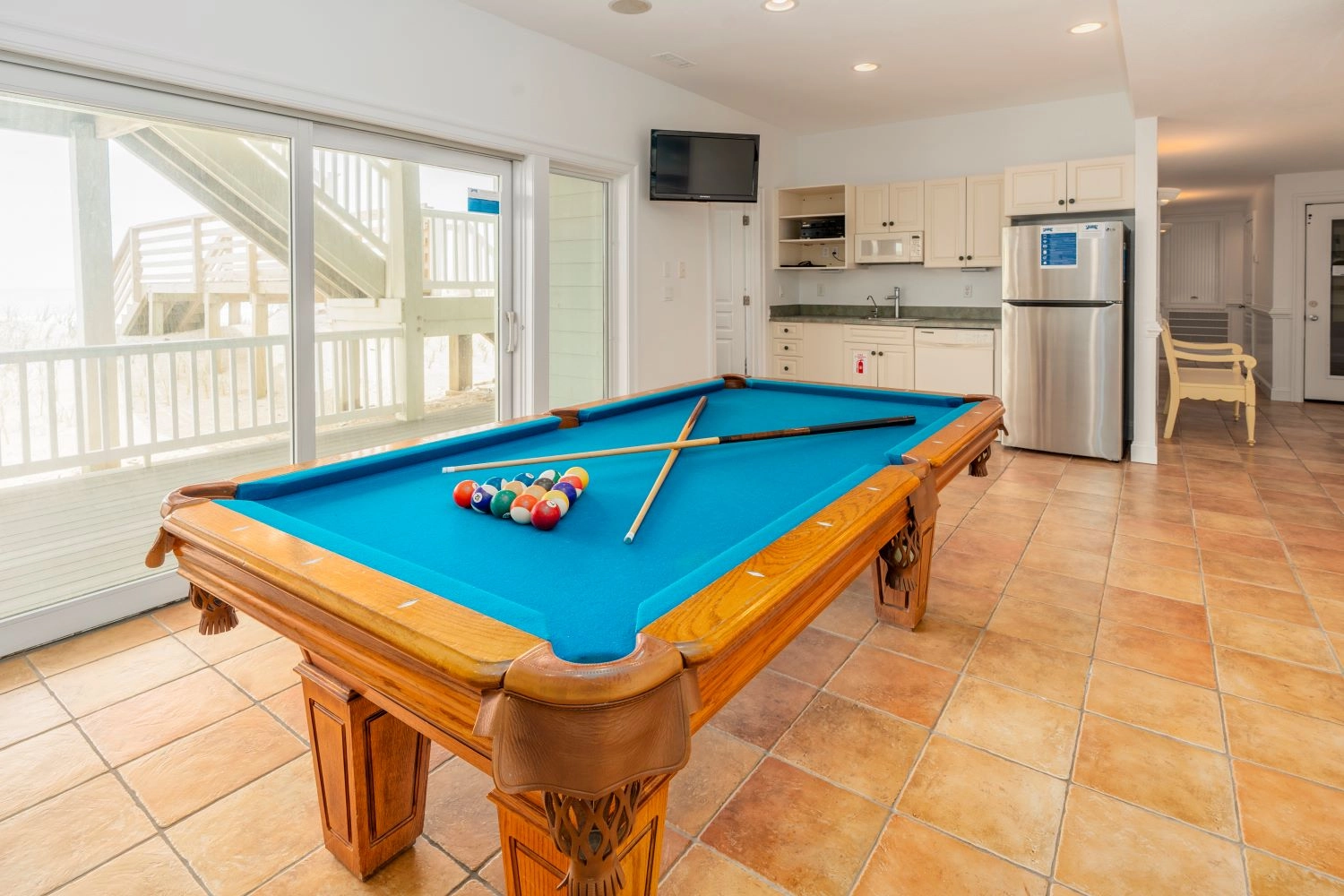 Theater room; rec room with pool table and kitchenette with refrigerator, dishwasher and microwave.