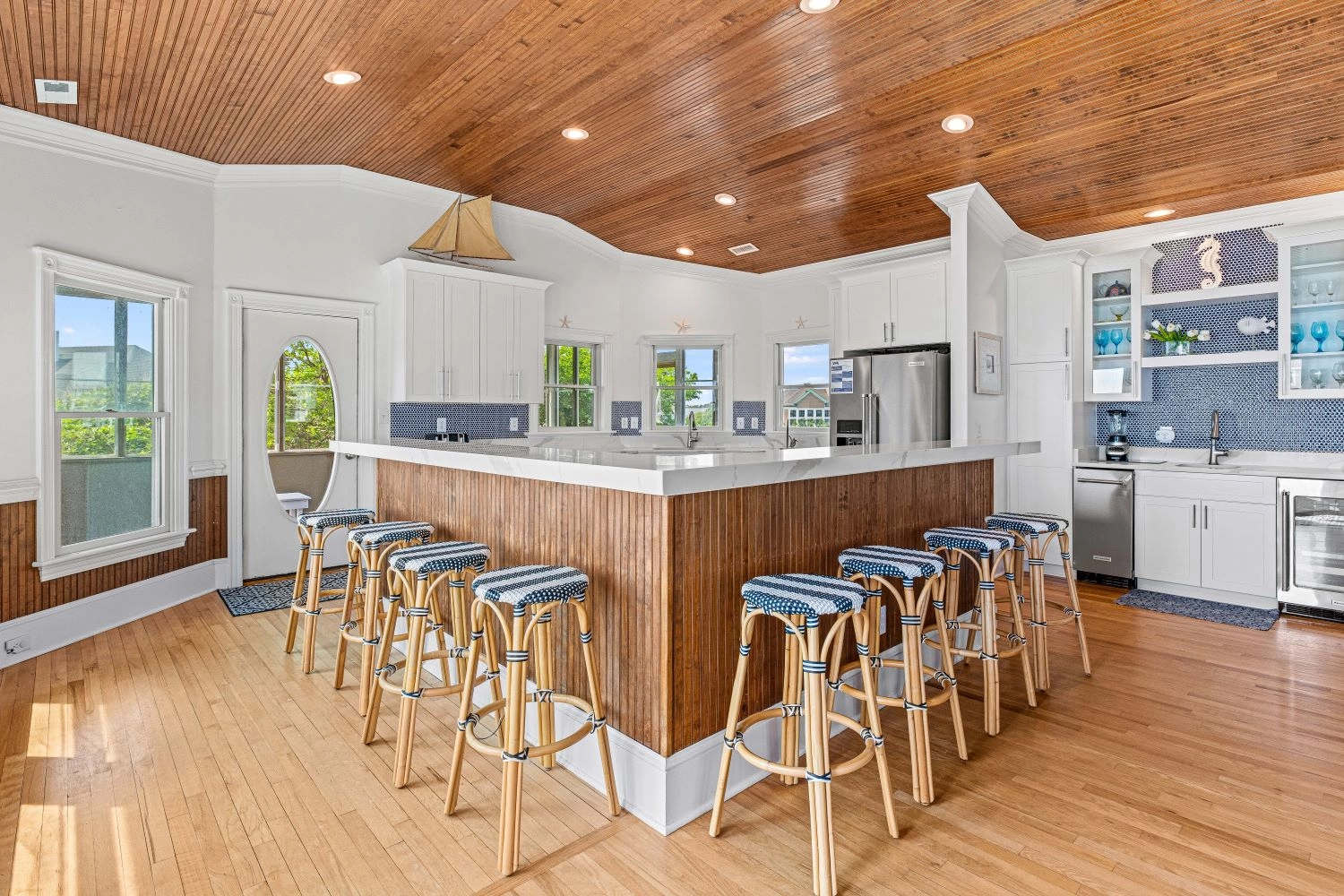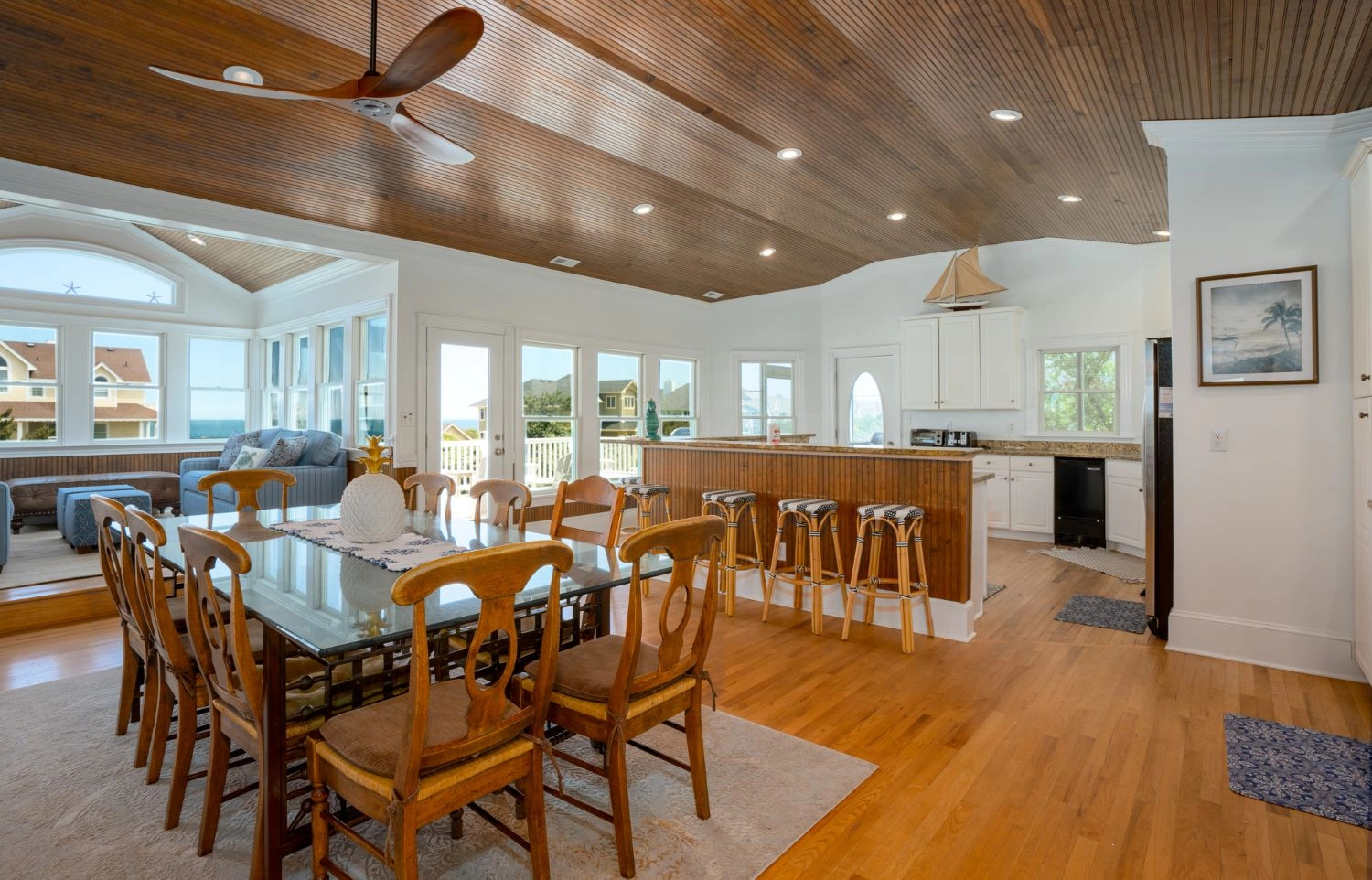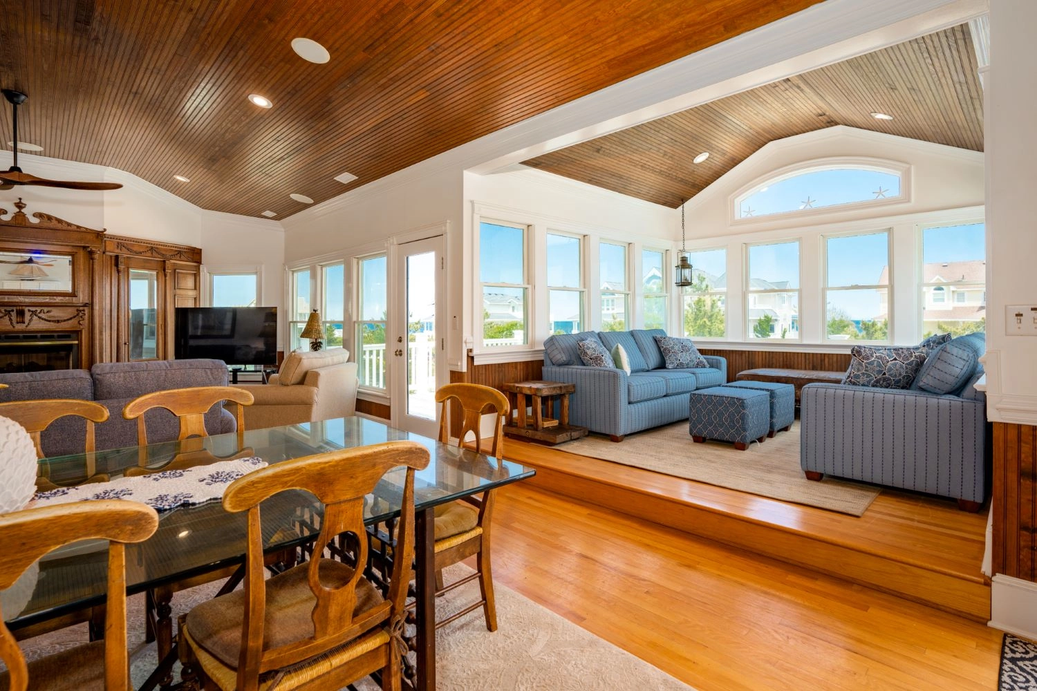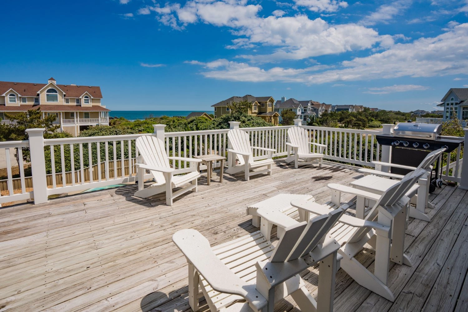 "We loved the multiple seating areas inside the home. The bedroom layout was just right for our five families. The pool had plenty of chairs for all of our group. The elevator made things especially convenient and was very quiet so as not to wake napping children. The outdoor recreation areas were perfect for our families. And the beach access made coming and going so easy!"