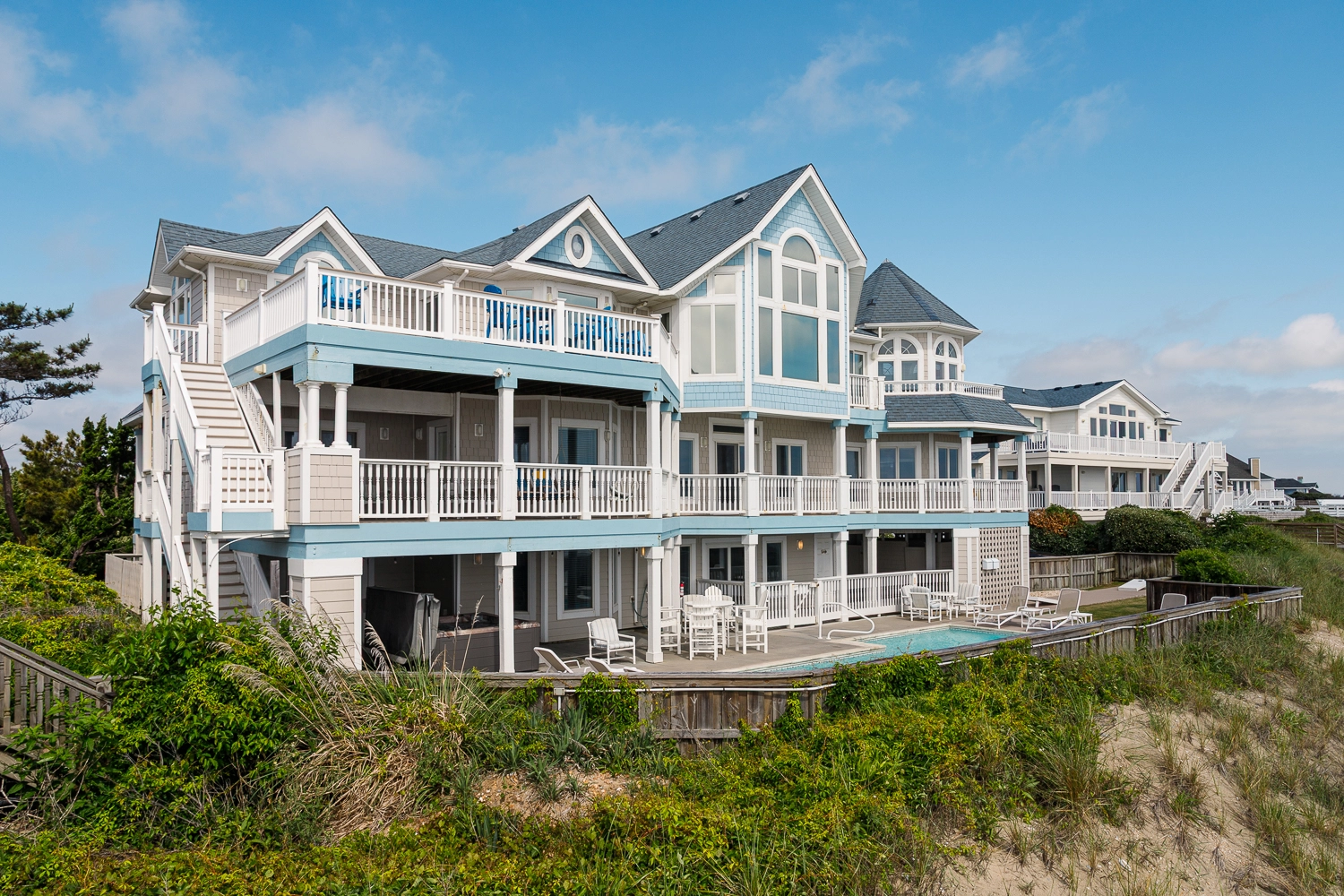 Elevator, private pool, hot tub, gas grill.