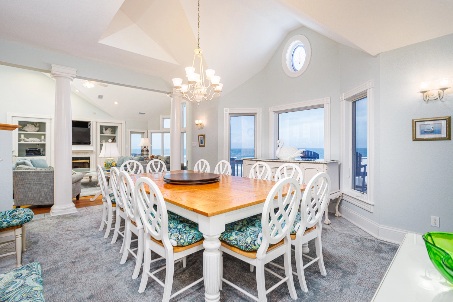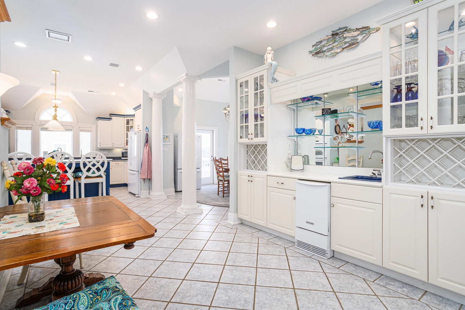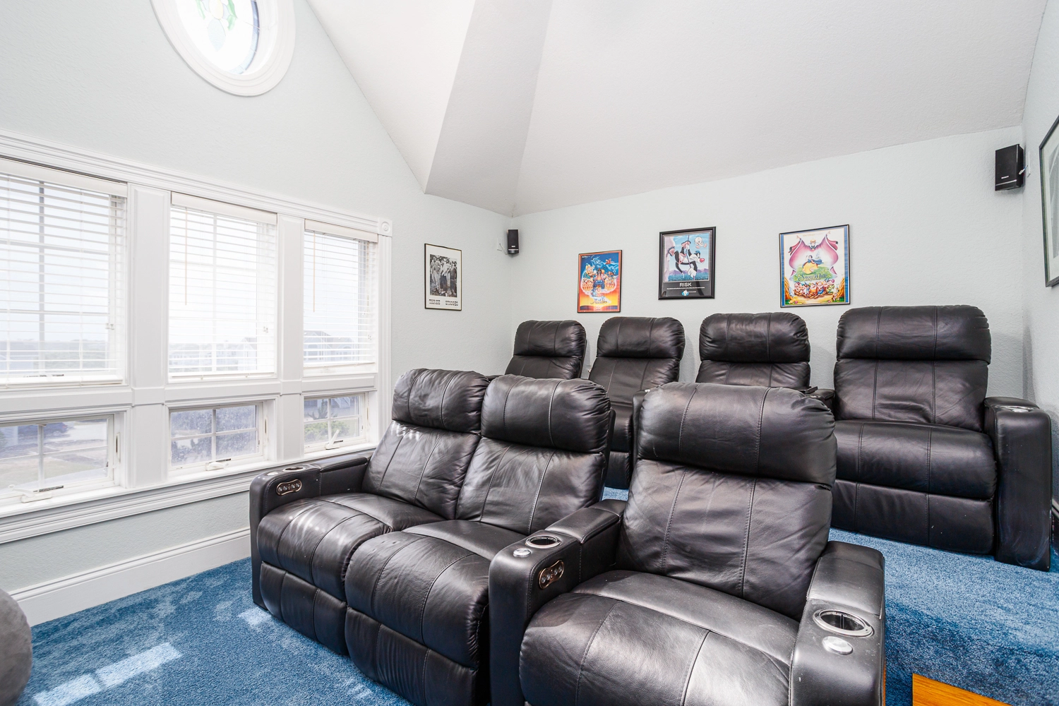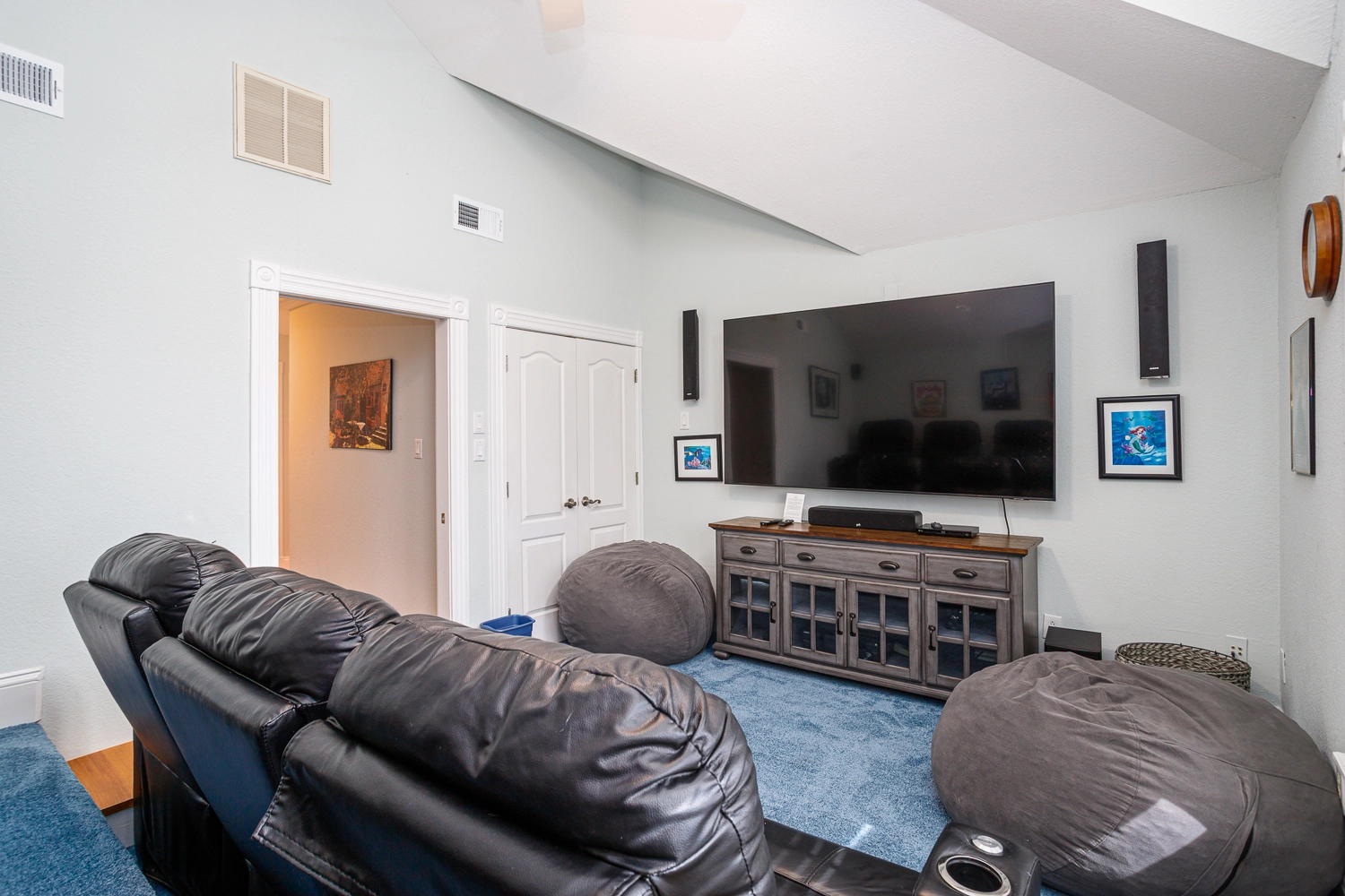 Great room with gas fireplace; kitchen; dining area with wet bar with ice machine; theater room; laundry.