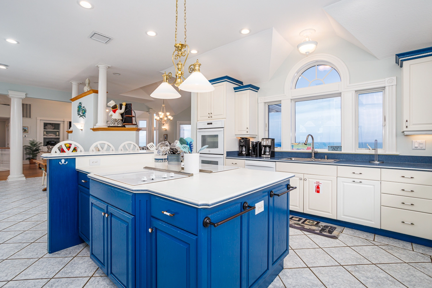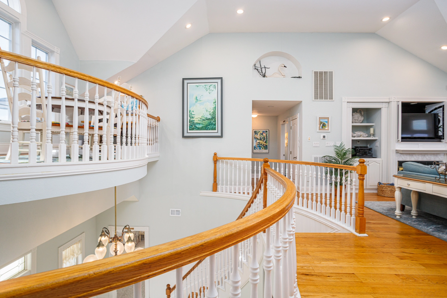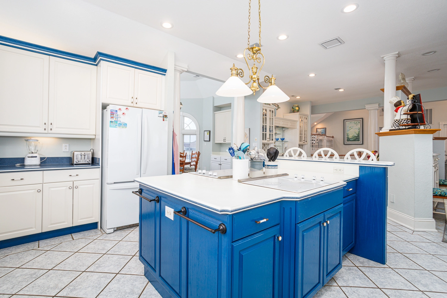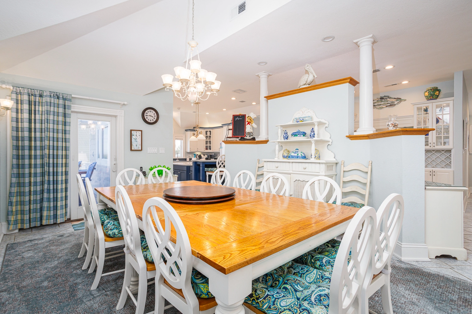 Great room with gas fireplace; kitchen; dining area with wet bar with ice machine; theater room; laundry.