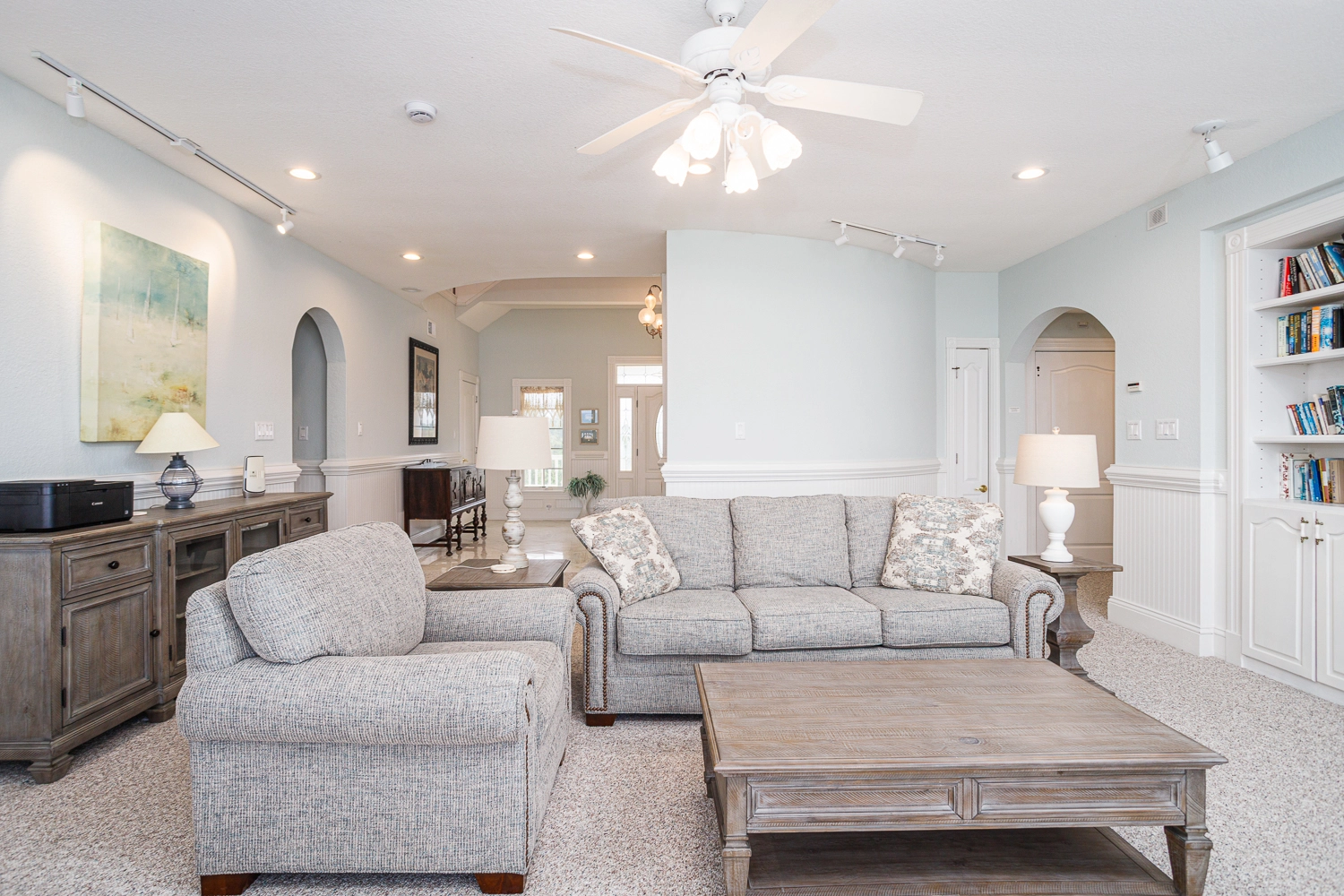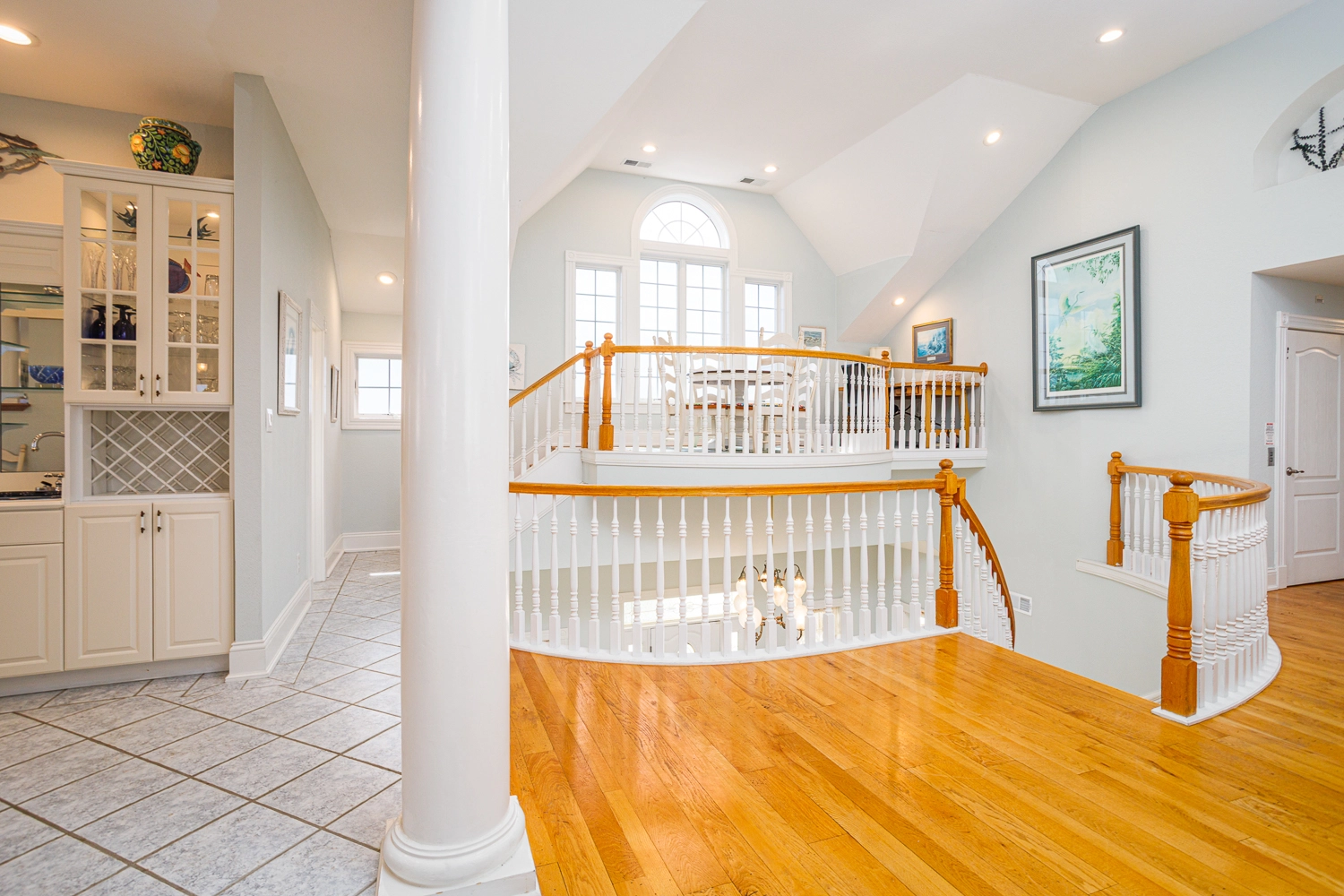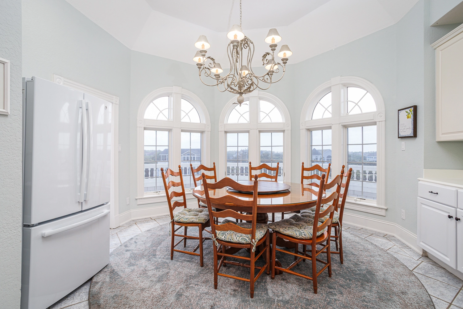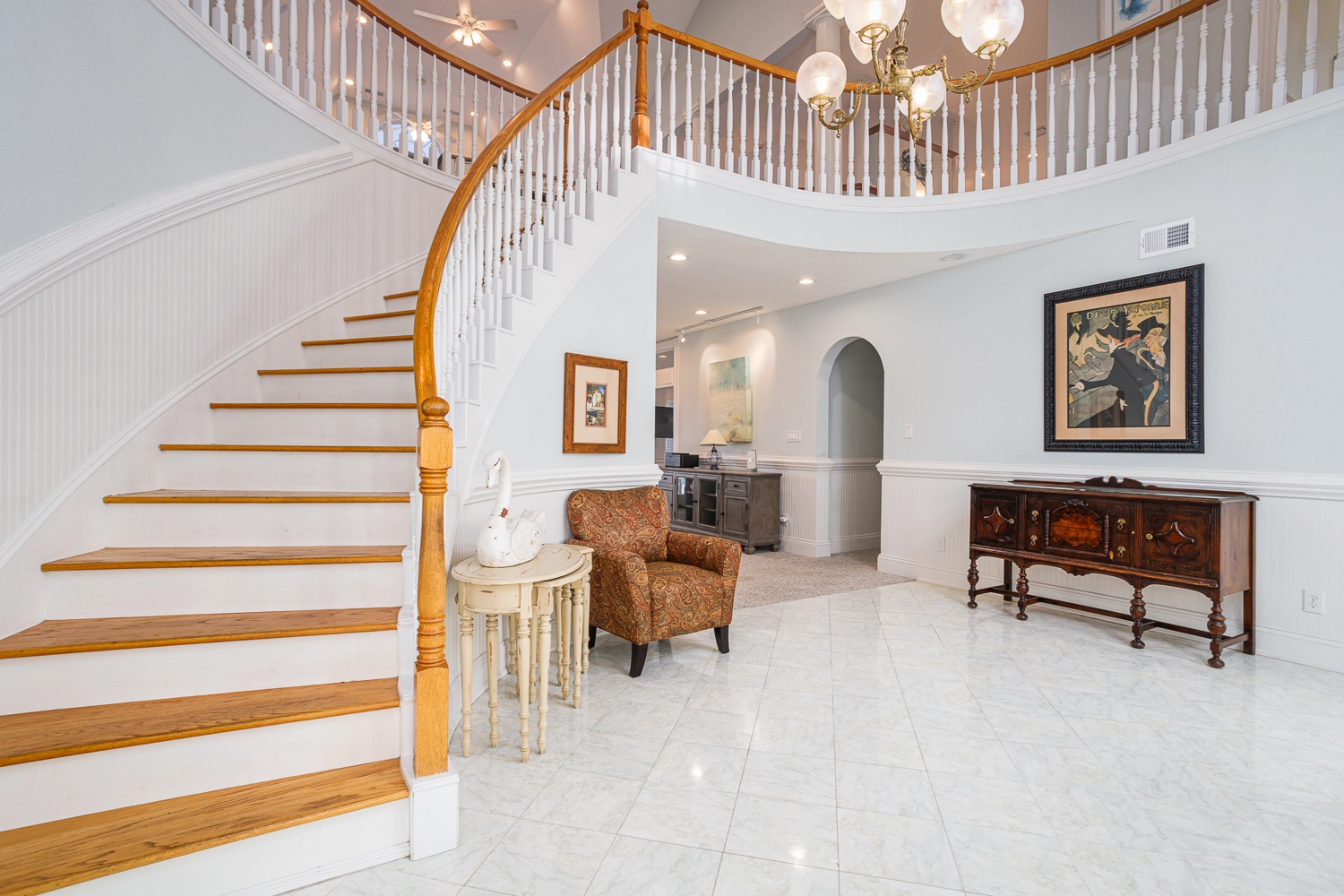 Great room with gas fireplace; kitchen; dining area with wet bar with ice machine; theater room; laundry.