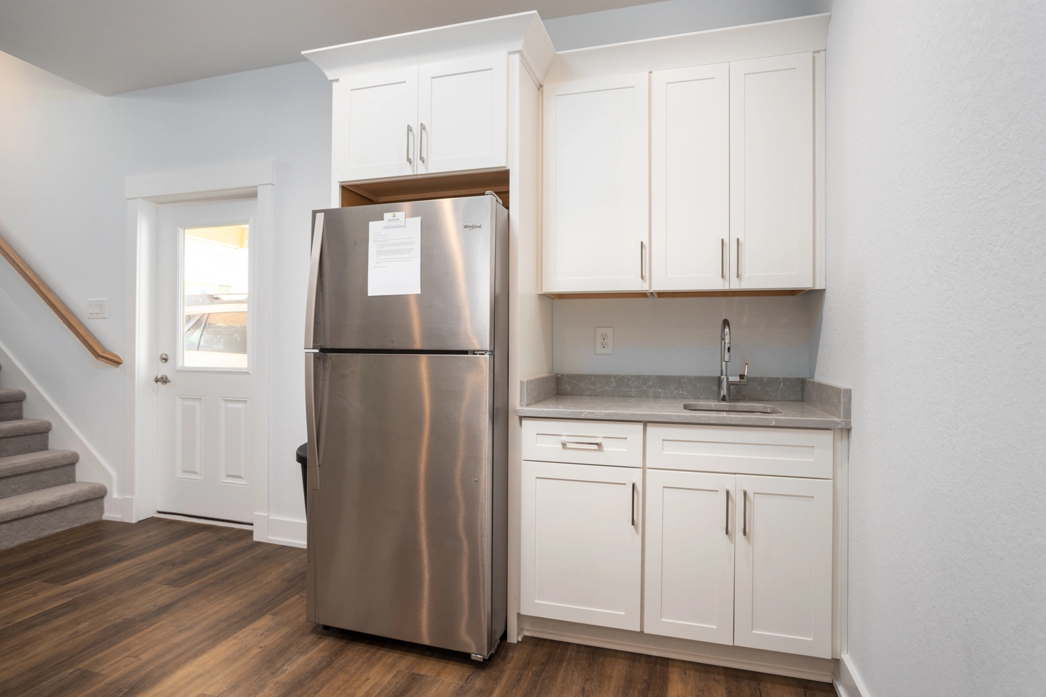 Rec room (DSS) with pool table, wet bar and refrigerator.