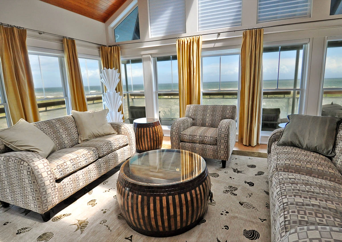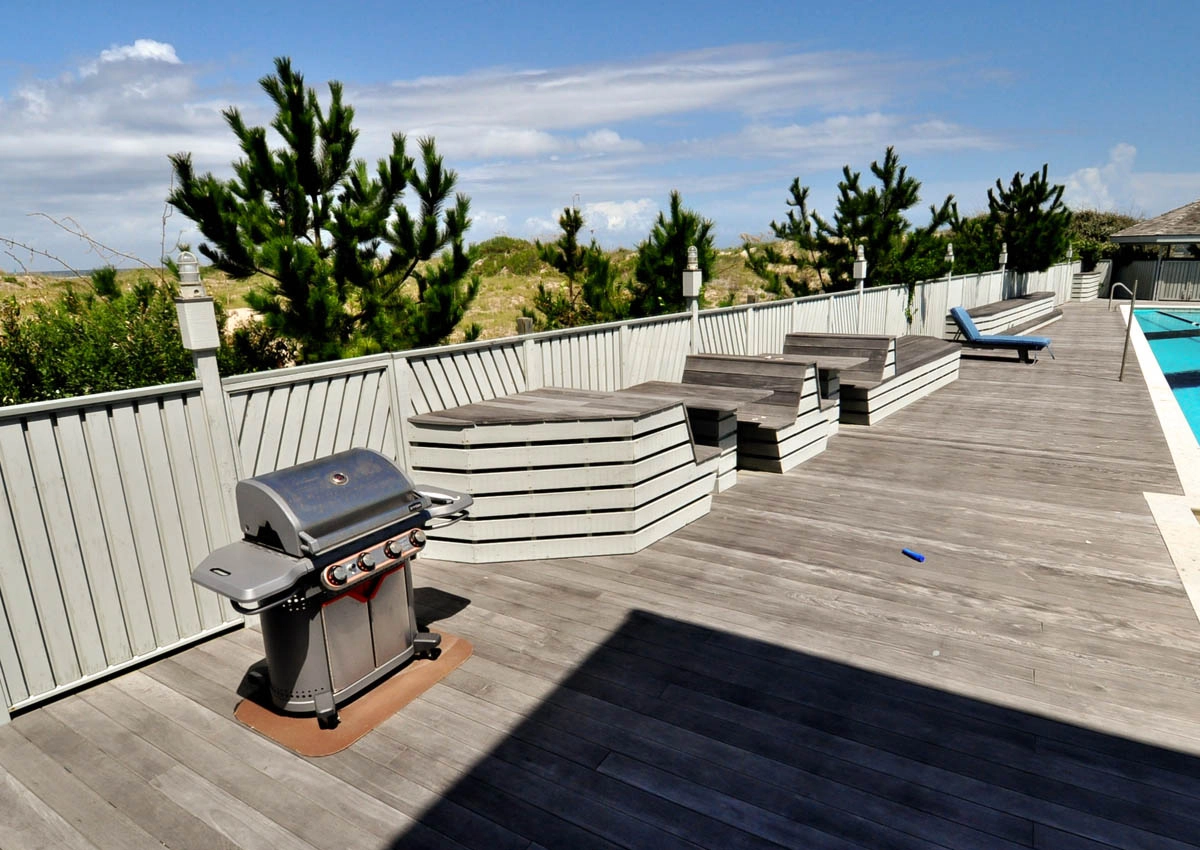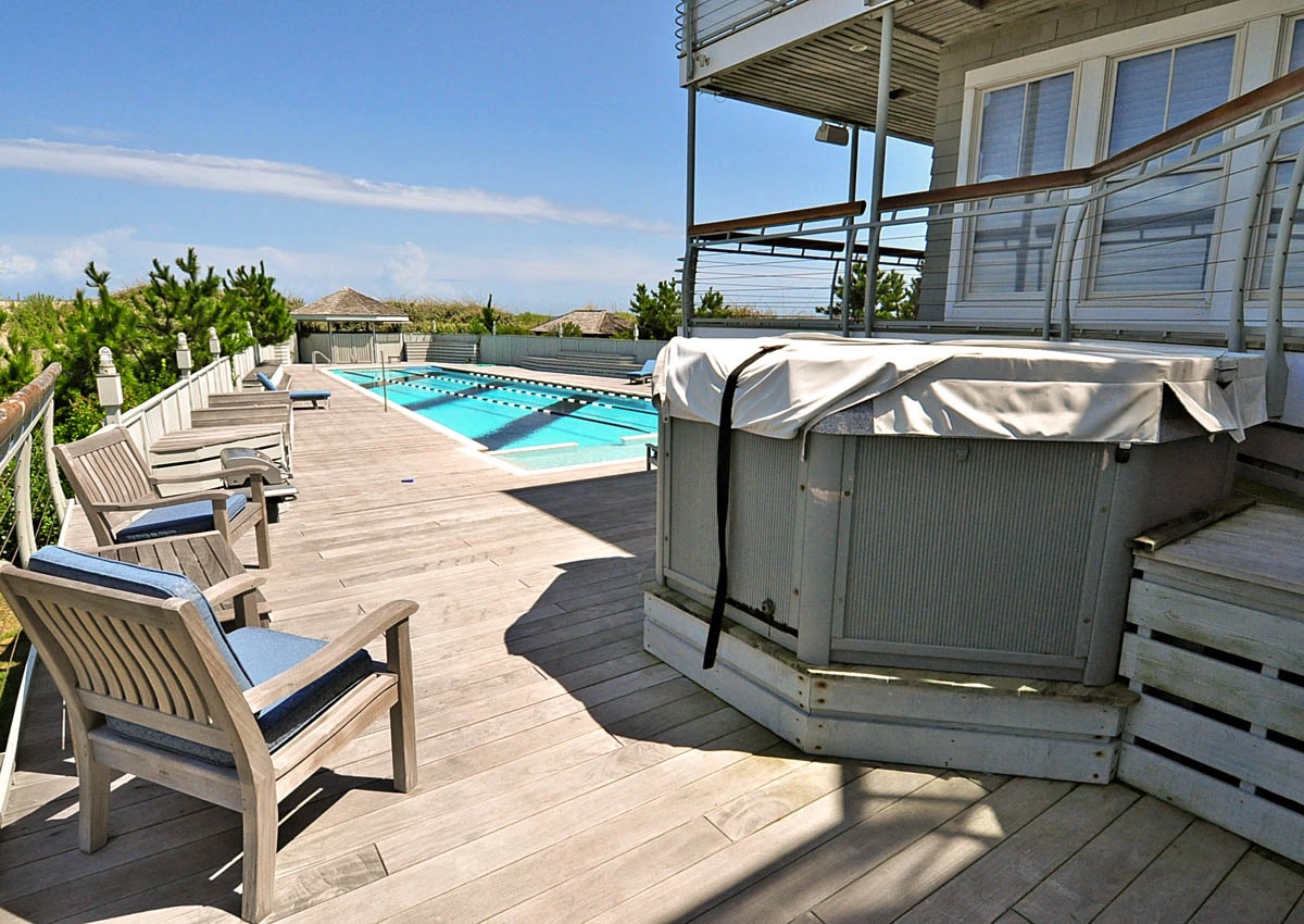"Pool & Hot tub. Location beachfront. Top living room & all windows all around. Theater room. All decking and outdoor grill & fridge."