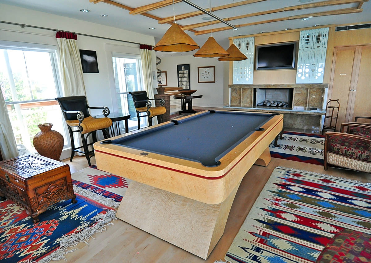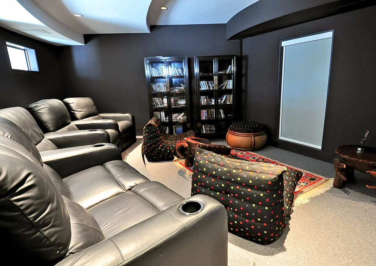 Rec room with pool table and wet bar; theater room with wet bar; laundry.