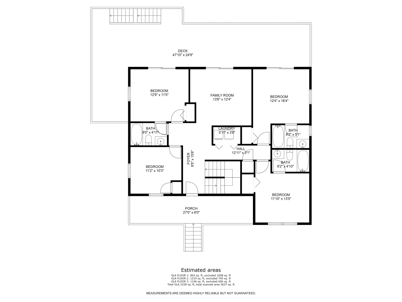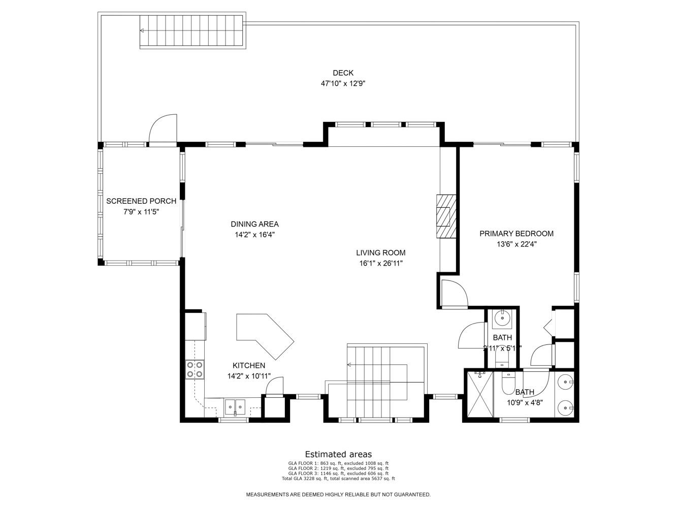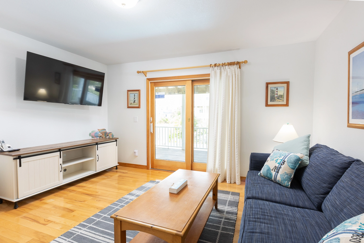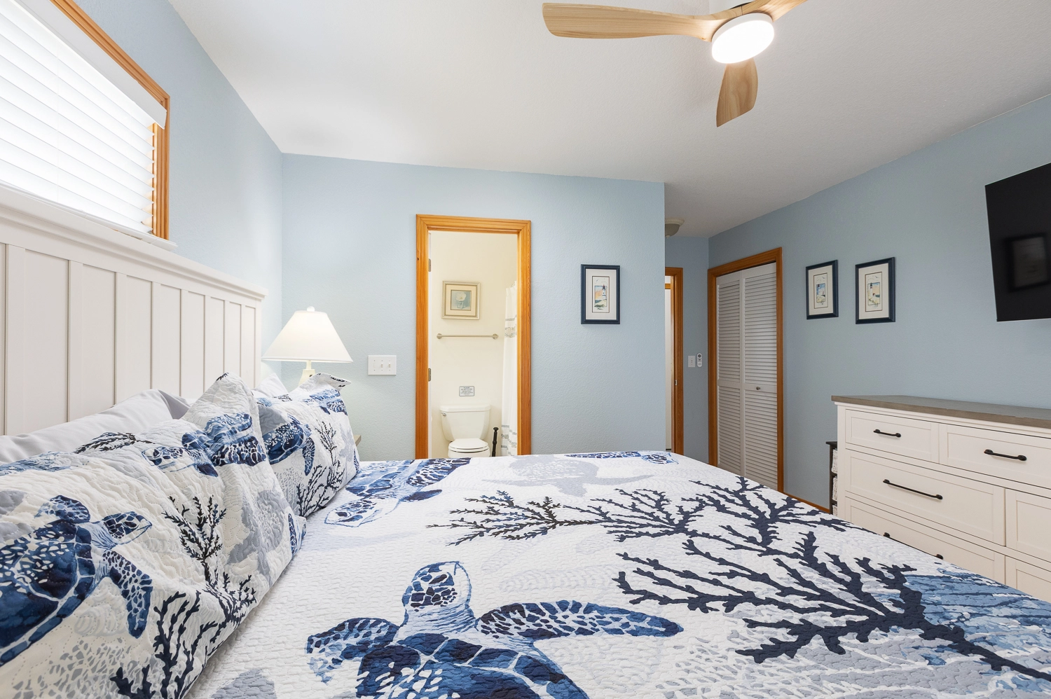 Queen, Semi-private bath, Shower/tub combo, Deck access