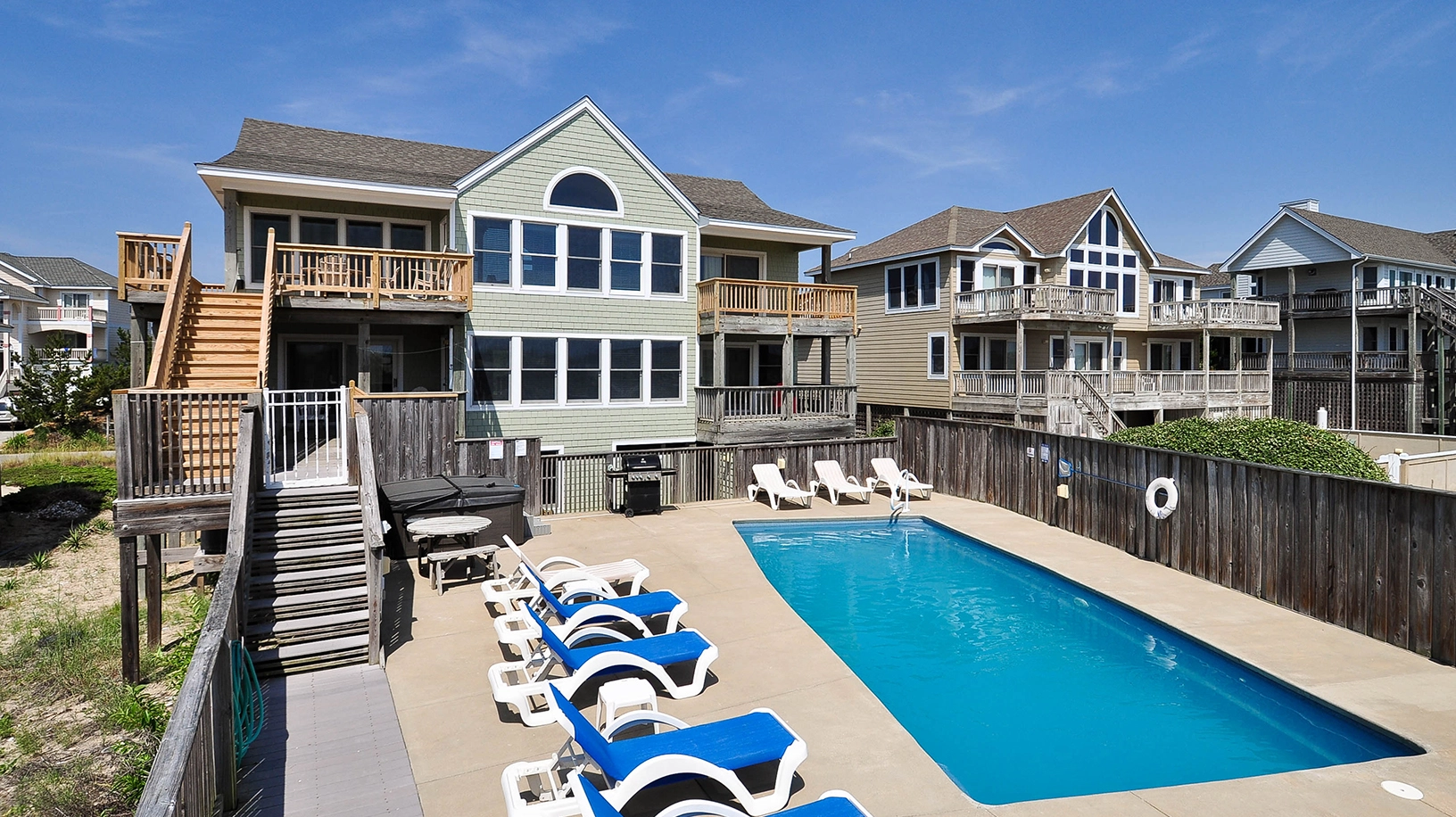 "The beach and location are wonderful. Besides the location, the property has all the essentials- pool, hot tub, gas grill, inviting pool deck, and did I mention the view?!! Beds were very comfortable. Appreciated very much the beach chairs"