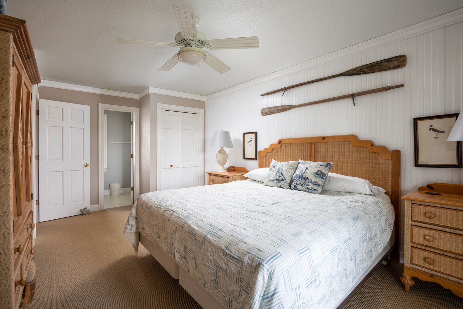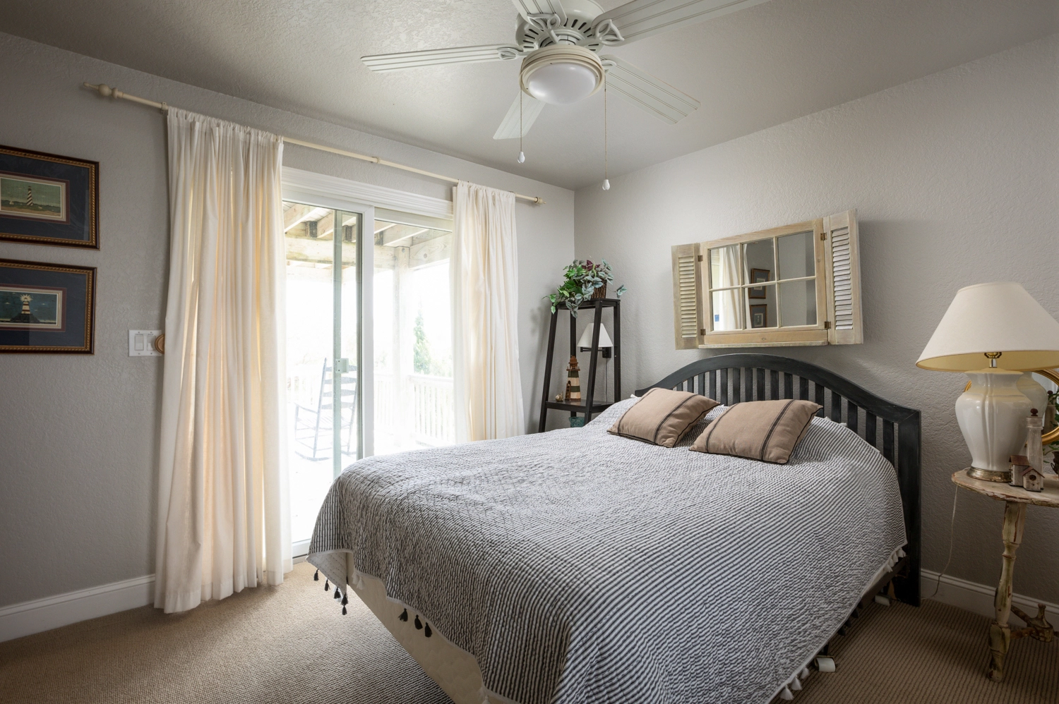 Queen, Shared bath with room 1, Shower/tub combo, Deck access