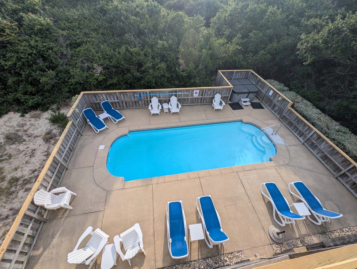 "The private pool, hot tub, closeness to the beach, the front and rear decks are great. Nice sized house for our group of 18."