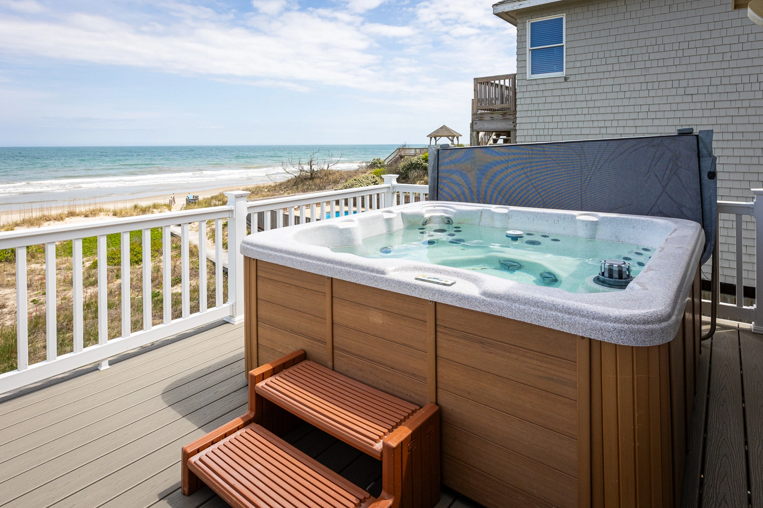 "We loved the top deck hot tub. So convenient for older children who still need supervision but can independently swim. Home was stocked with all kinds of helpful things, and we truly enjoyed our stay. Love how close it is to the ocean. The fireplace was LOVELY for those couple chilly days we had. We had a wonderful week. Highly recommend heating the pool… it was like bath water. Again, lovely for those cooler evenings. Lastly, we had an issue with the hot tub AND pool heater and both were fixed same day. Thank you!!!"