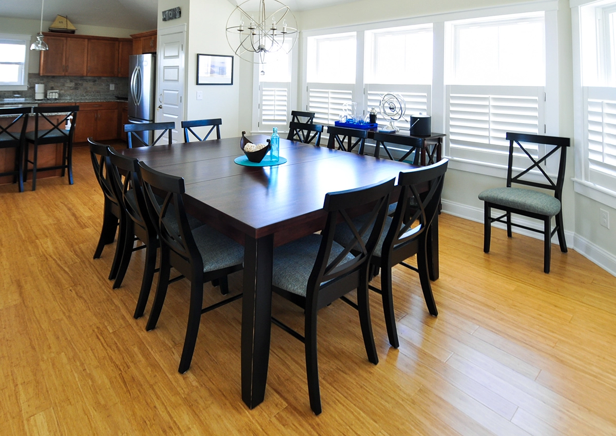"That is lots to love about this Corolla beach house. The layout worked great for our family. The kitchen was well stocked. There is a thermostat on each floor to control the temperature. The house is situated only a short walk to a very nice community beach access walkway. We spent a ton of time on the covered decking. We loved that the 3rd floor (main floor) deck was screened. The house has generous lighting fixtures. The electrical switches are nicely identified on the switch plate as to what is controlled. We could play board games after dark on the porches because the lighting was so plentiful. We are looking forward to returning next year."