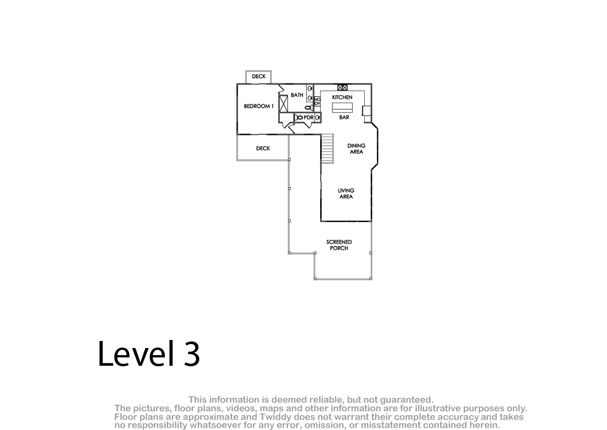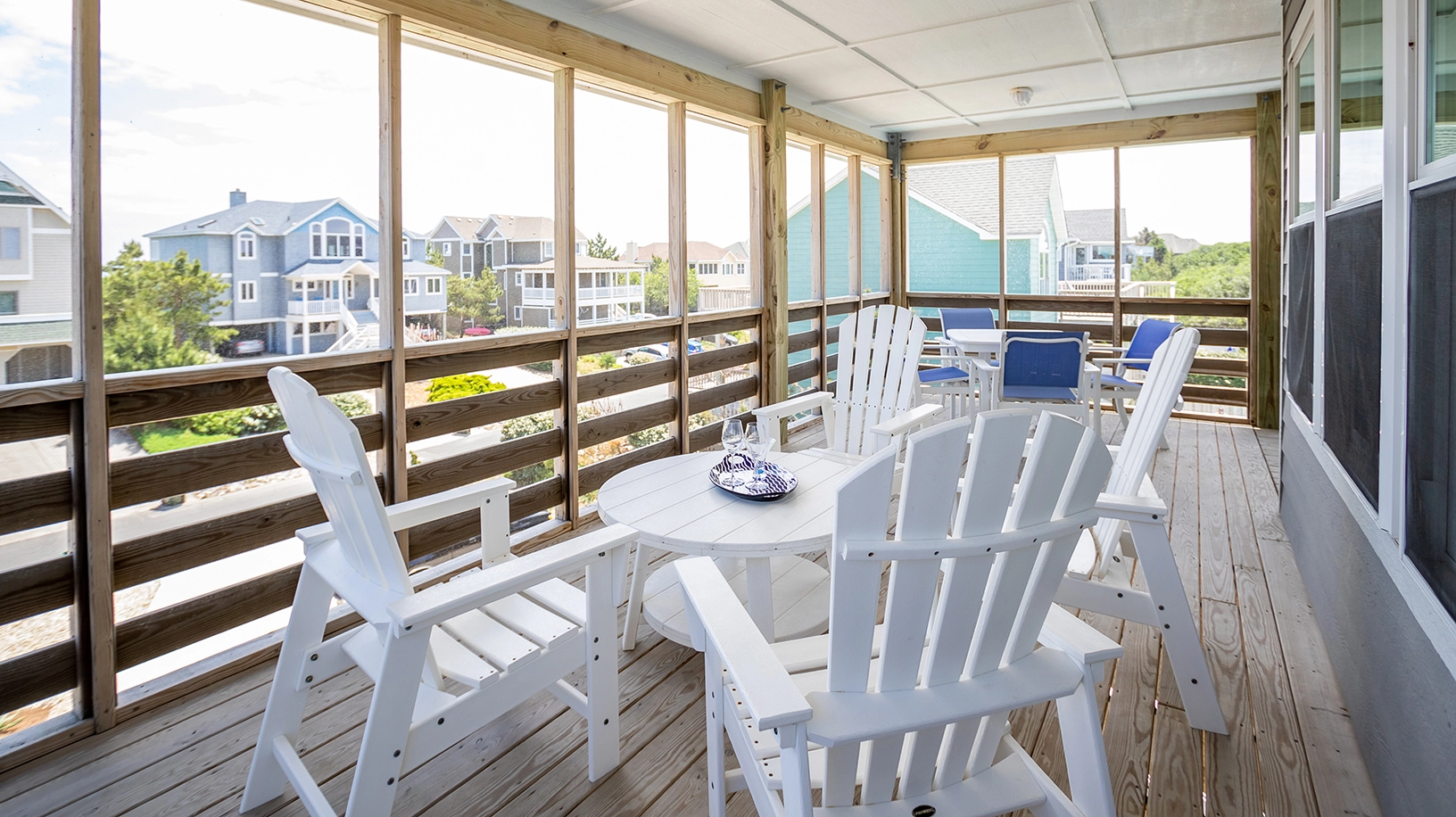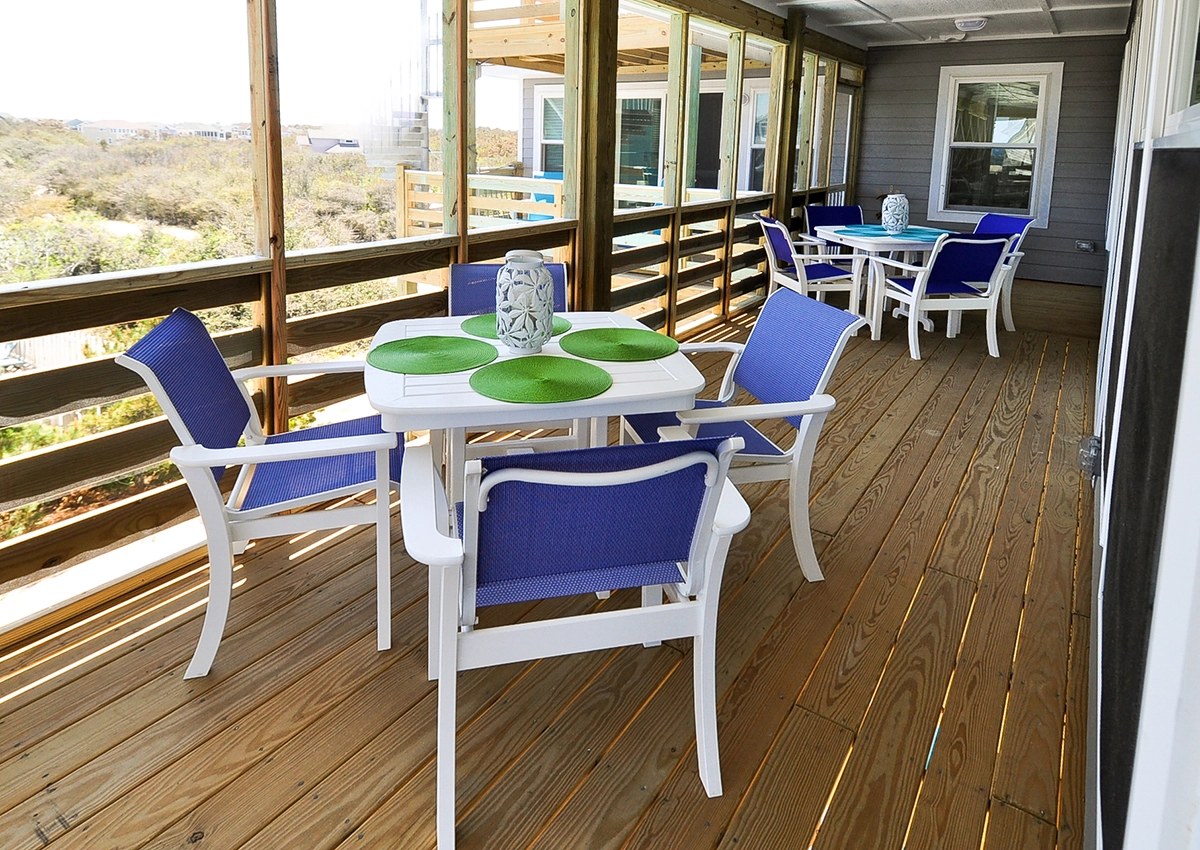 Great room; kitchen; dining area; screened porch; open decks, access to rooftop deck.