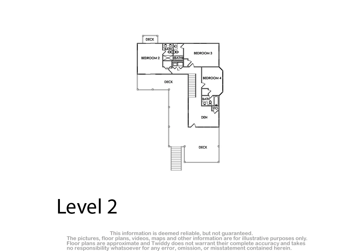 Den; laundry; open decks.
