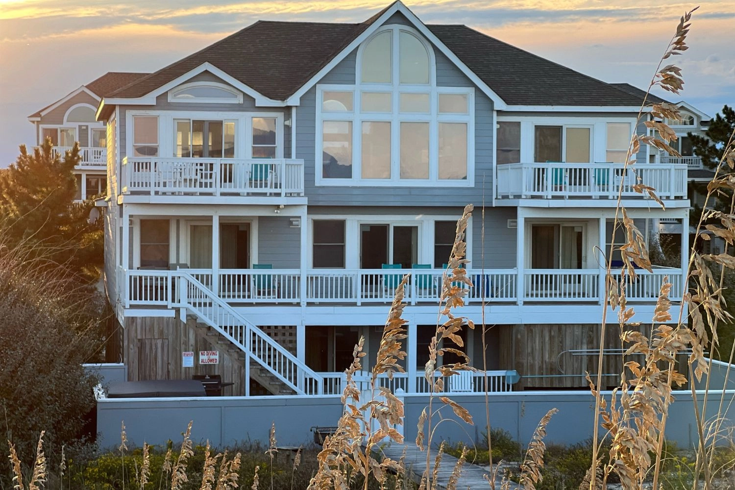 "We really enjoyed staying at this house. Here’s the beak down: Pros - The house is exactly as described, views are gorgeous just like the pictures. It is comfortable, spacious and well equipped. Towels packaged in plastic ready on made beds. Very professional. This was the first time booking with Twiddy for us and we’re impressed. The app was great and service is excellent. Our internet cut out on last day. I was able contact the agent via text and get it fixed. Cons - Beach access walkway is rough. It requires climbing a steep sand hill. This was a problem for elderly in our group but they utilized public beach access nearby. Pool is not heated. We happened to get uncharacteristically cold weather during the week and would have happily paid for heated pool. Although the hot tub was great."