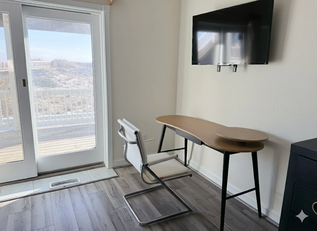 "We had a great time at Net Results! Great views of the ocean from the top floor; fully stocked kitchen (complete with labels!); Pool was super refreshing and we loved the 2 outdoor showers! The hot tub was a little too hot and we could not adjust the temperature. The walkway to the beach was nice, but be prepared to climb a little over the dune. Rooms were a great size, including the great room. Thank you for sharing your home!"