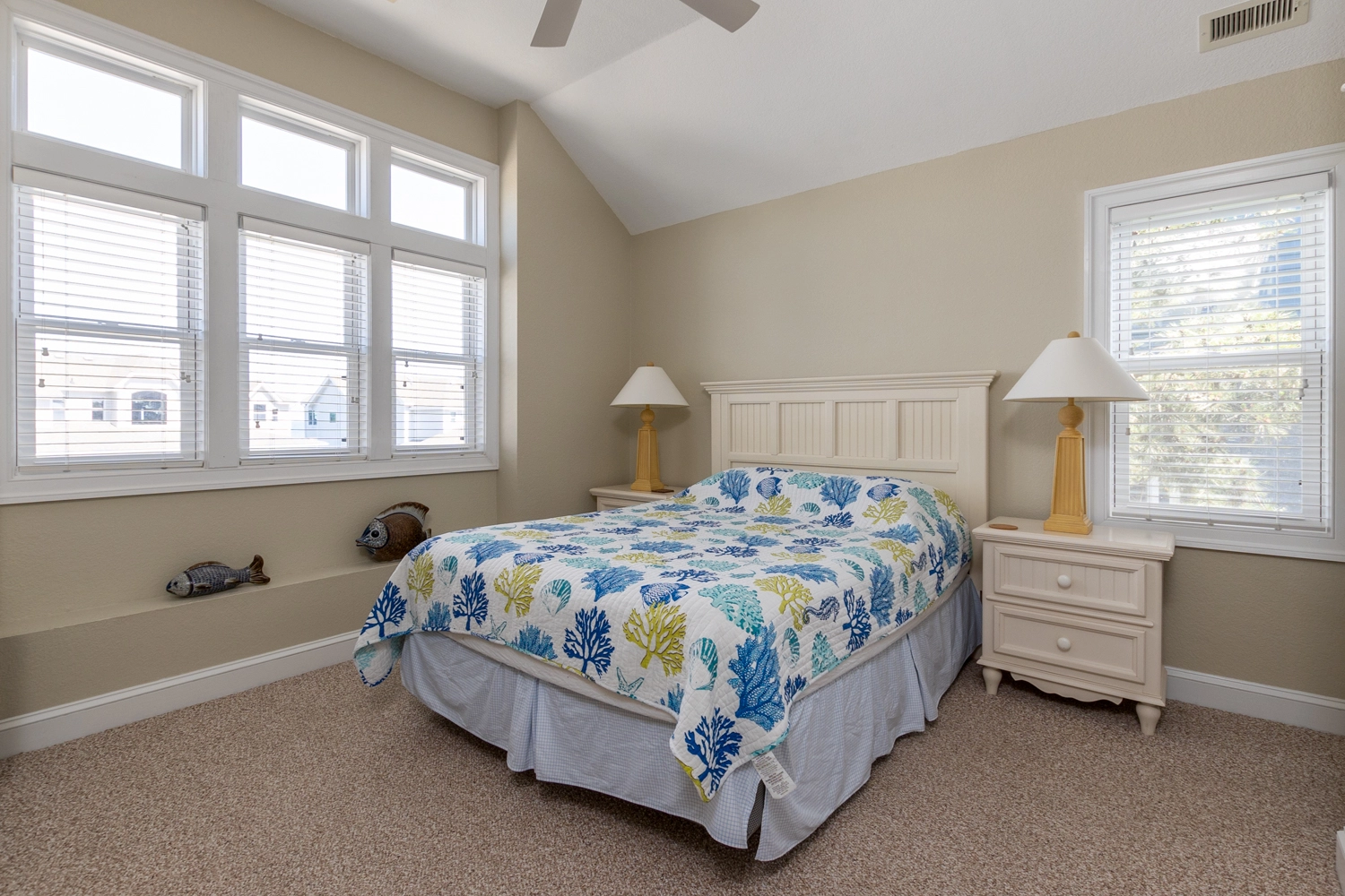 "The house is great. Plenty of room. Bright, and well decorated. Very close to walk-on beach access and also very close to the drive on access. The kitchen has a ton of pans, utensils, etc. making it that much easier to prepare large meals. More than any other home I've rented. The only thing I would add to make it better is light blocking drapes in the bedrooms. It gets very bright very early and hard to stay asleep."