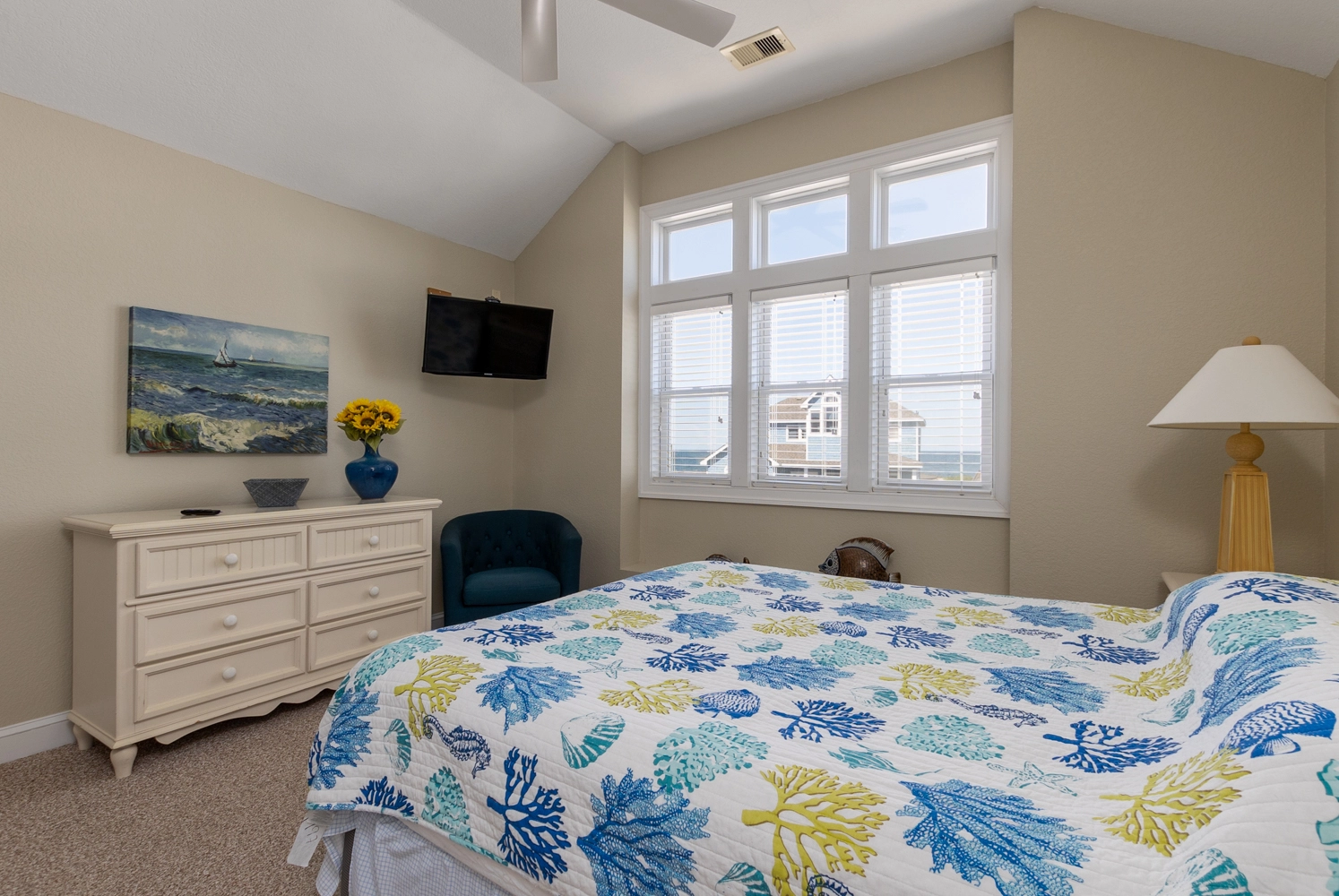 "Ocean Hill 1 was perfect for our family! The beds comfortable, kitchen utensils, pots and pans were better than any past rental, good ocean views from top deck and ground level rooms were better than any past rental. Good beach access, we like the challenge of that dune hill, ages 20 months to 69 years did it twice a day for two weeks! Only suggestion, we would have liked some outdoor tables on top decks and poolside. Thanks for the stellar weather too!"