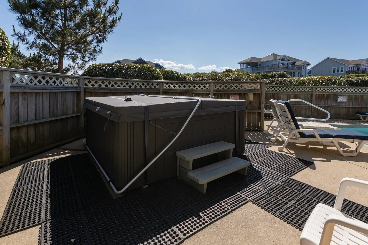 "First, a word about the foot path beach access right across the street. Unless you're a teenager, it's almost unpassable. It's super SUPER steep and requires significant athletic ability to get back up. We used the wooden pathway 4 houses down and that was much easier. The house was pretty nice. The hot tub us big and the pool area is nice. The kitchen is well equipped, although the refrigerator could definitely use an update. There were lots of house games which we enjoyed. We were told by Twiddy before we came that the comforters would be in the closets (due to Covid), but they were not and we were only provided with very basic (cheep/itchy) blankets that are normally the extras in the closets. We liked the updated porch furniture. Overall nice house, but not sure we'd stay there again because it was difficult for my 70 year old mother to get to the beach. (We'd picked this house due to it's close proximity to beach access.)"