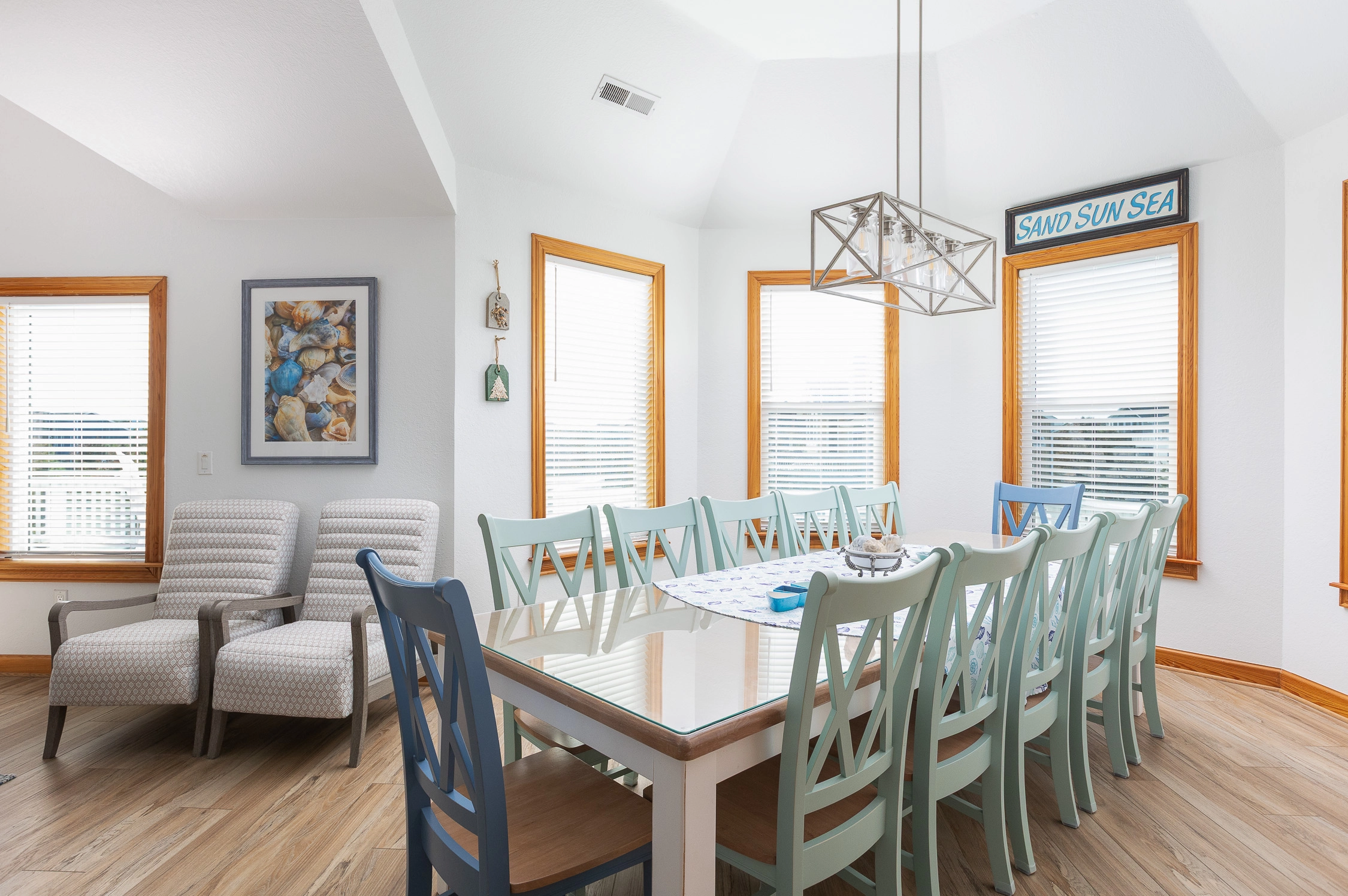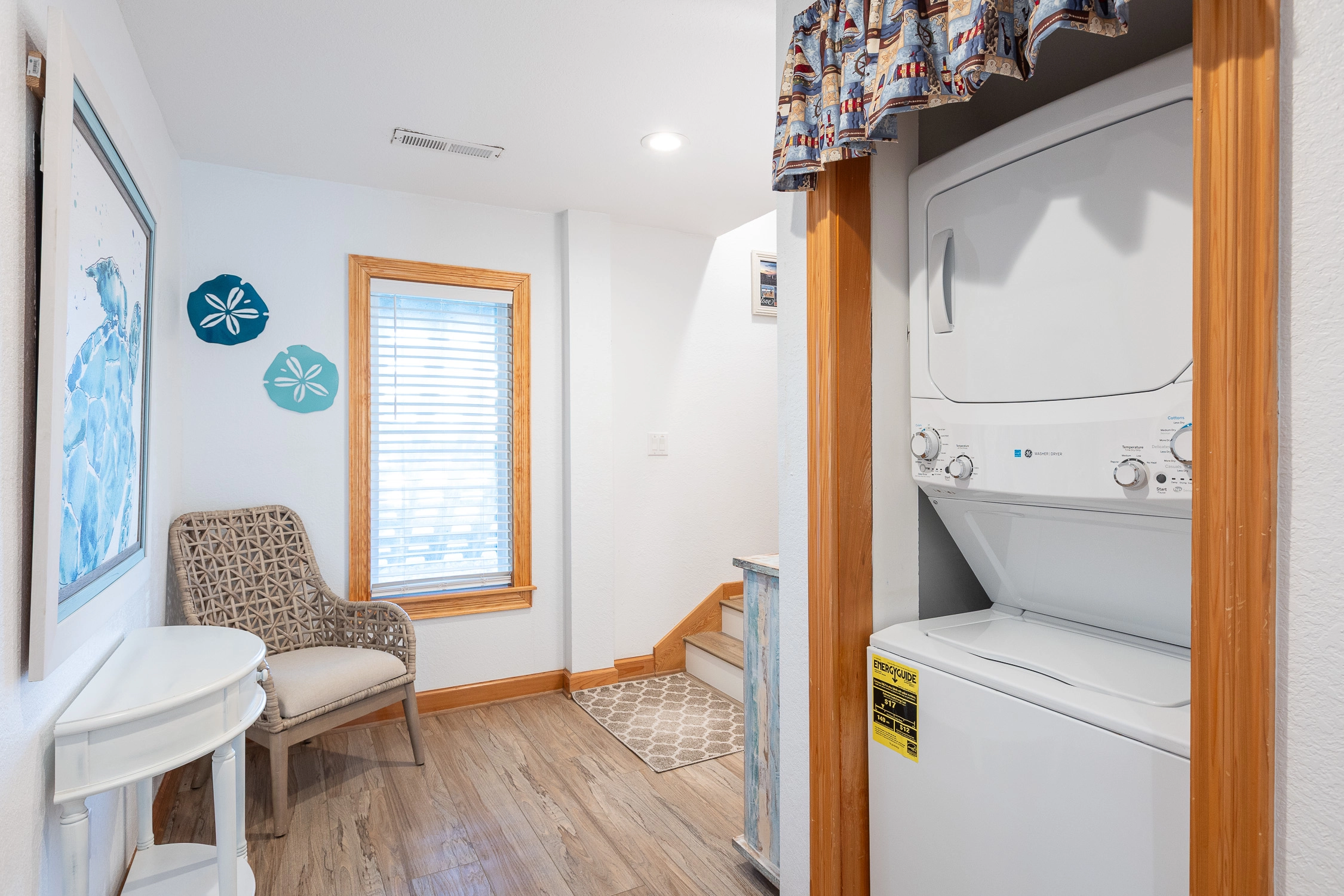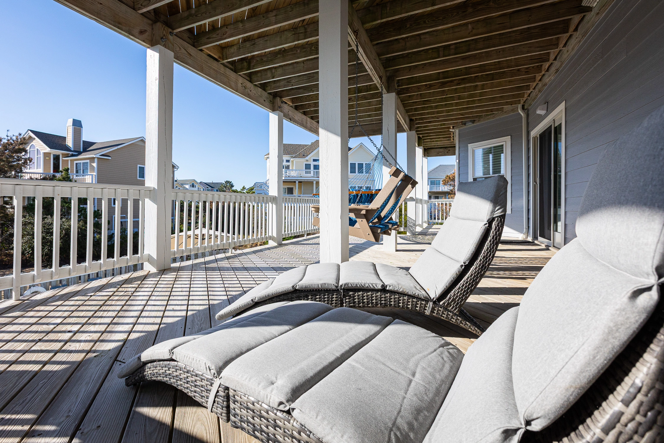 "Fully and well-equipped kitchen. Two dishwashers. An over-abundance of coffee cups, glassware, and dinnerware. A full-pot Keurig and a single-cup Keurig. Three crockpots. Private pool with a very nice under deck patio attached with picnic table and outdoor shower. Beach chairs to utilize, and nice, sturdy, outdoor furniture for just sitting and/or dining. Second deck porch swing and hammock. Second floor den area with fold-out couch. This house was perfect and so very well maintained. Also main floor washer and dryer and lower floor washer and dryer. So very nice for extra laundry, beach towels, etc. Basement den was so nice to be able to come in from off the beach, change clothes is you needed to, bring in groceries and luggage and gather everything together when we had to leave."
