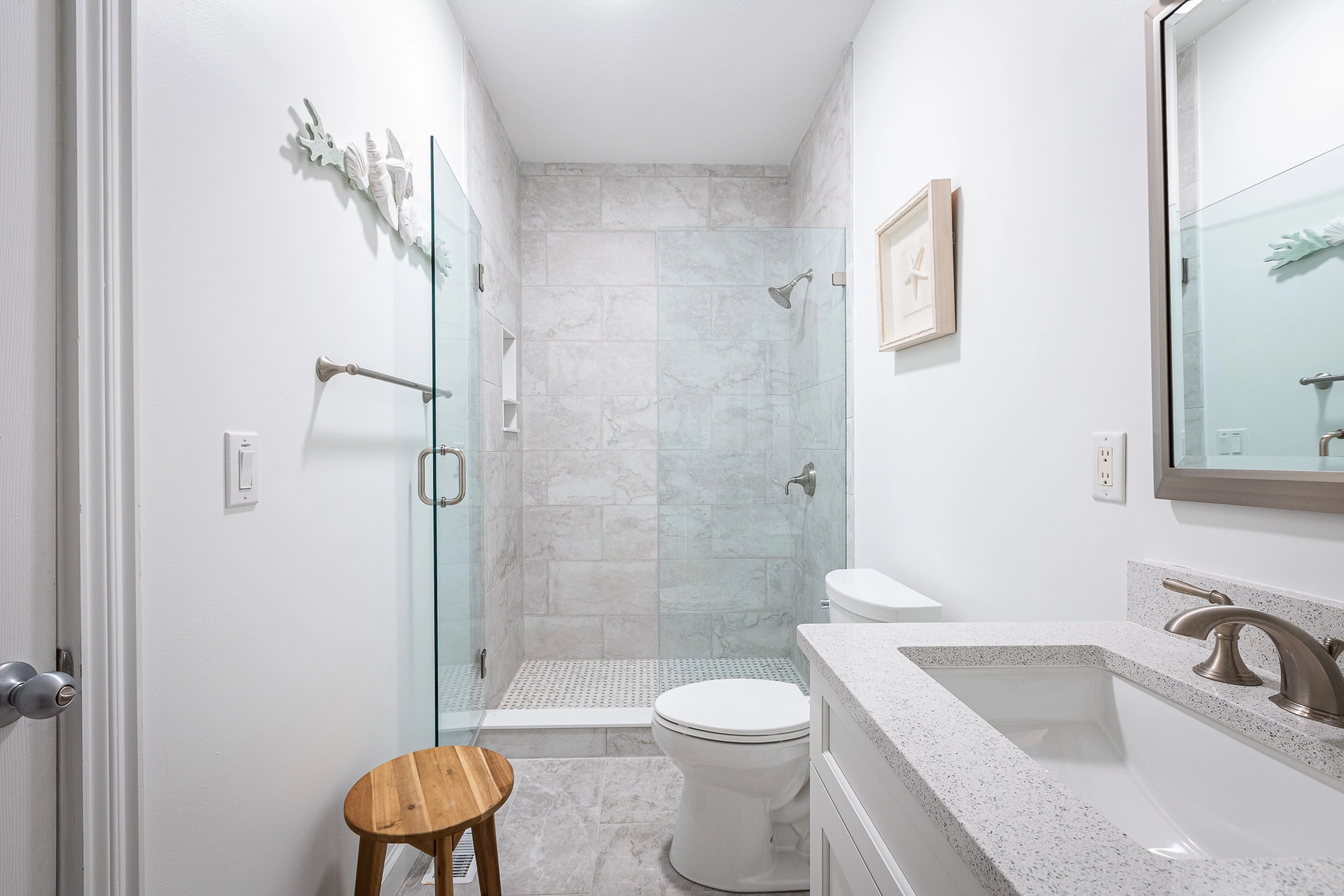 "Very convenient for a short walk to the beach. The updated home is beautiful and has everything you need. We played Cornhole on the newly added boards everyday! All of the deck furniture and pool furniture are comfortable and eating dinner on the Level 3 deck is wonderful."