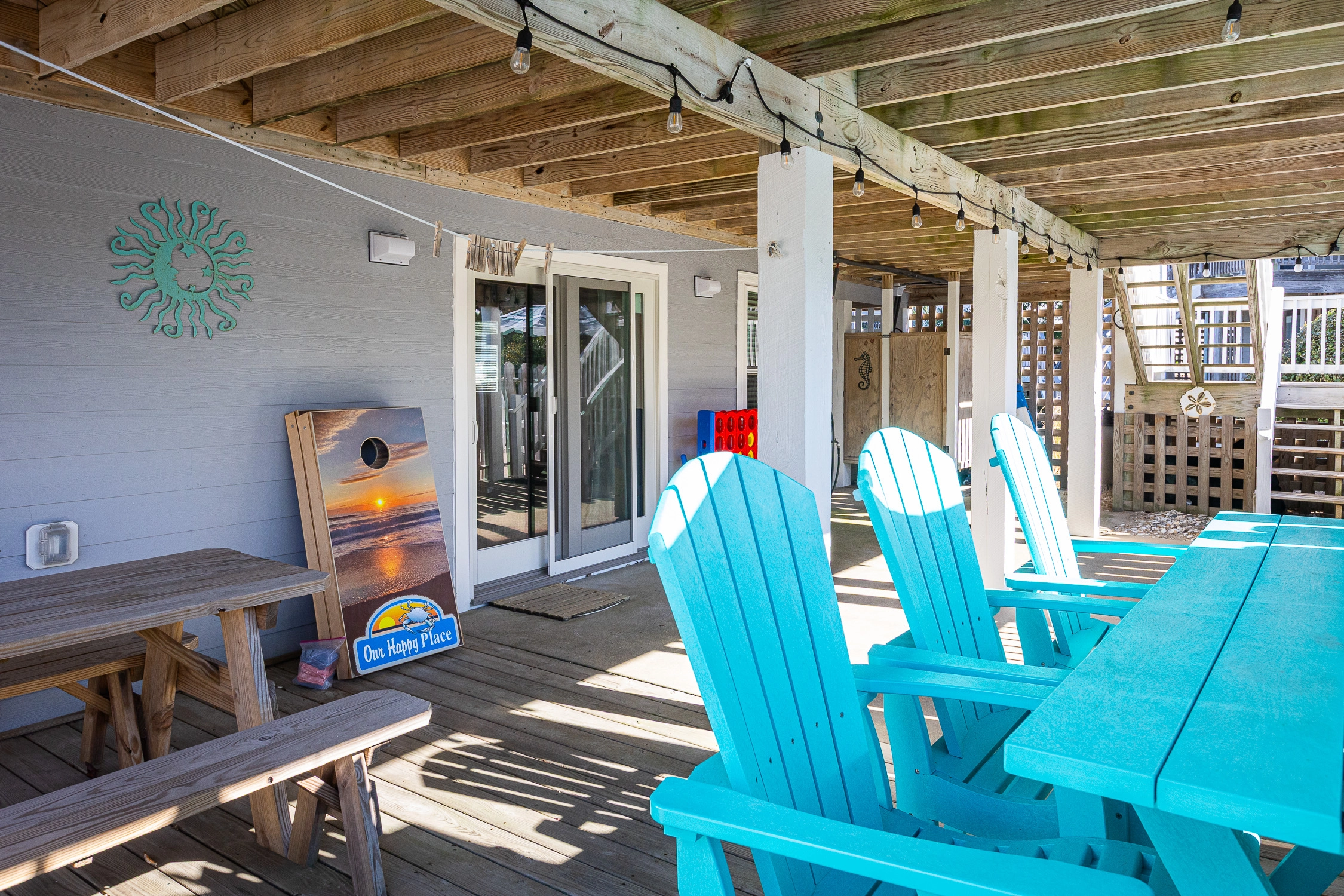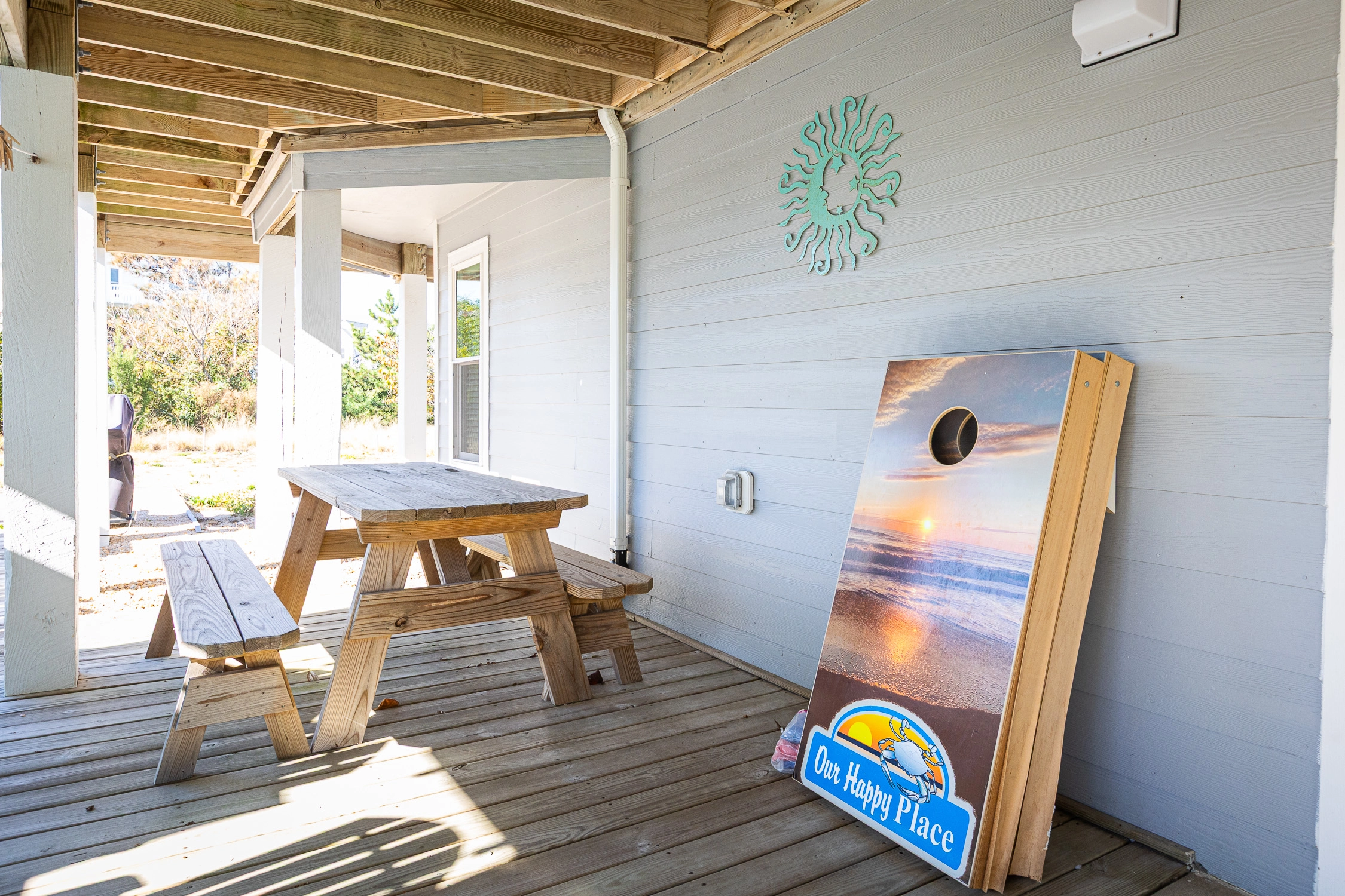 "This is our third year at Our Happy Place. The home is decorated beautifully! The owners include all the little extras to make your stay easier- napkins, dishwasher detergent, a clothes basket, etc. We also like the games like Cornhole and Spikeball. The walk to the beach is easy. The decks and pool area are filled with comfortable furniture and umbrellas. I could live here all summer!"