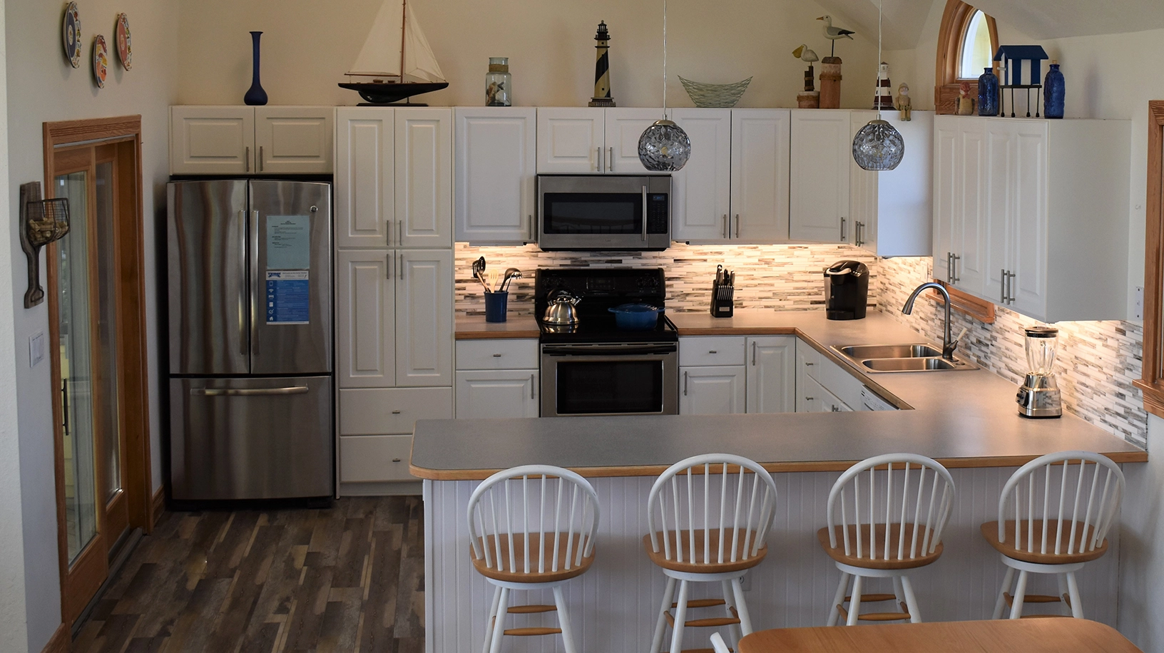 Great room; kitchen; dining area; ship's watch; screened porch.
