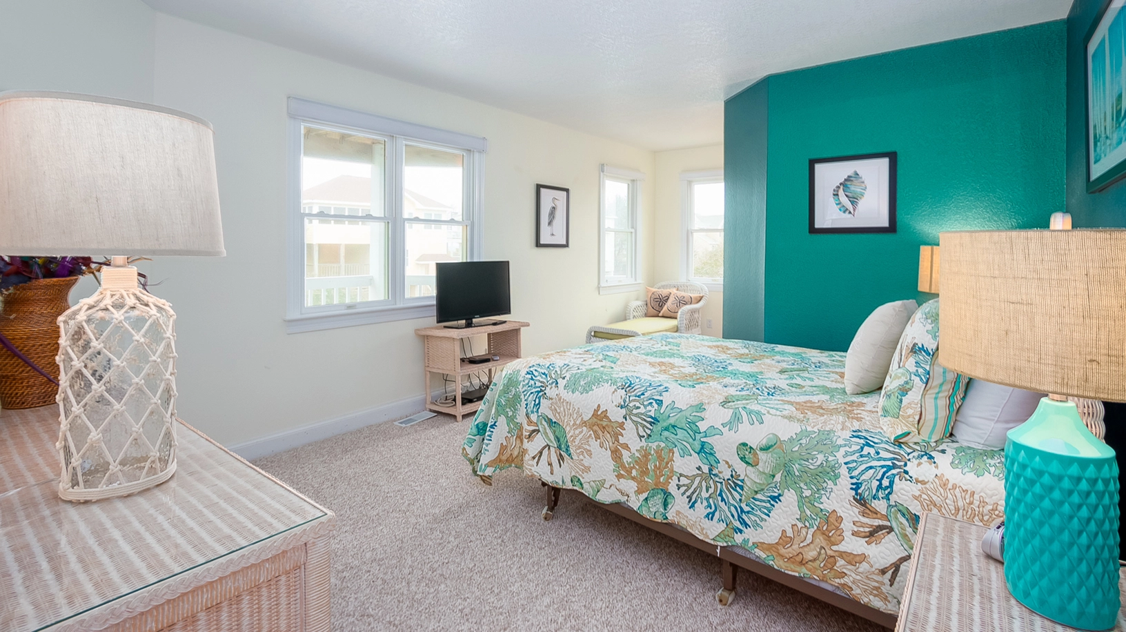 "The location of this house cannot be beat. It’s a half block from the four wheel drive entrance, and this area is less densely populated than the rest of Corolla. Because of this, there are less people going to these particular beaches. The house is a two minute walk from beach access that pours onto a fairly wide open beach, even in mid July. If you go even a half block south it’s more crowded. We chose to rent this again next year because of the prime location."