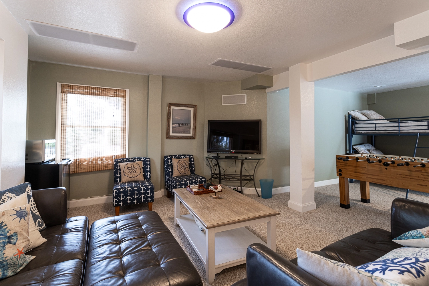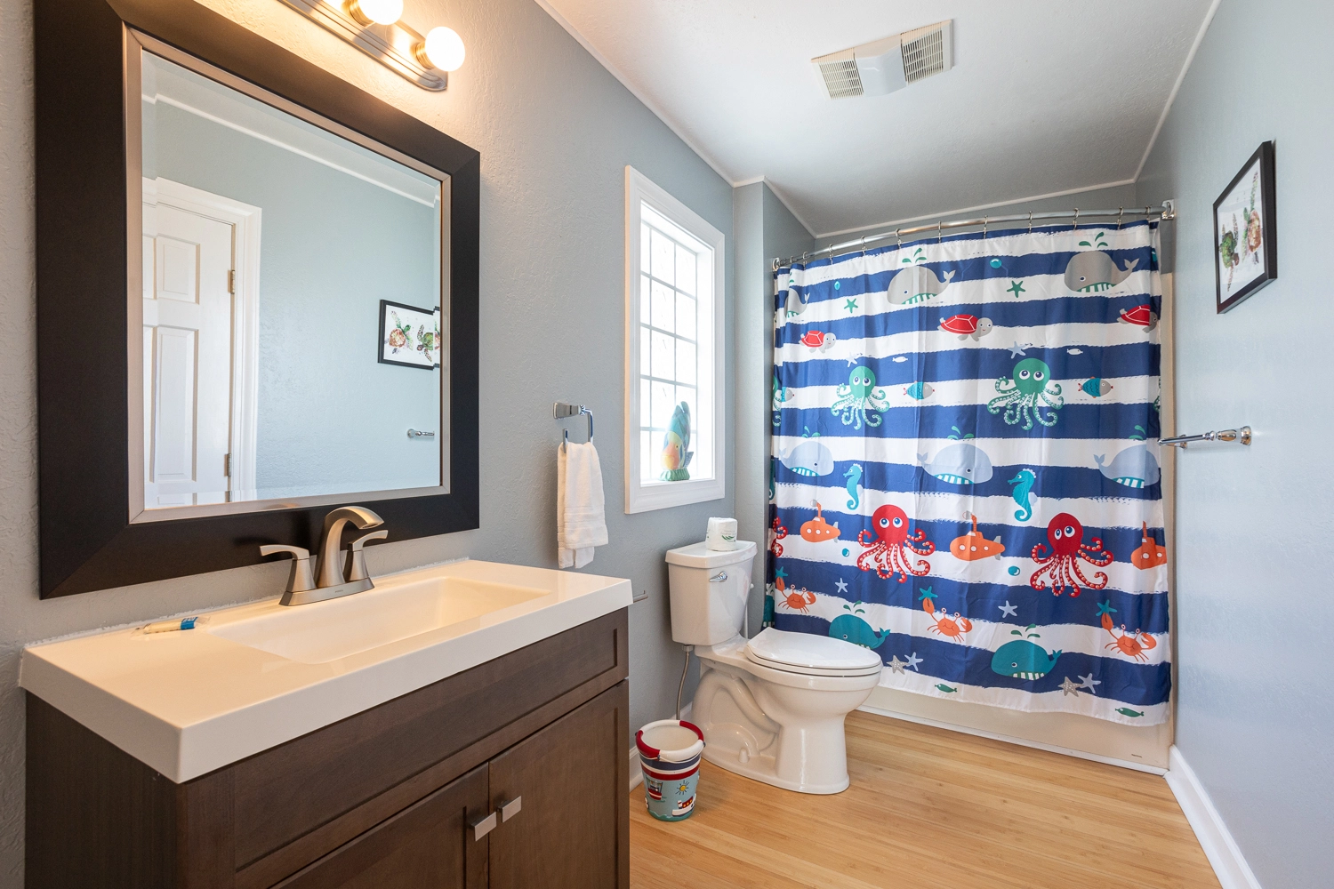 "My true rating for this home would be a 3.5 stars. The location of the home gets 5 stars. It’s four houses down in either direction from beach access. The home was also stocked very well with kitchen supplies and beach/pool supplies. We didn’t need everything we brought because the home had it all. The main floor was also amazing. It was completely open and very conducive to family game nights and dinners together. The reason I knocked 1.5 stars from the review is because the master bedroom did not have a shower. It only has a jacuzzi tub with a hose extension. We had to resort to using the outside shower for ourselves since it was more convenient than the master bath. Also, the toilet and the shower in the jack and Jill bathroom didn’t drain well. We had to call maintenance twice to have it fixed. It didn’t get fixed until the Friday before we left. Lastly, there was a strong pet urine odor coming from the carpet in the basement and one of the bedrooms."