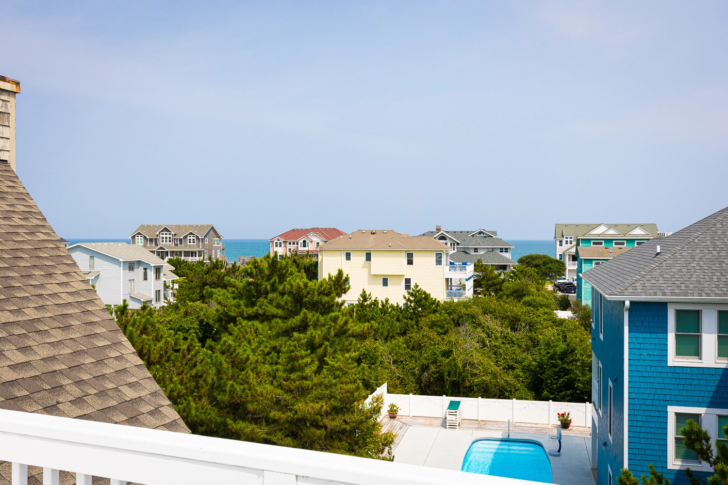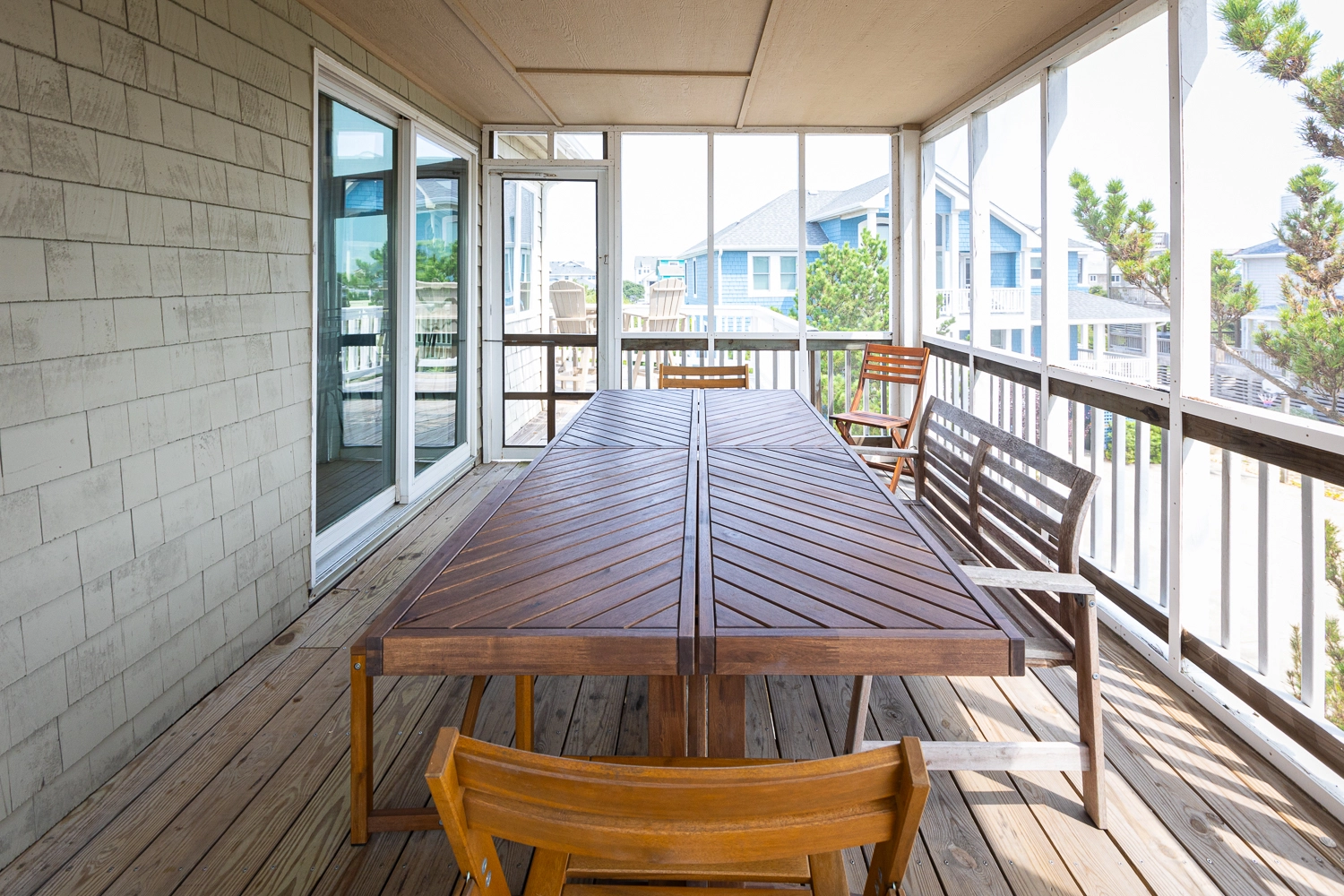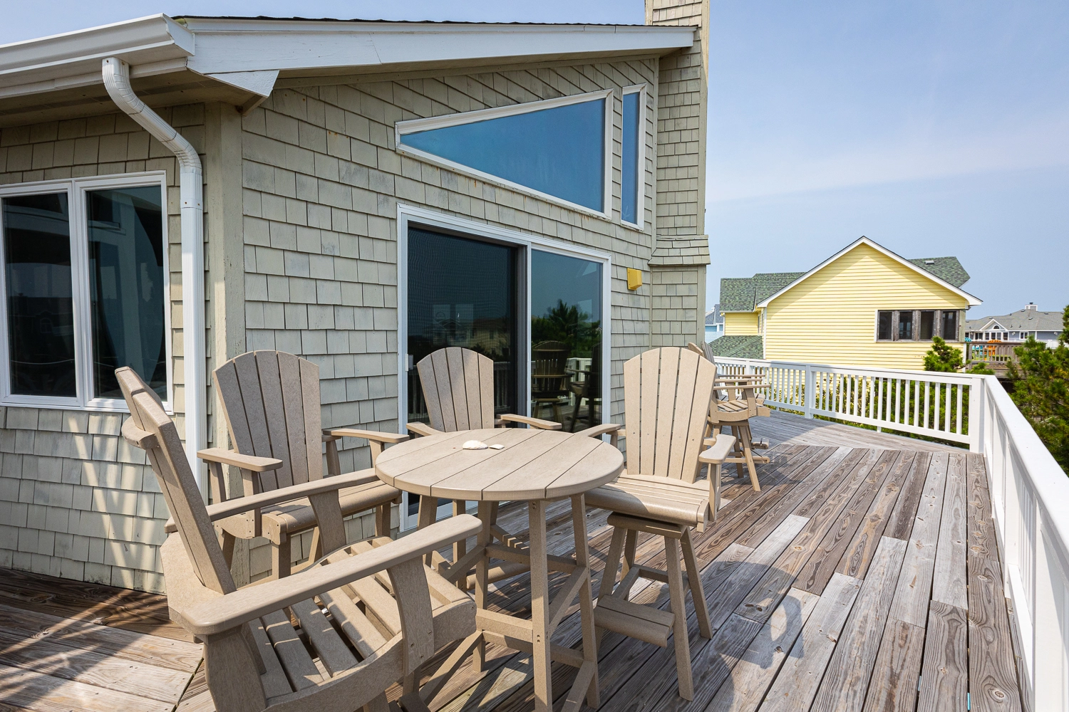 Great room with wet bar; kitchen with dining for 15; dining area; screened porch, open decks with ocean views.