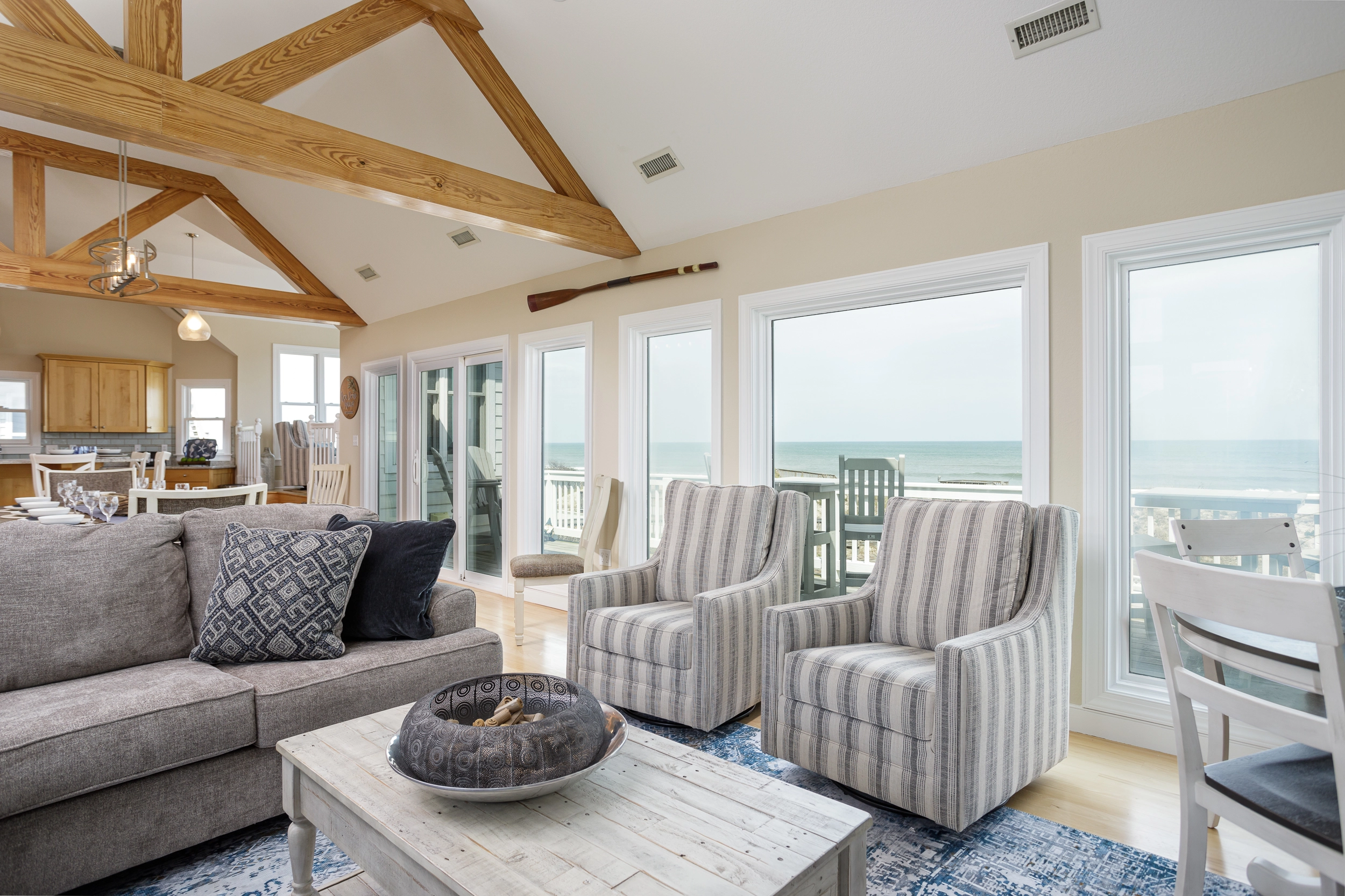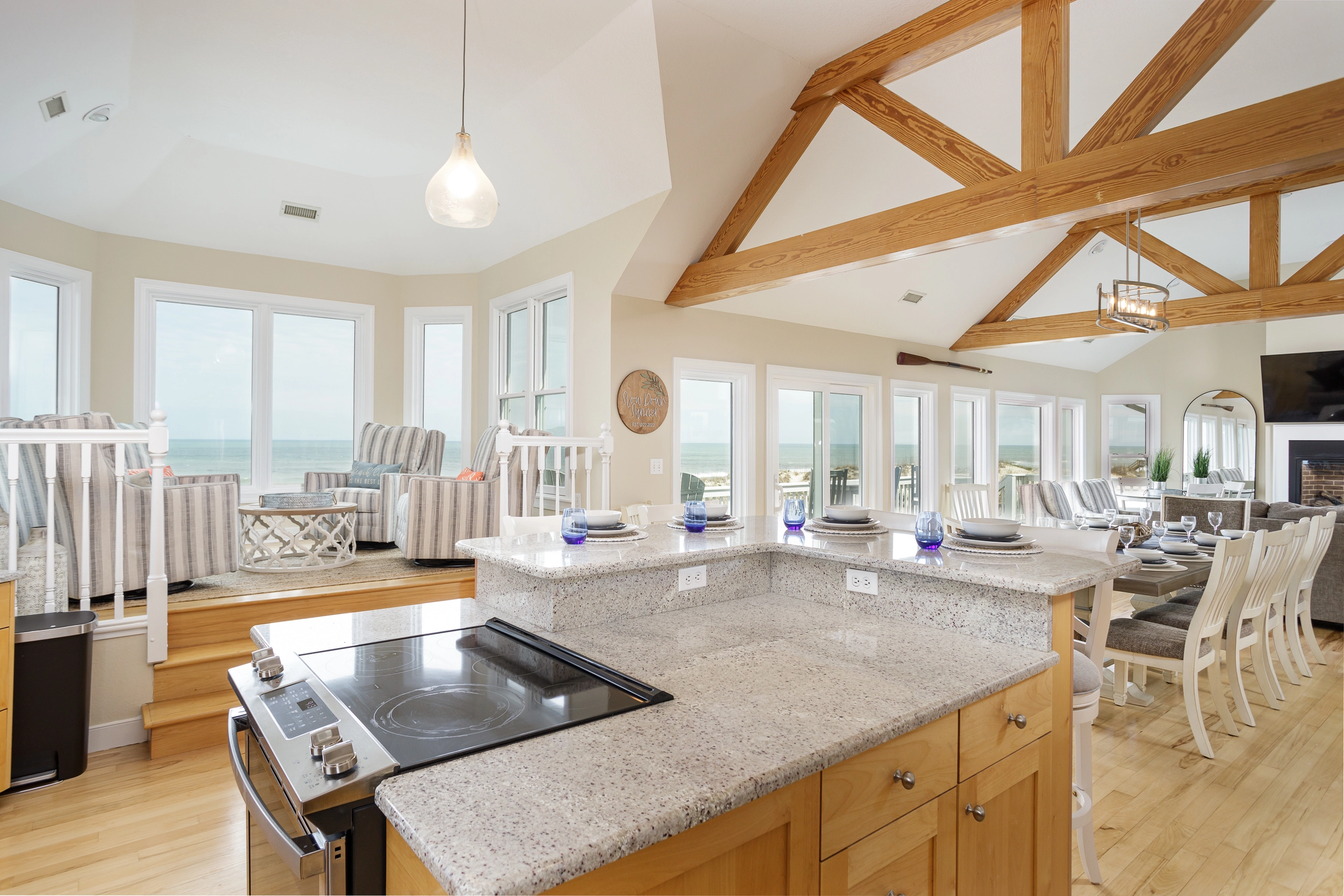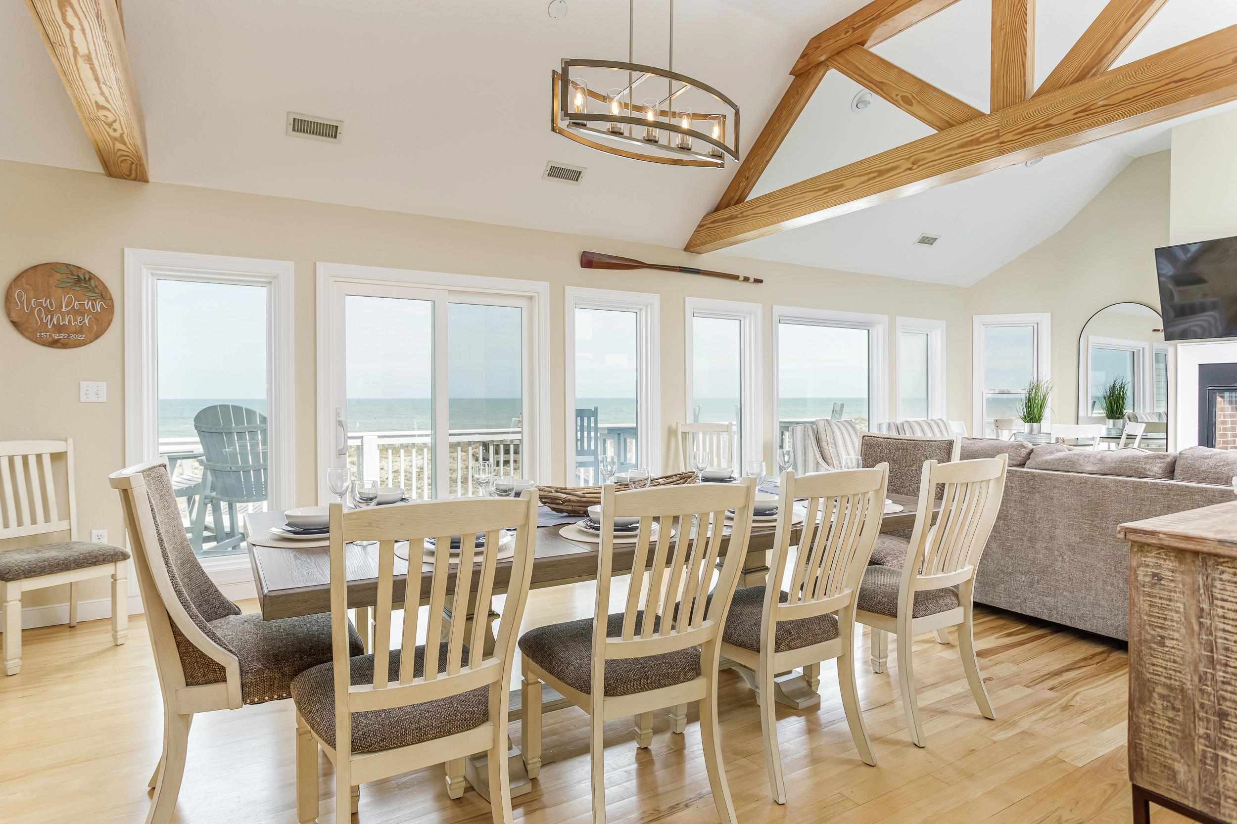 "Slow Down Summer was Perfect!!! All the amenities were awesome… The View and being oceanfront is Outstanding… pool and outdoor dining and entertainment added to the absolute enjoyment. House decor and Layoout is very welcoming and tastefully done felt like home. I have been coming to Outer Banks for 35 years and have stayed in some very nice houses. This was the BEST!!! Kitchen fully stocked. We had a couple little hiccups but they were addressed immediately and a top priority for us besides the above is the cleanliness of the home and also that we could bring our furry family… which was perfect. Could not have asked for more. Booked for next year loved it so much will be our go to."