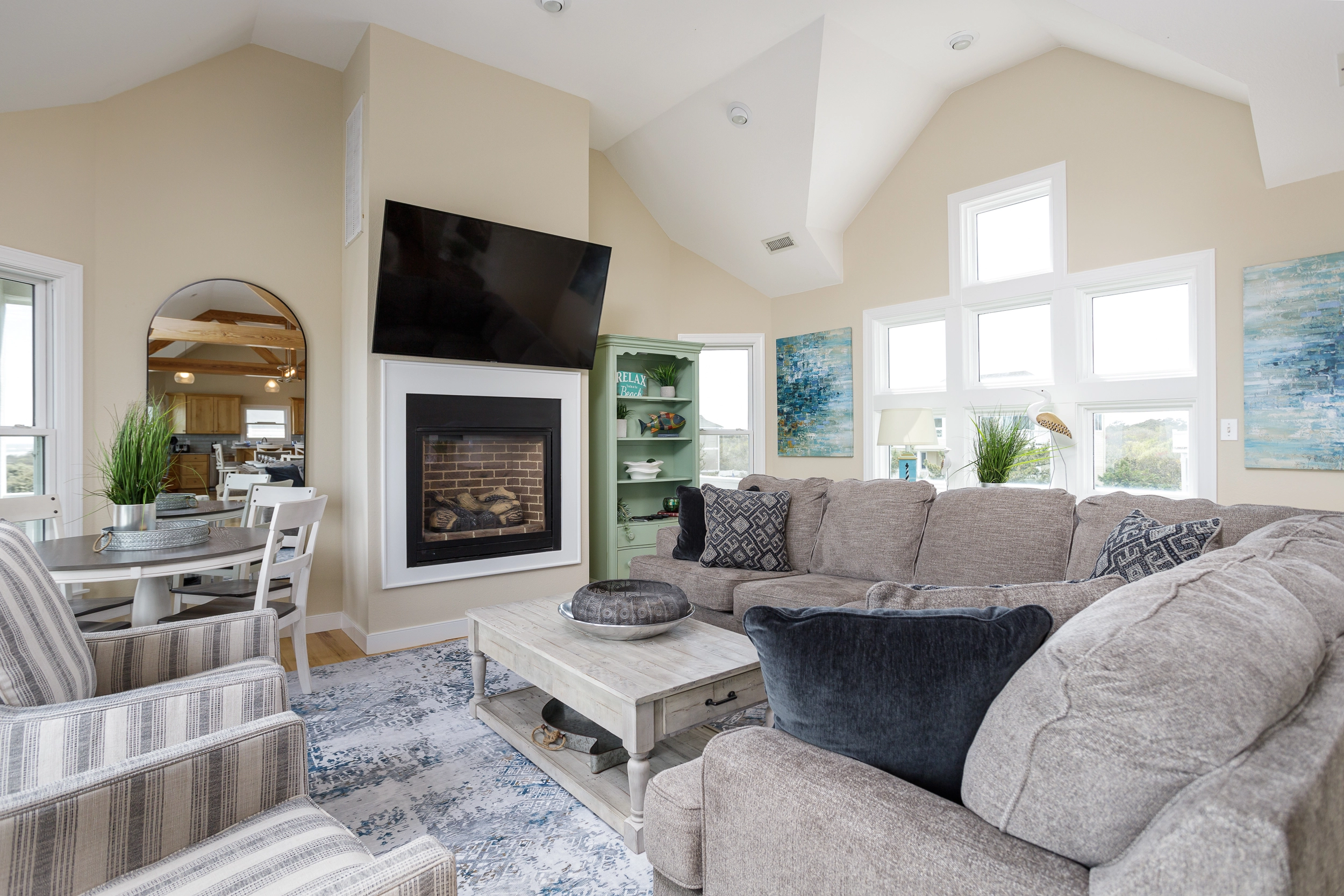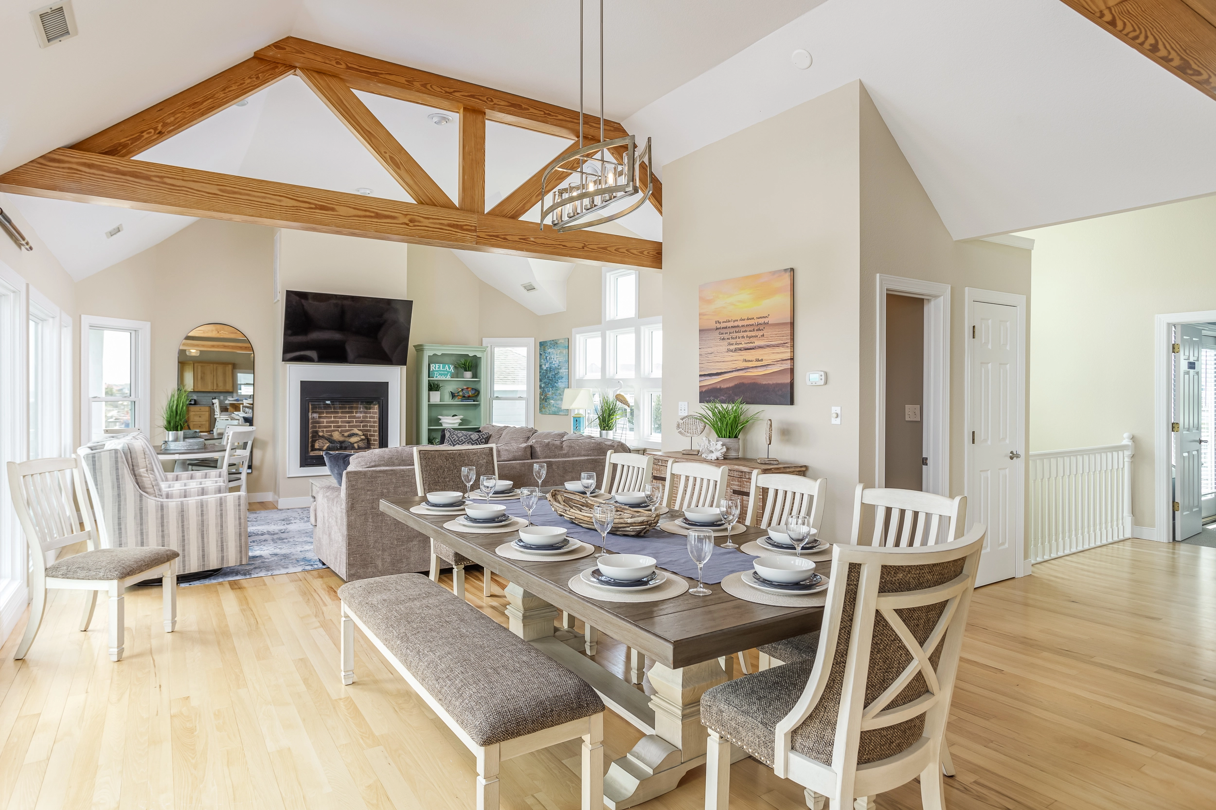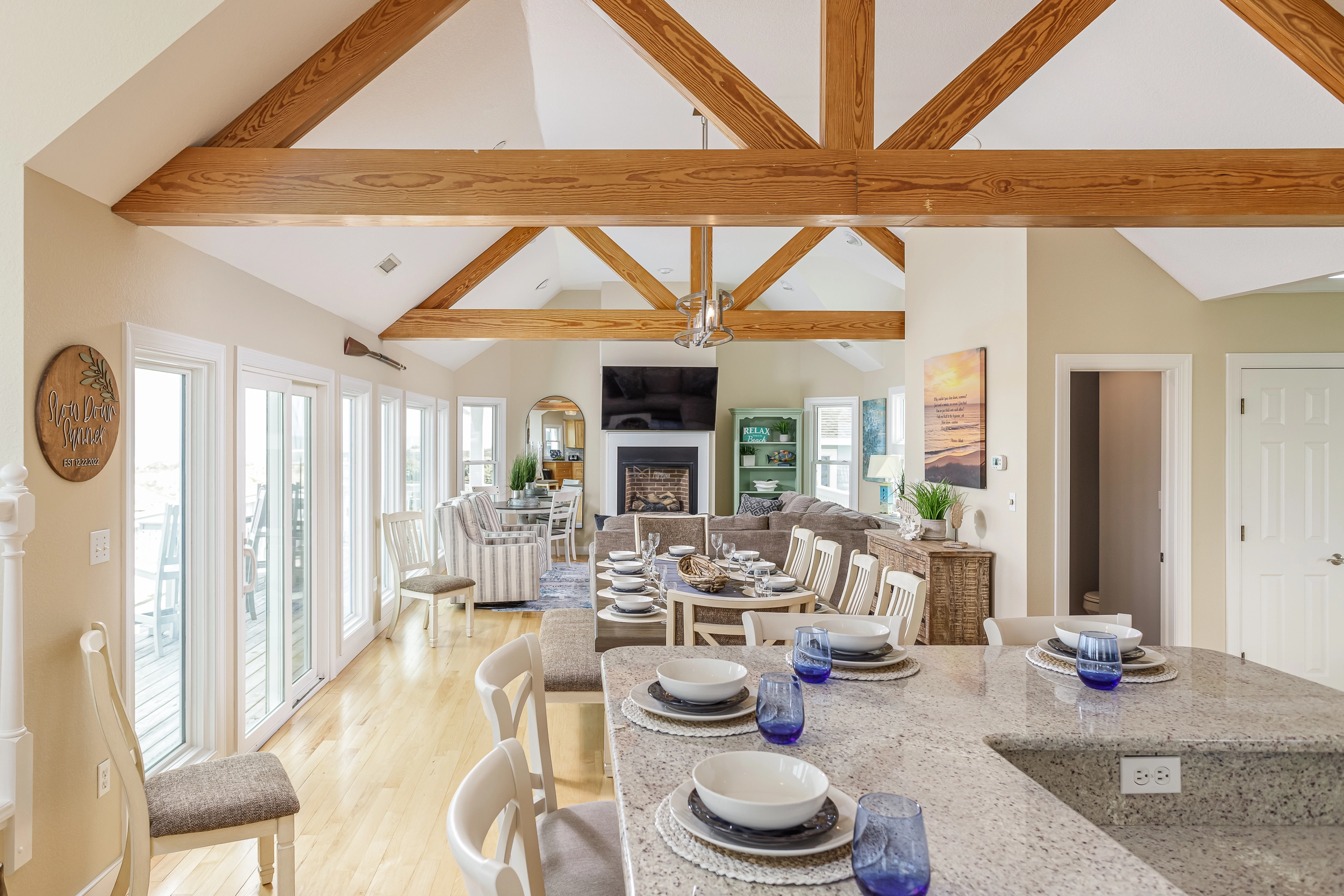 "Slow Down Summer was Perfect!!! All the amenities were awesome… The View and being oceanfront is Outstanding… pool and outdoor dining and entertainment added to the absolute enjoyment. House decor and Layoout is very welcoming and tastefully done felt like home. I have been coming to Outer Banks for 35 years and have stayed in some very nice houses. This was the BEST!!! Kitchen fully stocked. We had a couple little hiccups but they were addressed immediately and a top priority for us besides the above is the cleanliness of the home and also that we could bring our furry family… which was perfect. Could not have asked for more. Booked for next year loved it so much will be our go to."