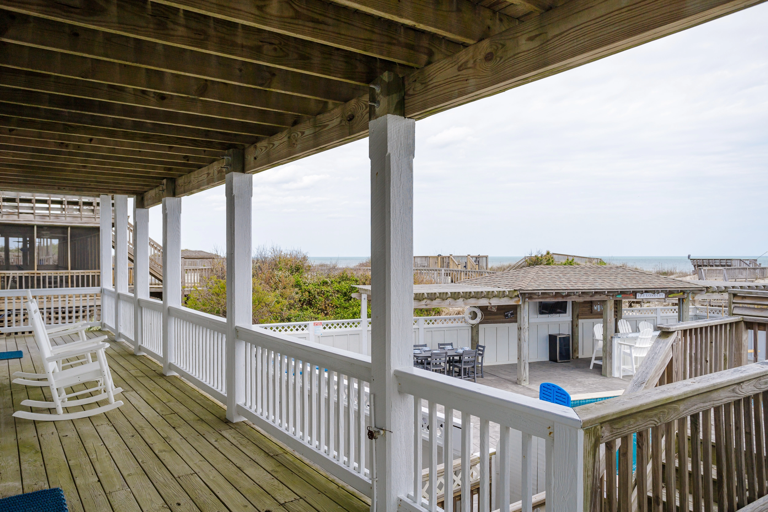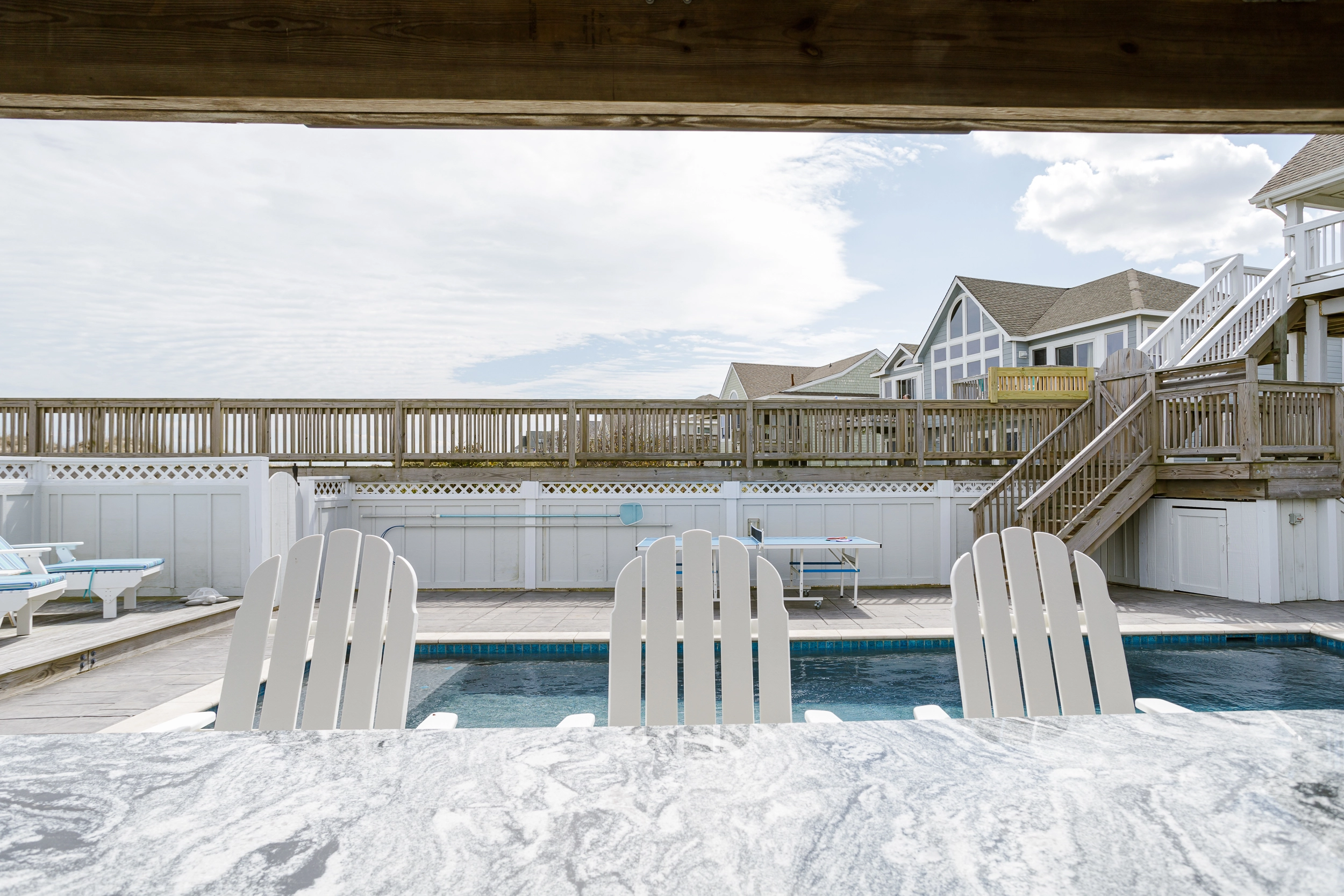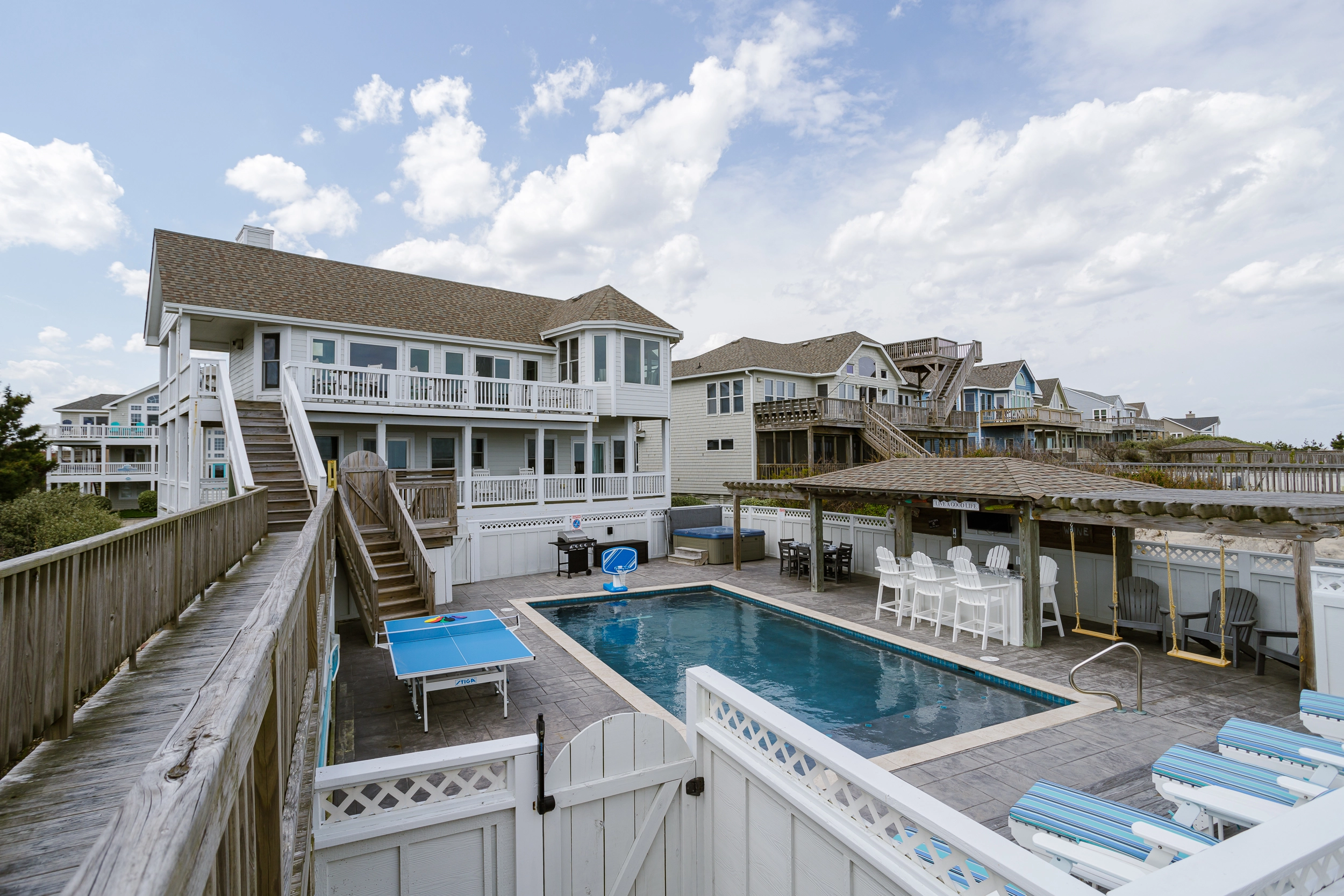 "Loved the pool (especially the sun deck) & pool deck (especially that it had a covered portion); loved the upstairs with the nice seating area next to the kitchen; loved the beach access & private walkway"
