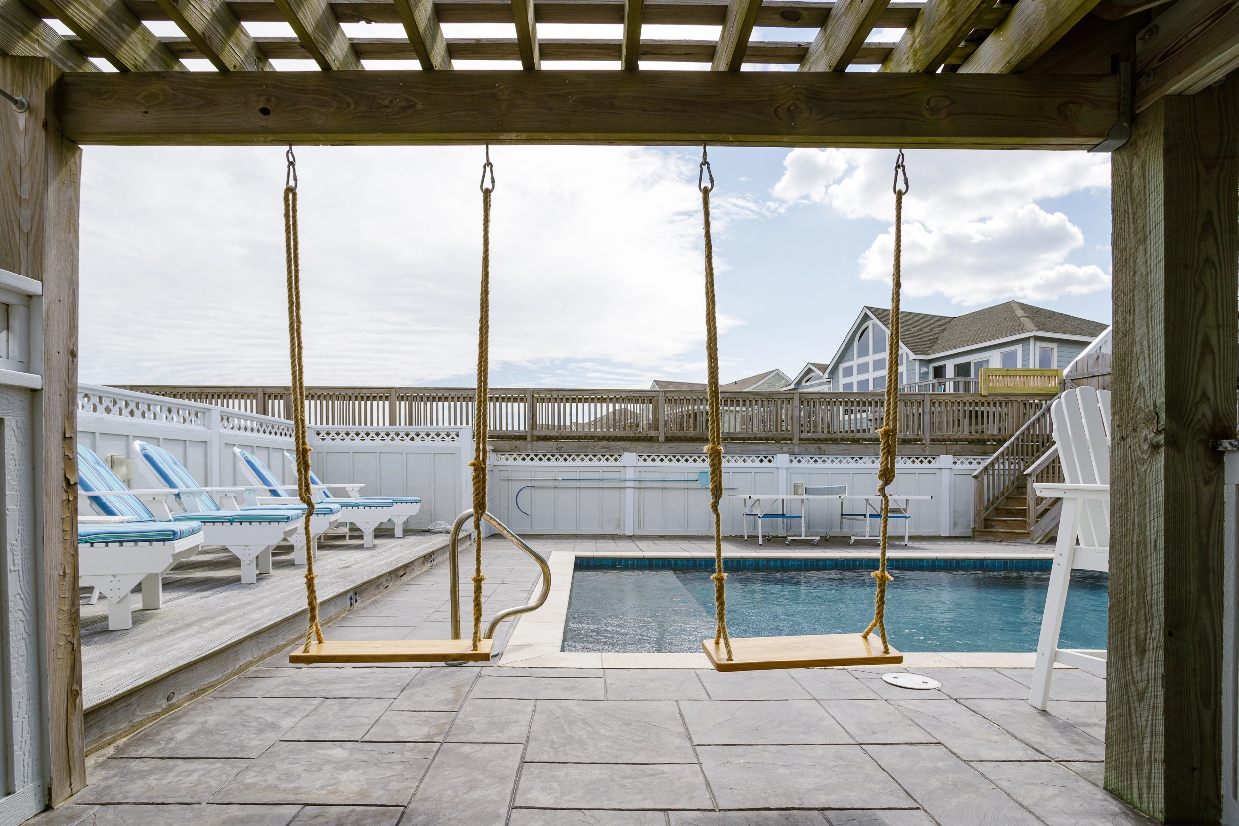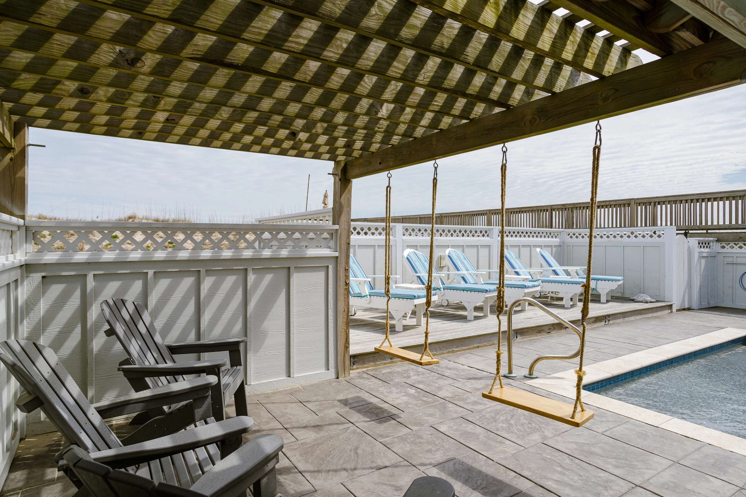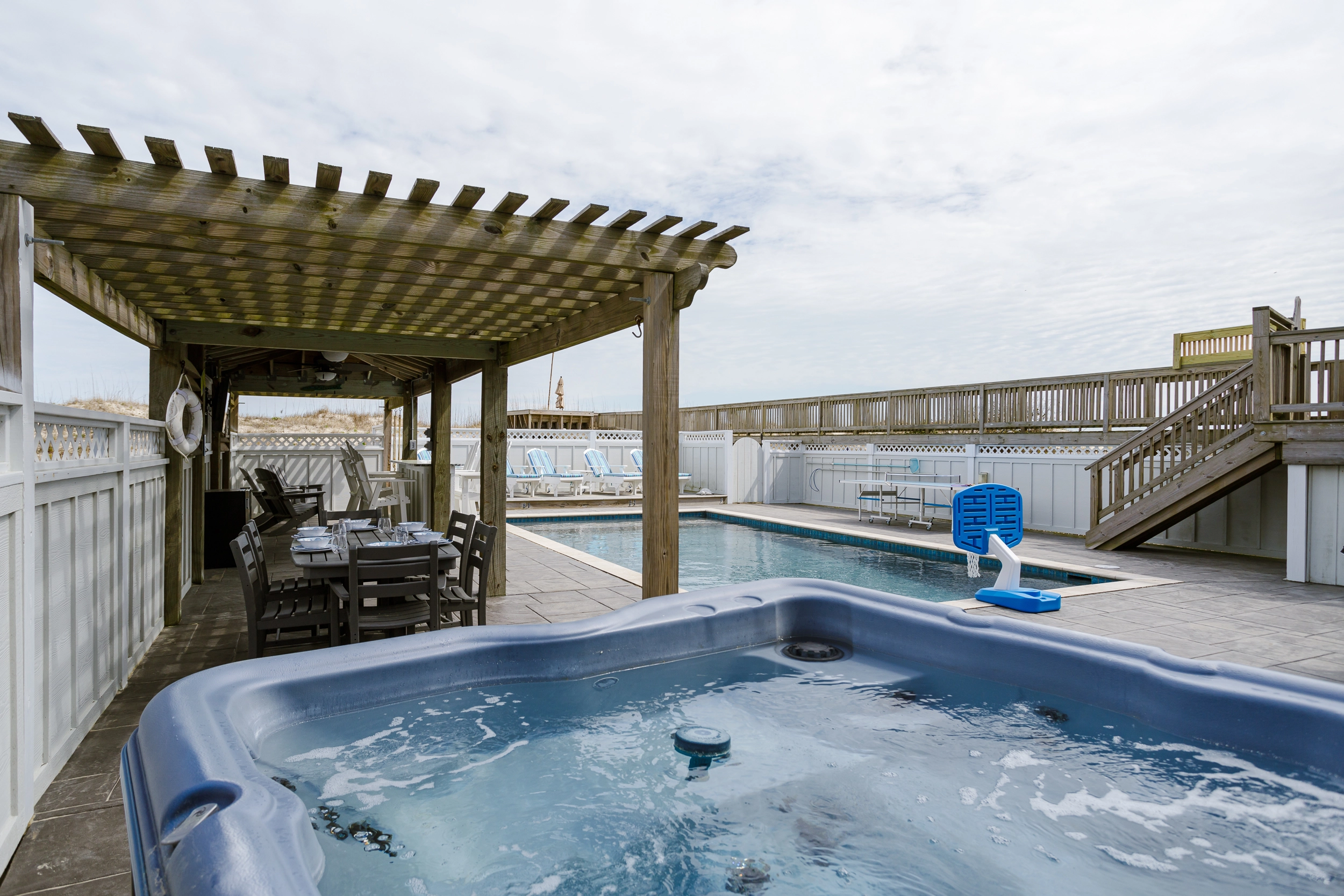 "Loved the pool (especially the sun deck) & pool deck (especially that it had a covered portion); loved the upstairs with the nice seating area next to the kitchen; loved the beach access & private walkway"