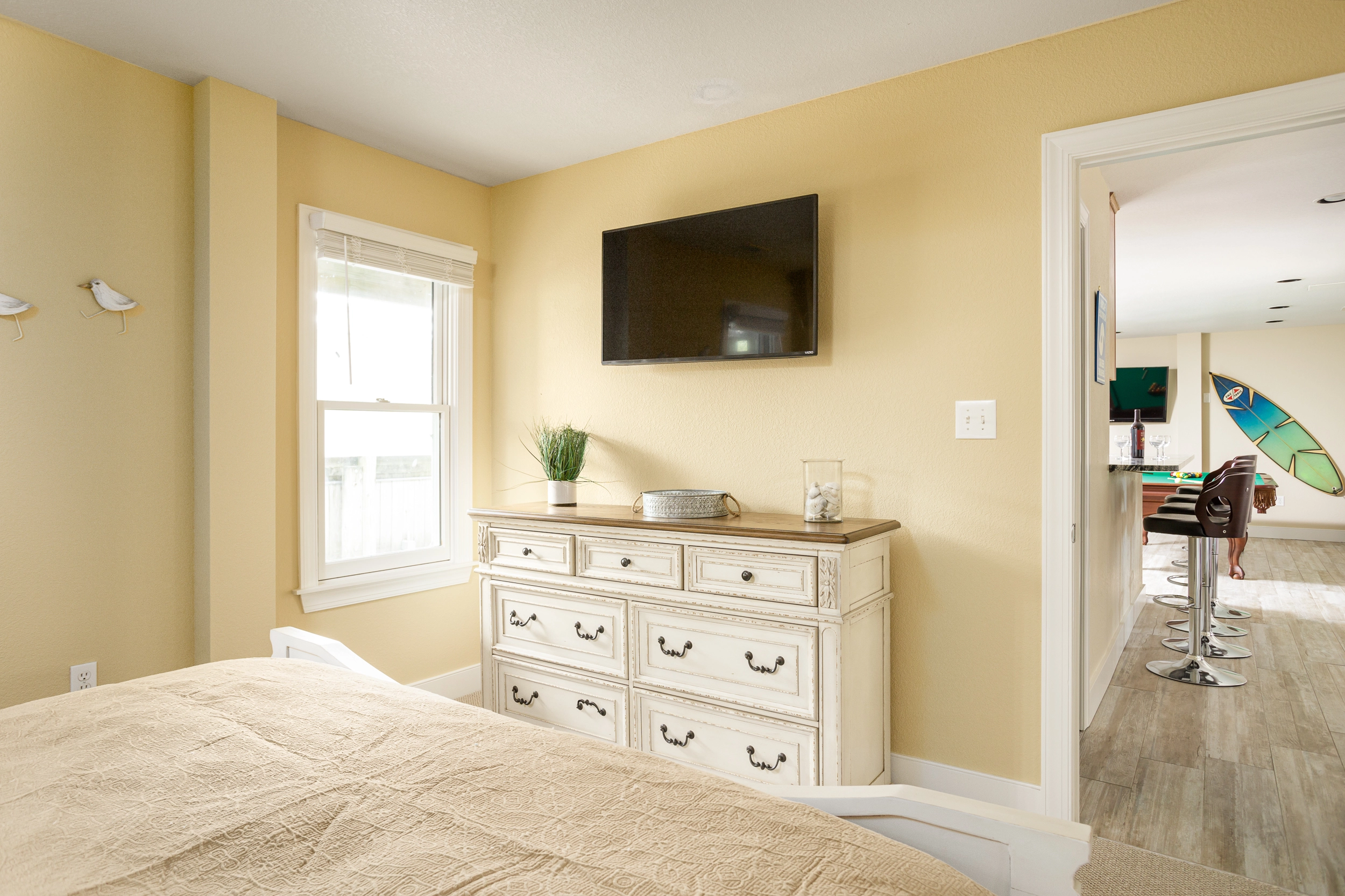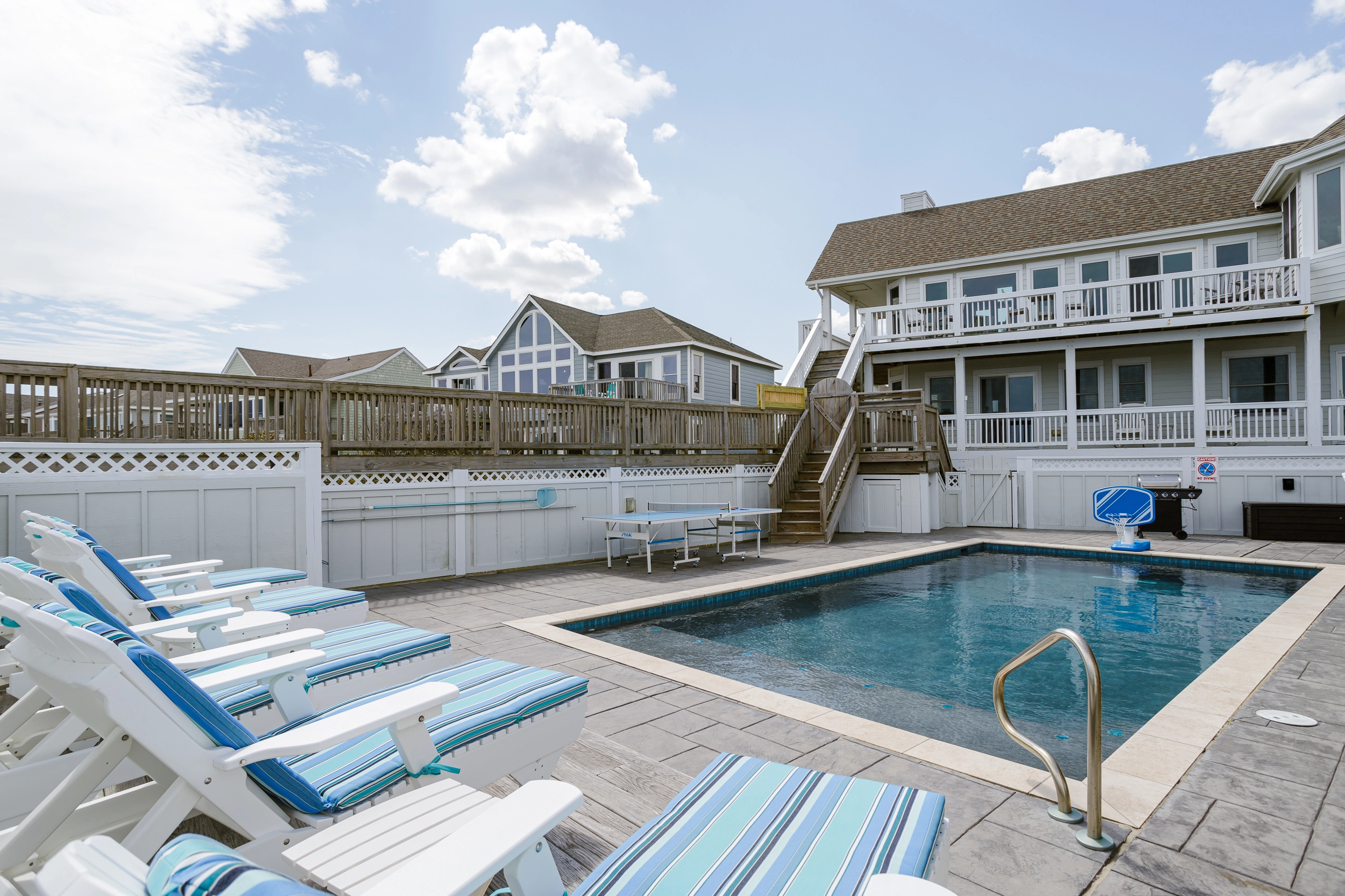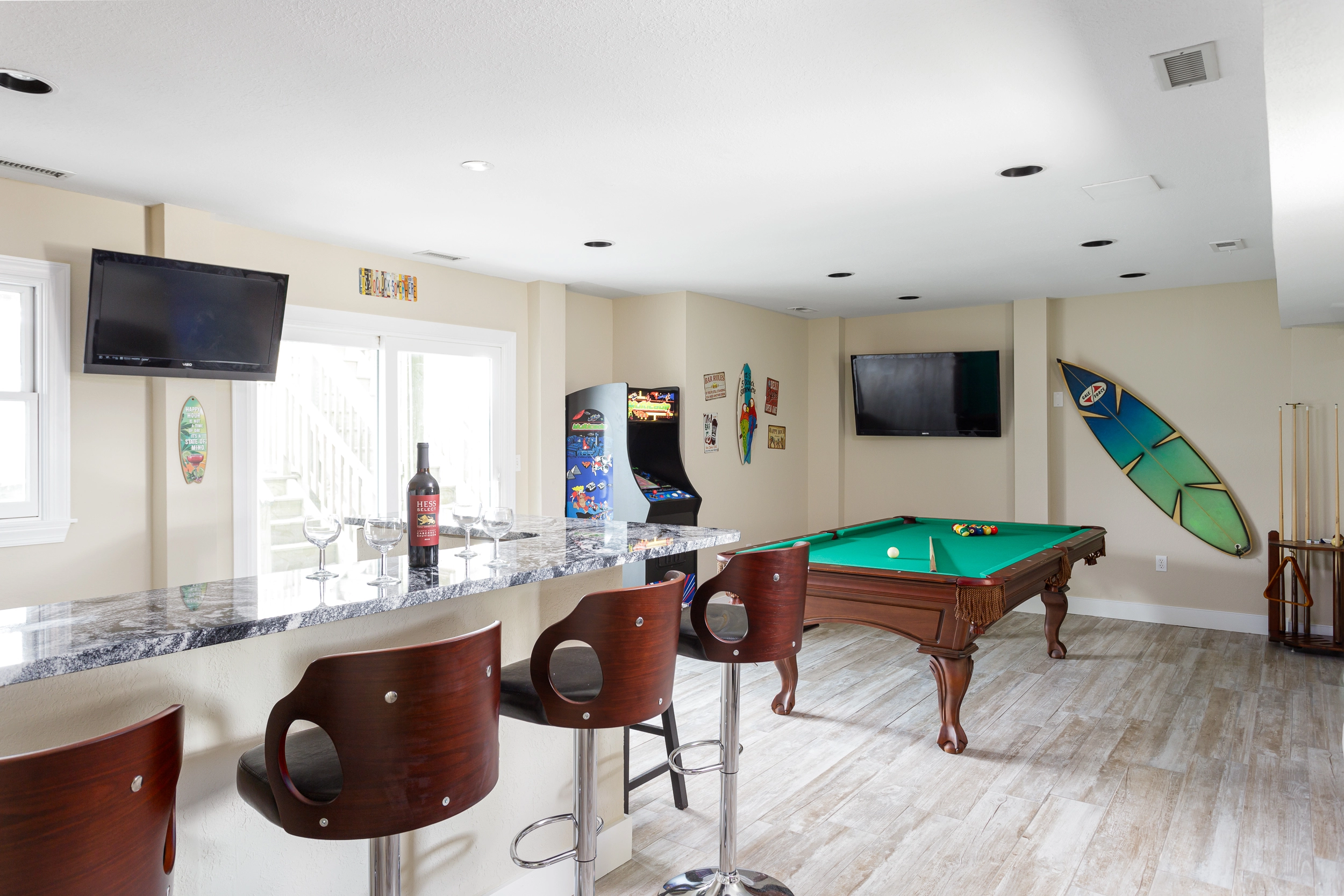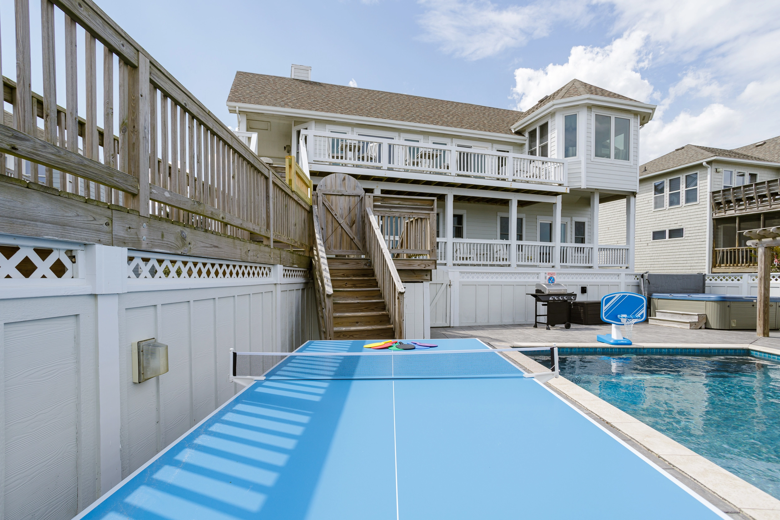 "Kitchen set up and glassware etc. well thought out. Excellent, well kept pool area with cornhole and other games was a evening center of activity. Nice pool table. A lovely house - like we were staying in someones home versus a rental property. Relatively easy beach access even for those of advanced age. Overall: one of the top houses we've stayed in over the last 20 years at the beach!"
