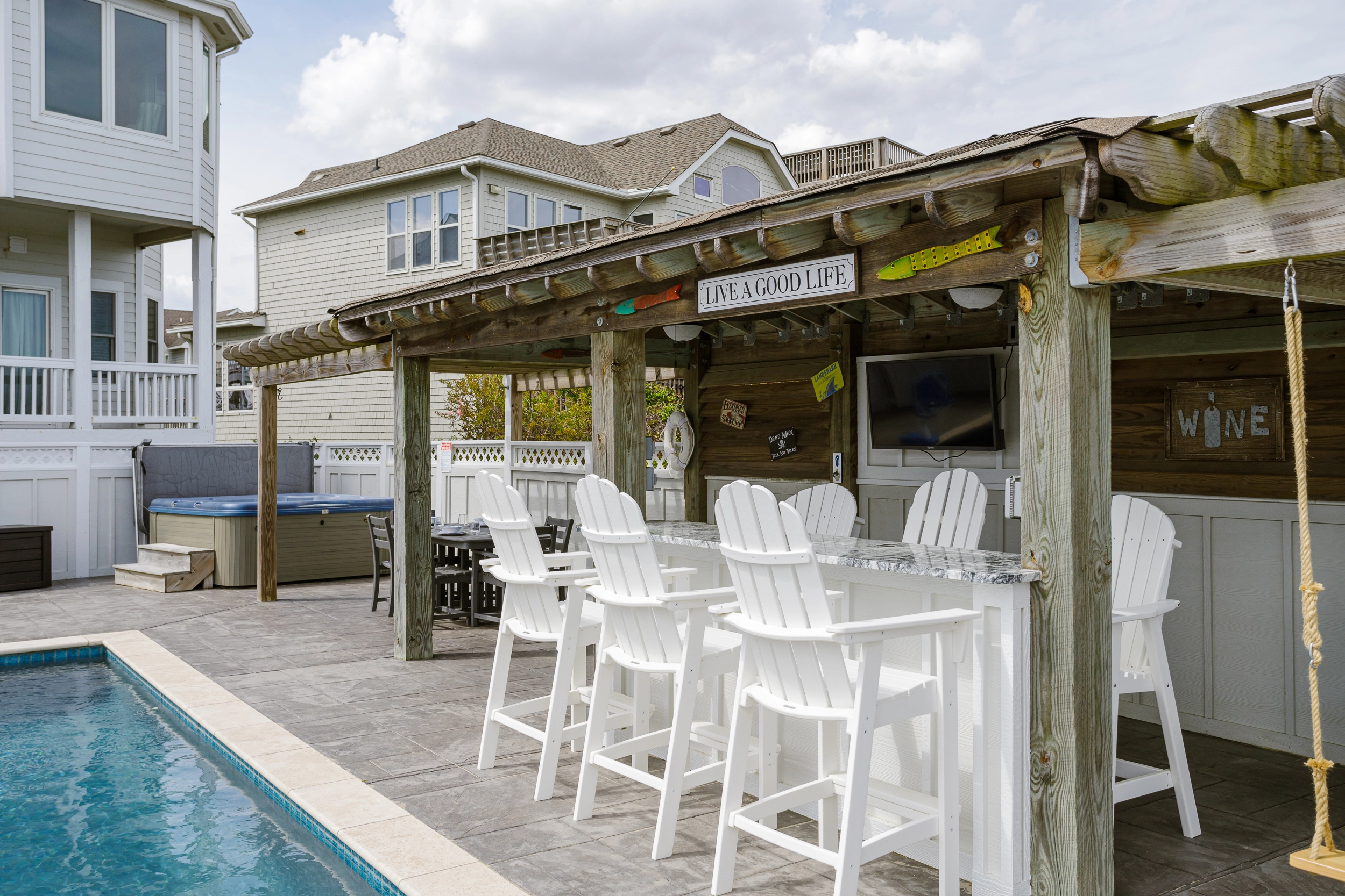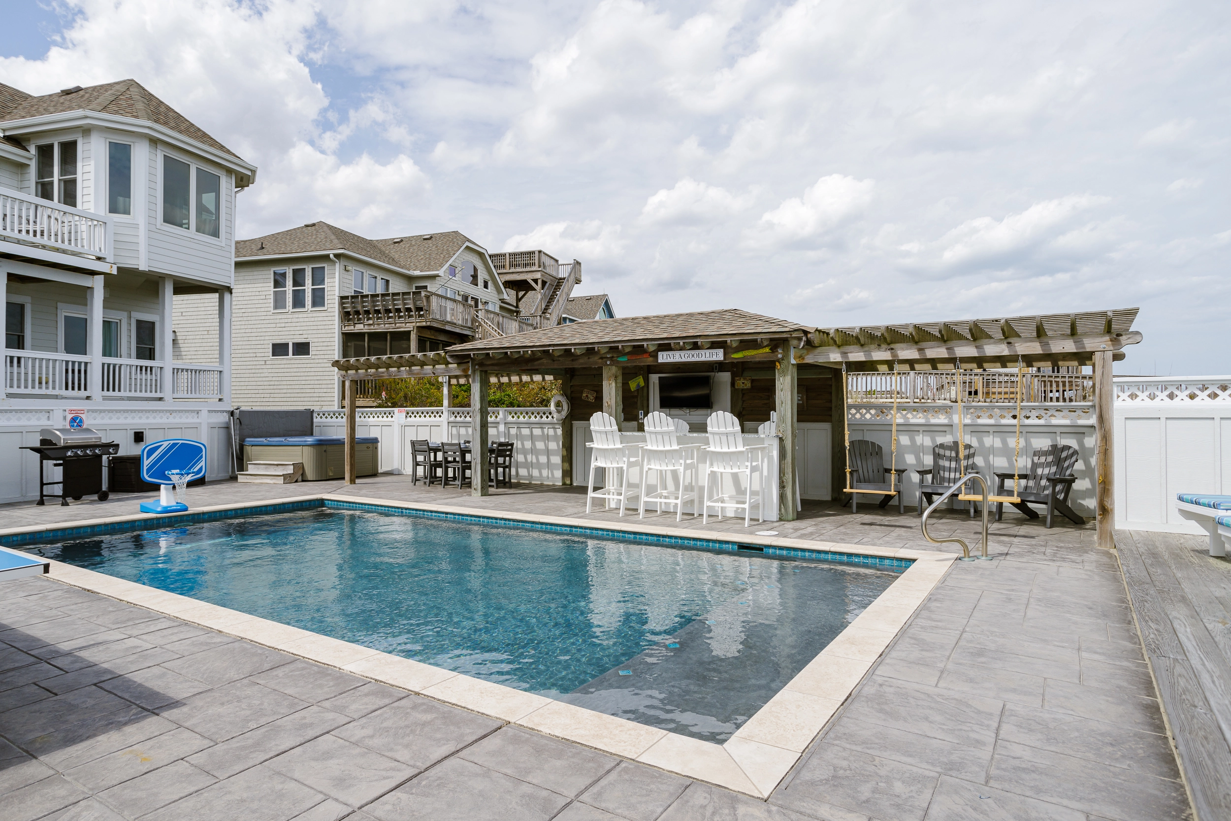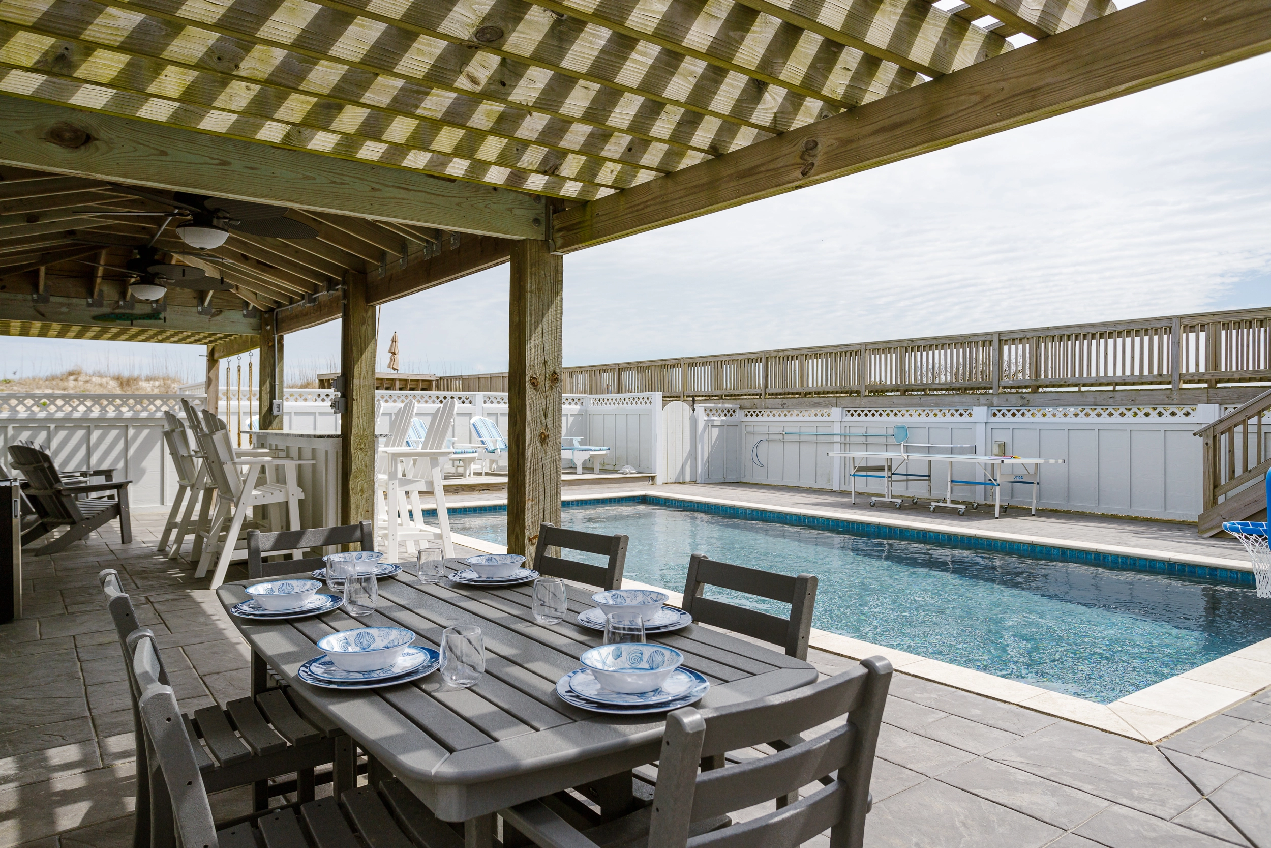 "The private pool and surrounding outdoor bar area was the best space we have seen in 12 years of renting in Corolla. Simply awesome and brought us all together for loads of fun each evening."