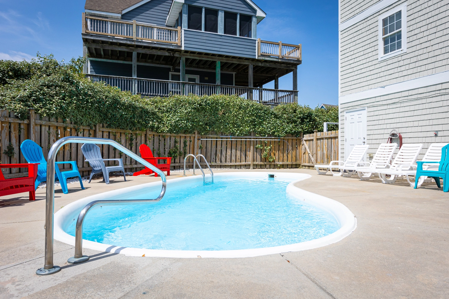 "My son-in-law liked the house better than the last 4 houses that we have stayed in. My daughter-in-law liked that there was a beach pathway that she could get to the beach quickly to take pictures. The carpet on the stairs being cleaned the day that we arrived was nice (even though it meant early check in wasn't available). Being able to view the ocean from the front decks was nice. Having a deck on the master bedroom & 2 bedrooms on the 2nd floor was nice. Also having a deck on the sound side was nice. If you wanted shade, you could go on the deck in the back in the morning & deck in the front in the evening. My son-in-law liked the flooring. My son-in-law liked the nice chairs on the front top deck. A 2nd refrigerator is helpful when there will be 9 people for 3 meals a day for a week."