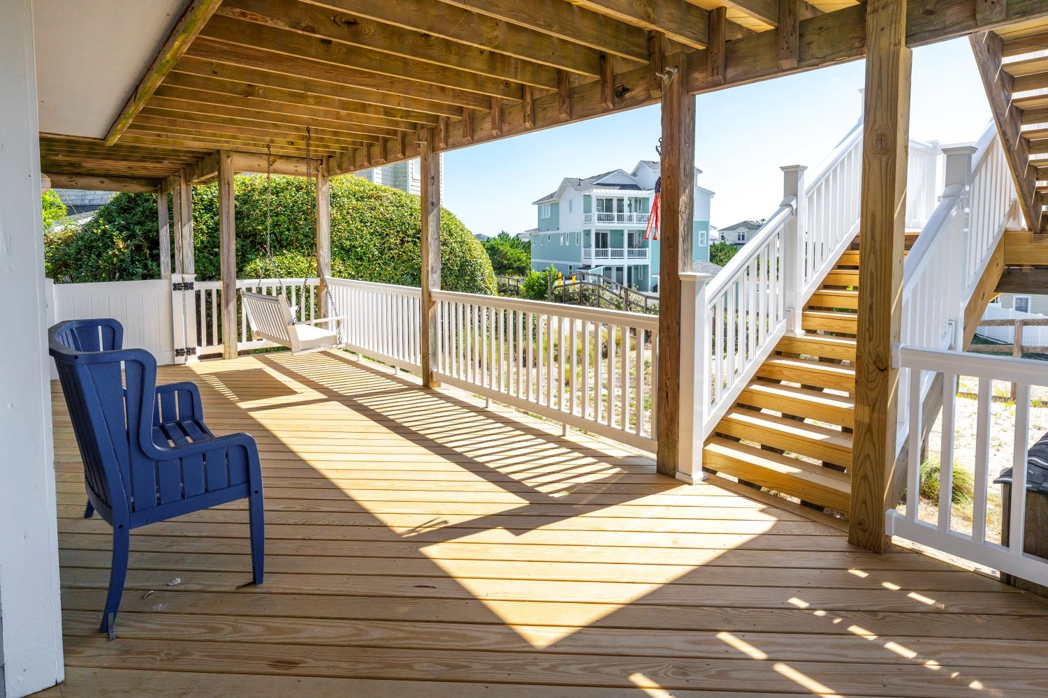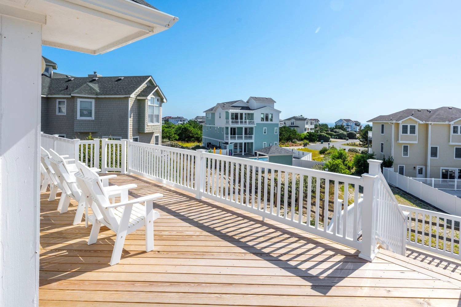 "We took full advantage of the outside area. The view of the ocean from the upstairs deck was lovely and the pool was clean and well maintained. The screened in porch was an added bonus on a stormy night. We also enjoyed being able to use the Ocean Hill Club parking and beach access - it made for a very convenient trip to the beach on those hot days."