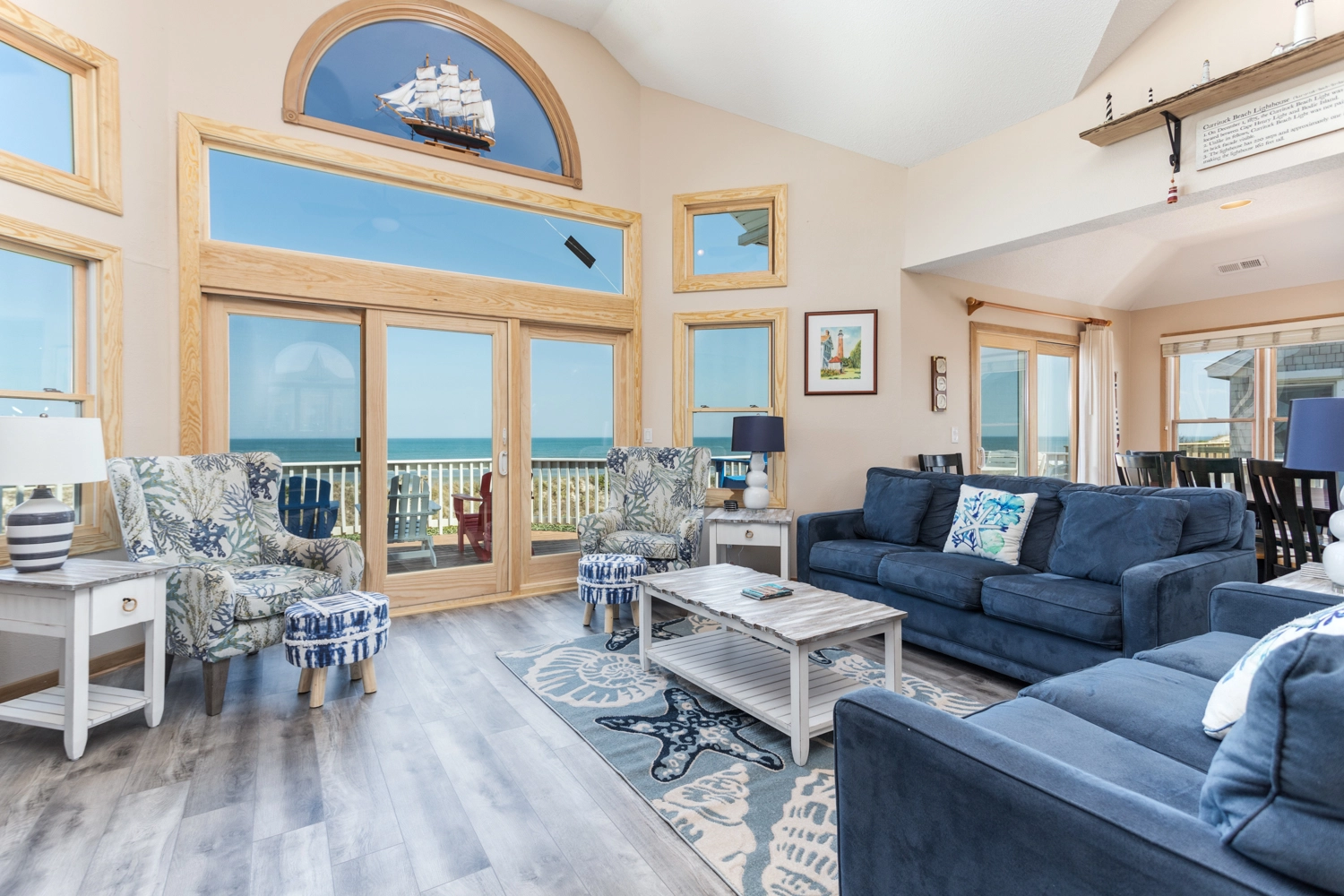 "The location is perfect. Beach front, which is perfect for watching the sunrise, the dolphins play, and close to the Currituck Sound for a walk see the sunset. Beautifully decorated, spacious, clean, and everything is good repair. In the 5 years I have been staying here, if I ever needed anything, Twiddy and Company were always there and fast to respond. Love this house!"