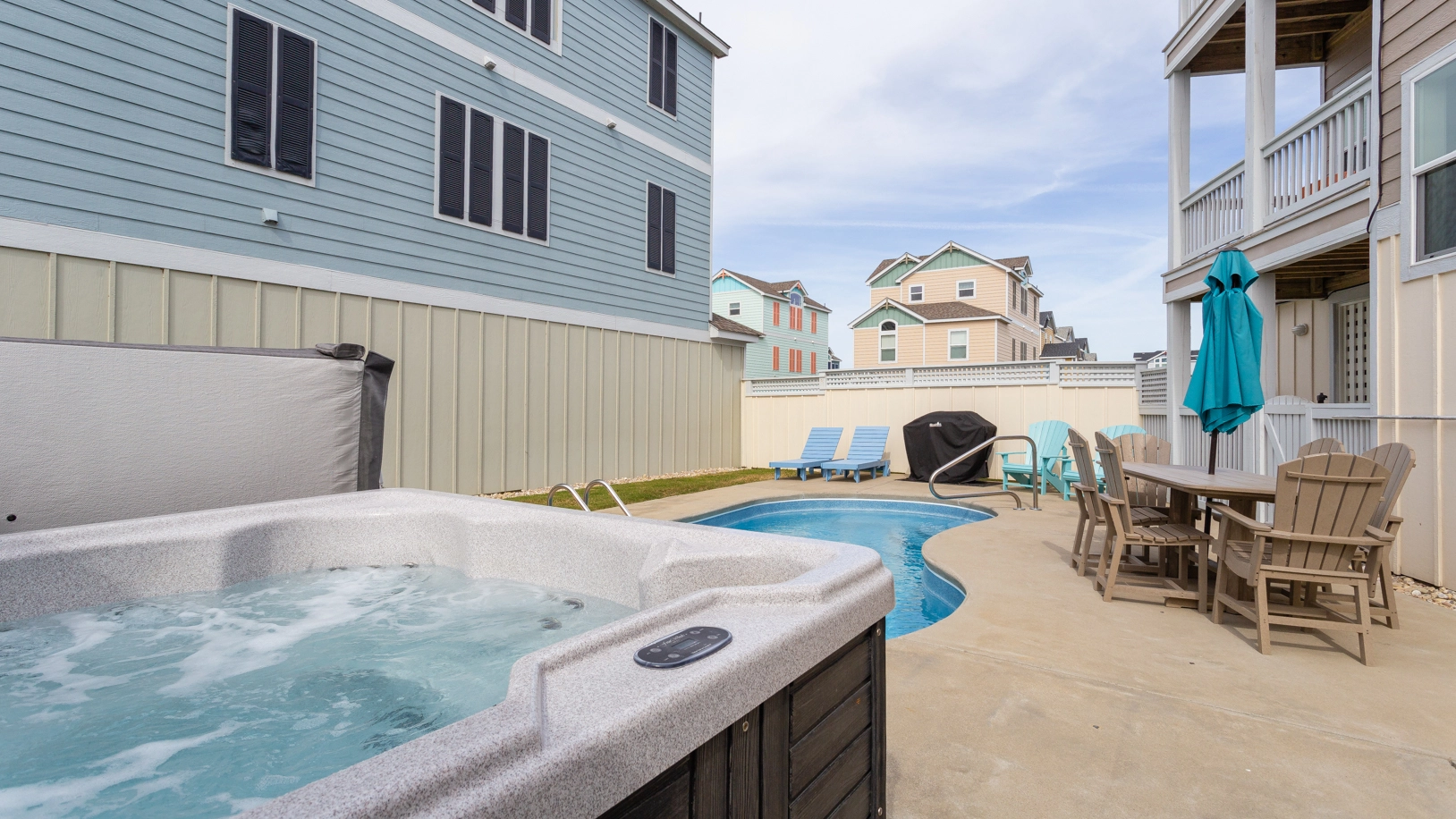"home was spacious with a pool and hot tub and close enough to the beach"