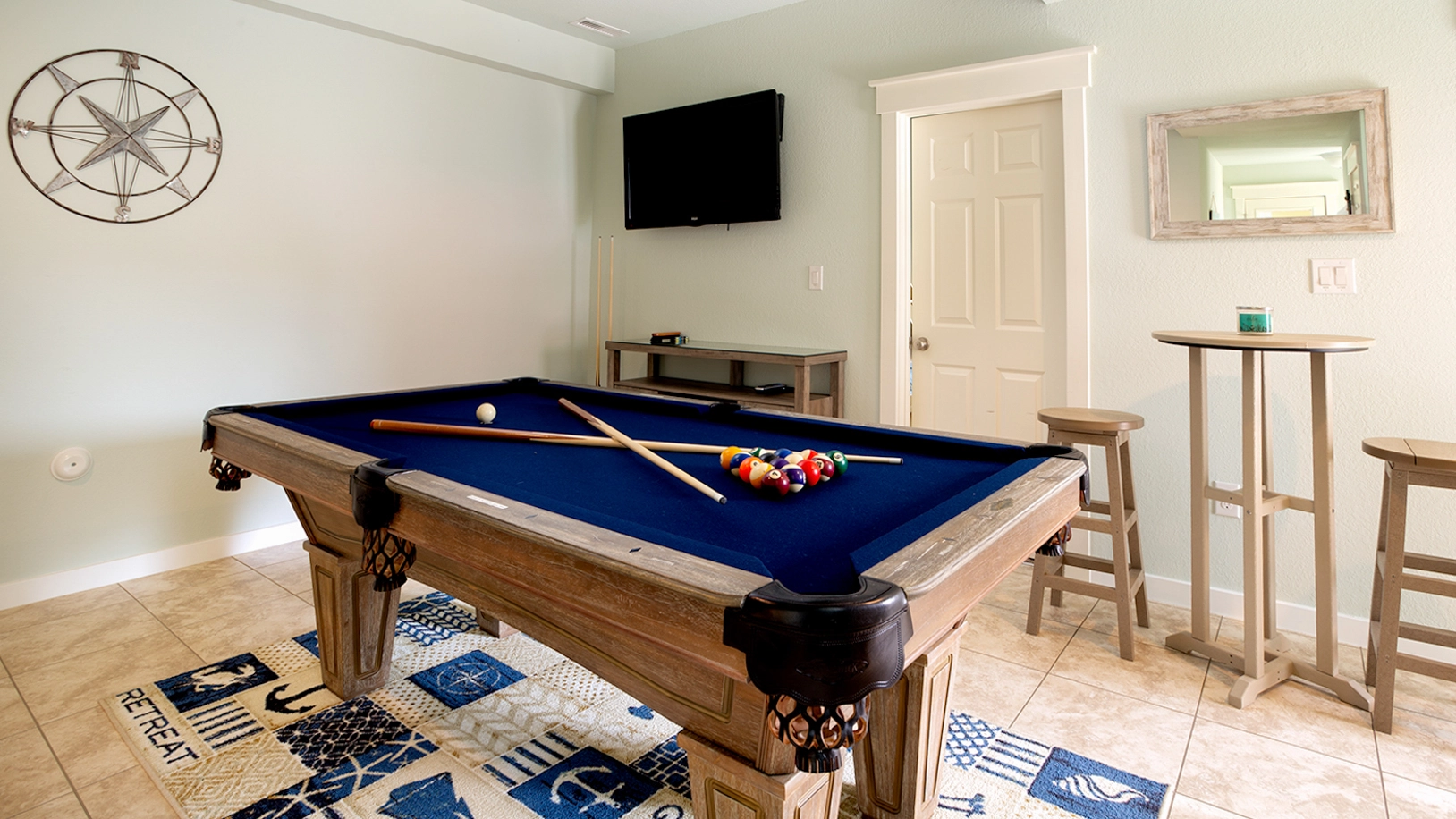Rec room with pool table.