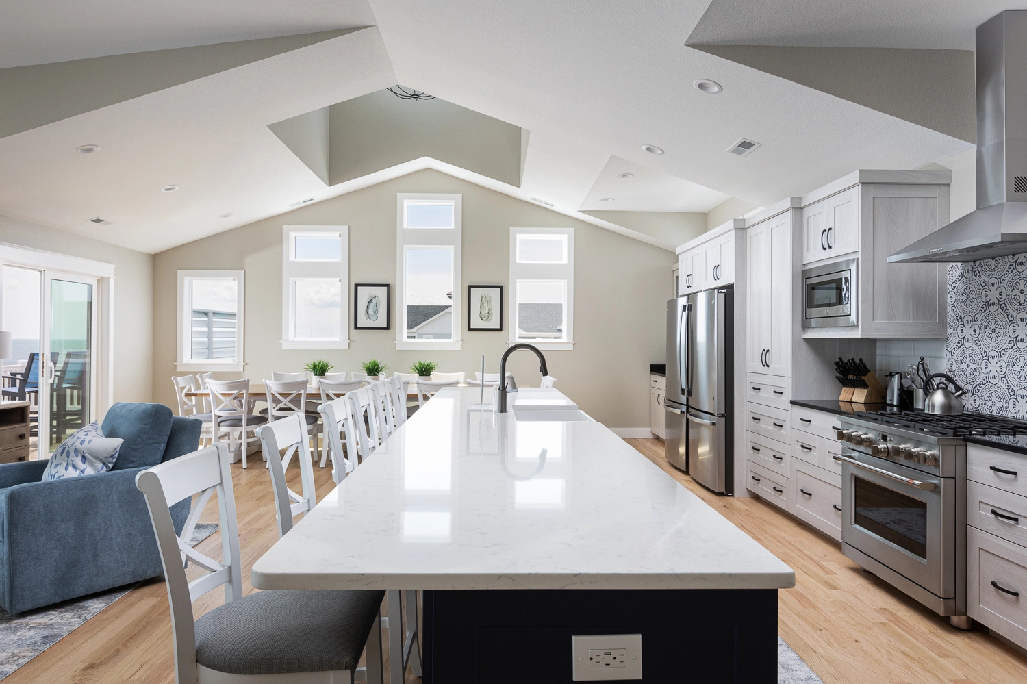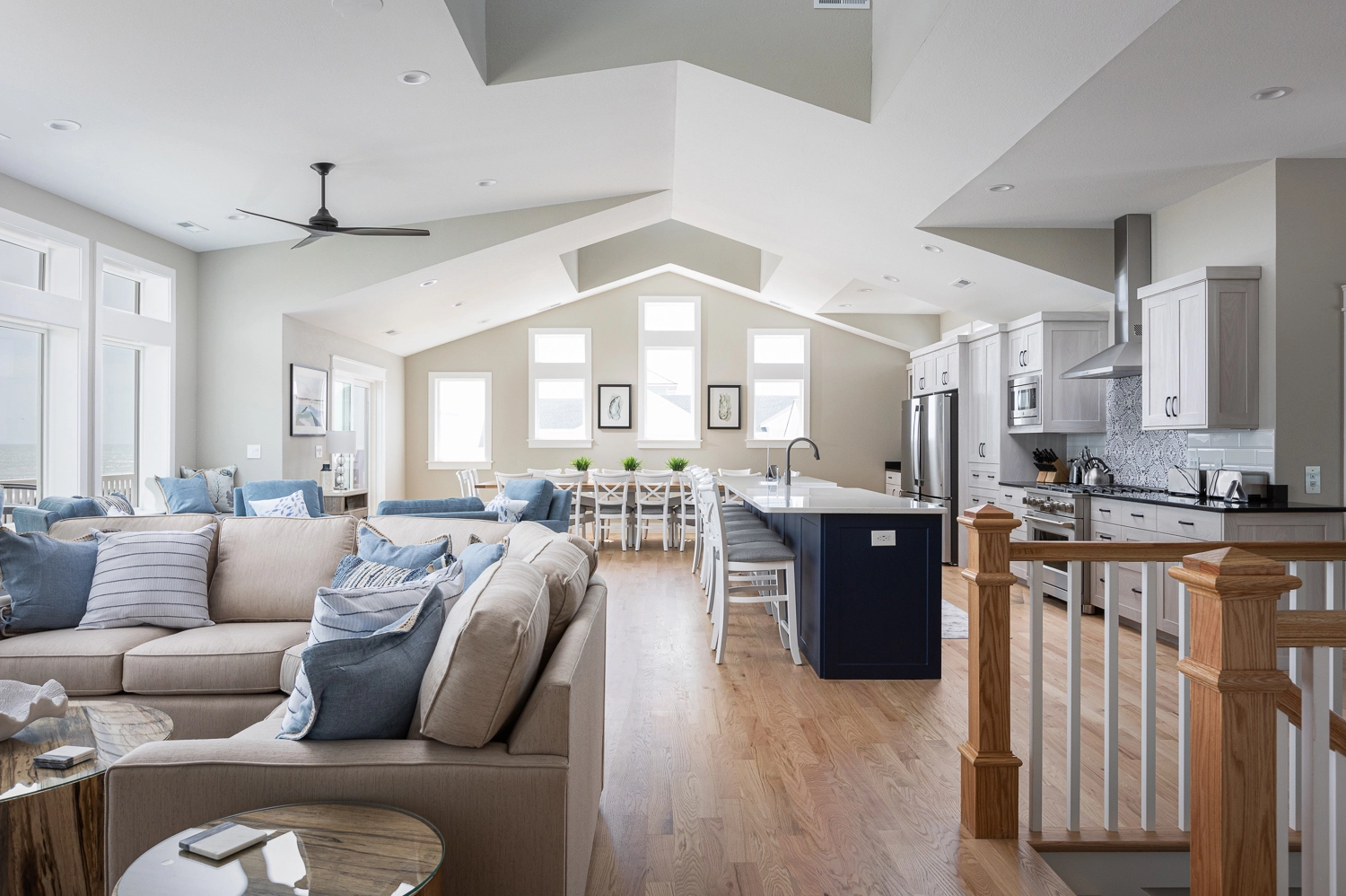 "Loved all the windows and view of the ocean the house has such a warm feel to it and allows for such great conversation the furniture is amazing inside and out the ocean views from all the bedrooms was amazing the kitchen was very well stocked and so fun to cook in"