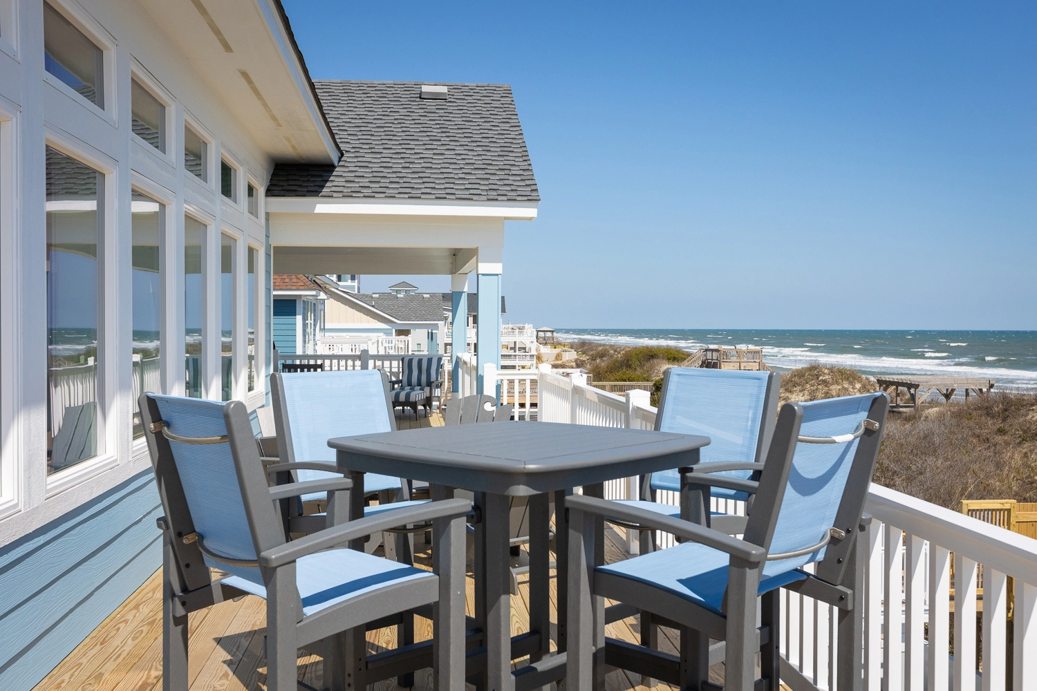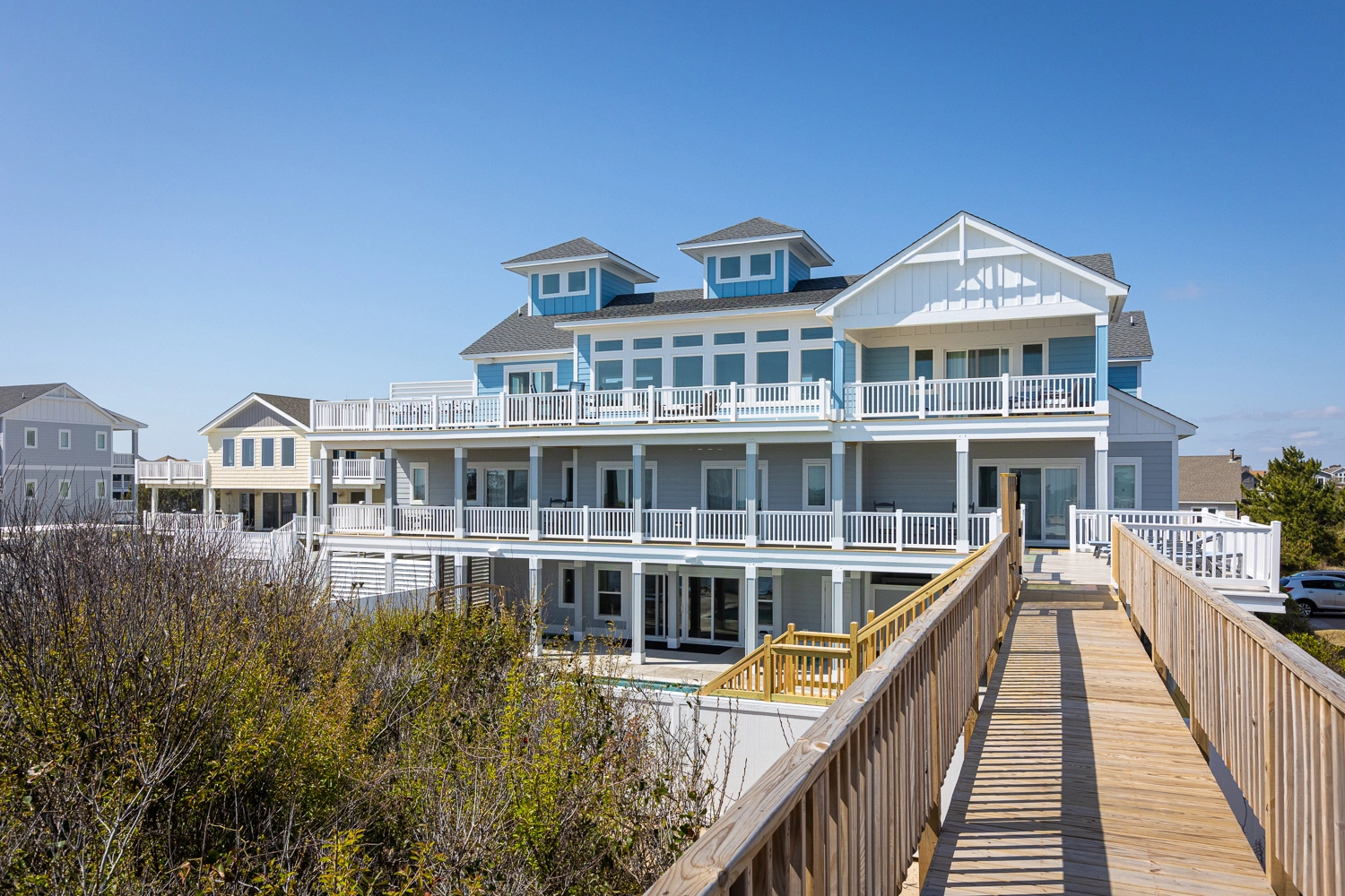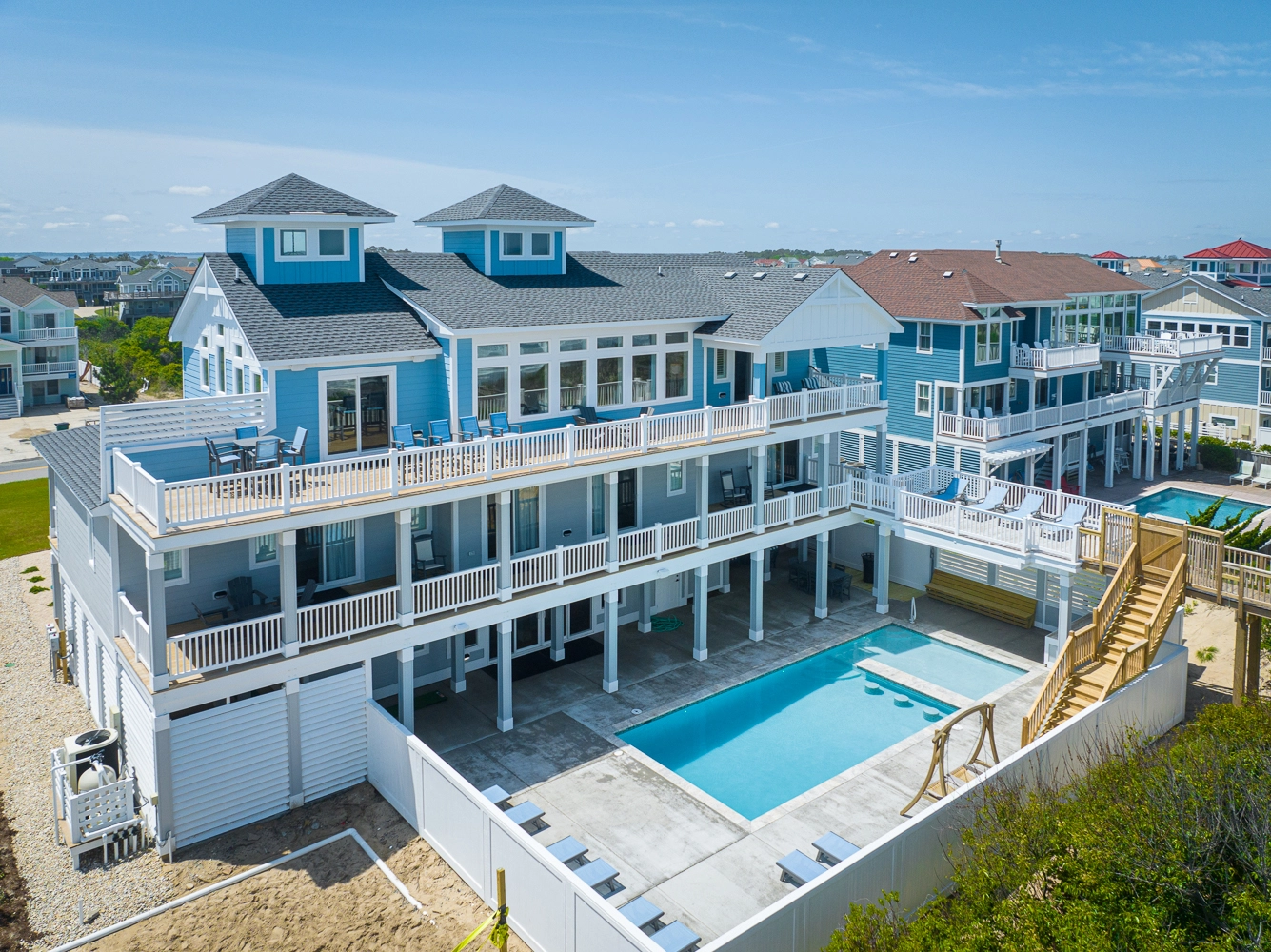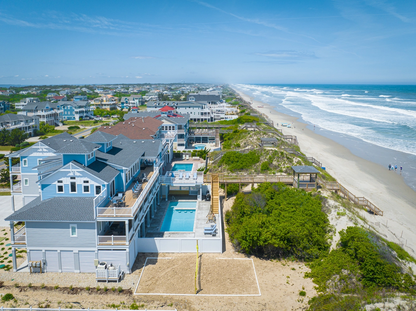 "Pool area, large living and dining areas, dune deck and beach access,"