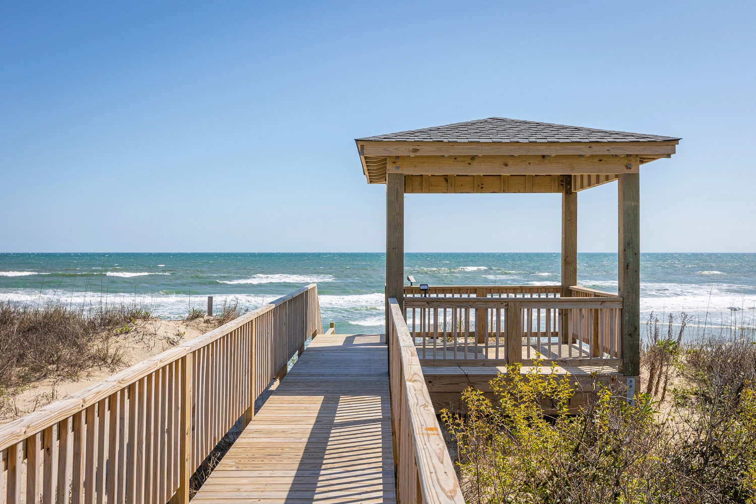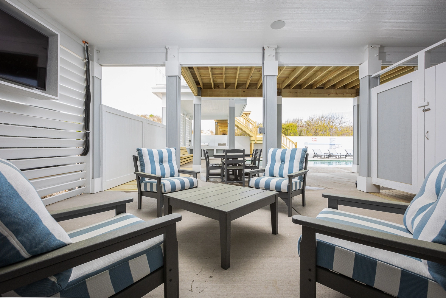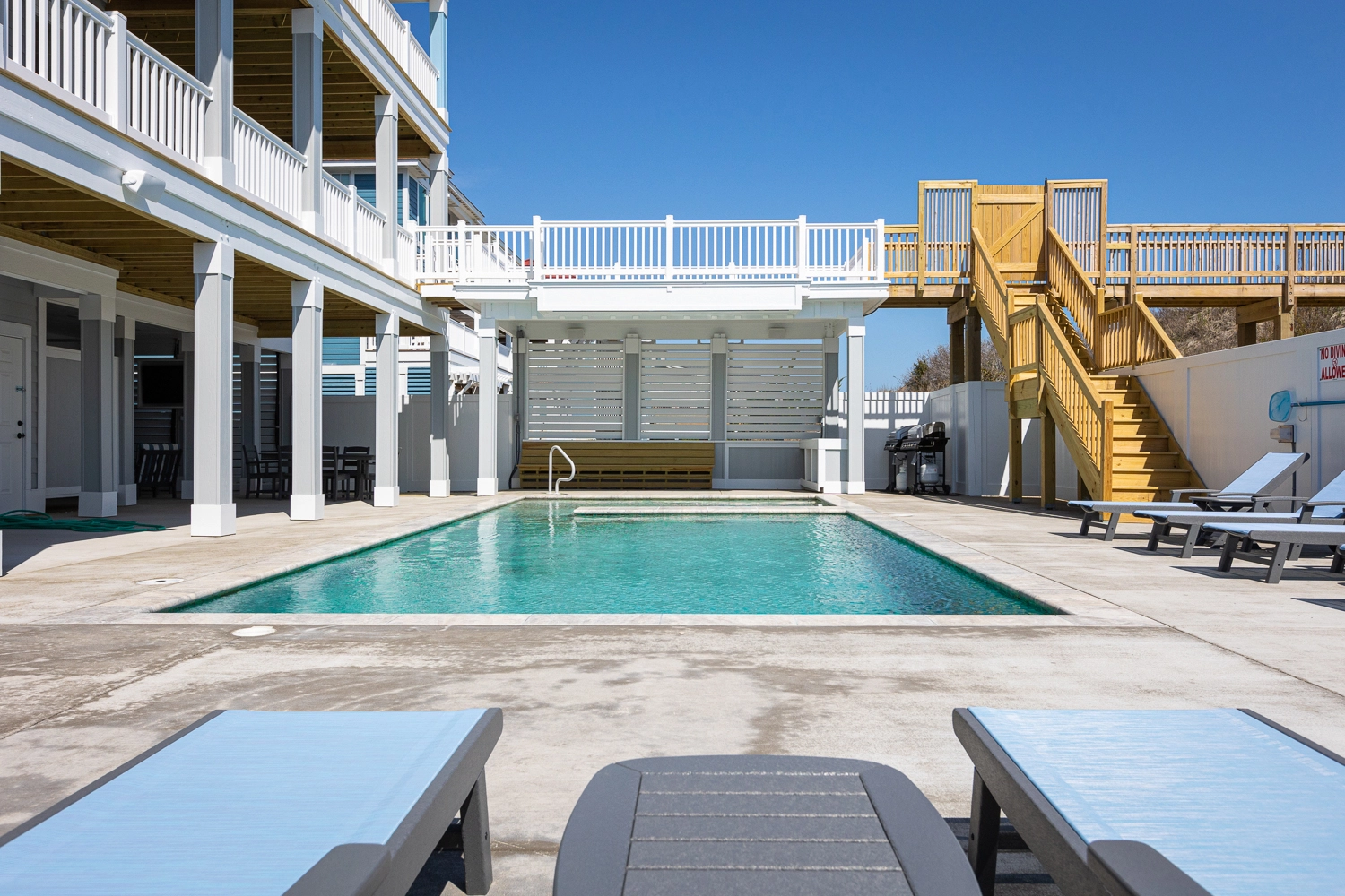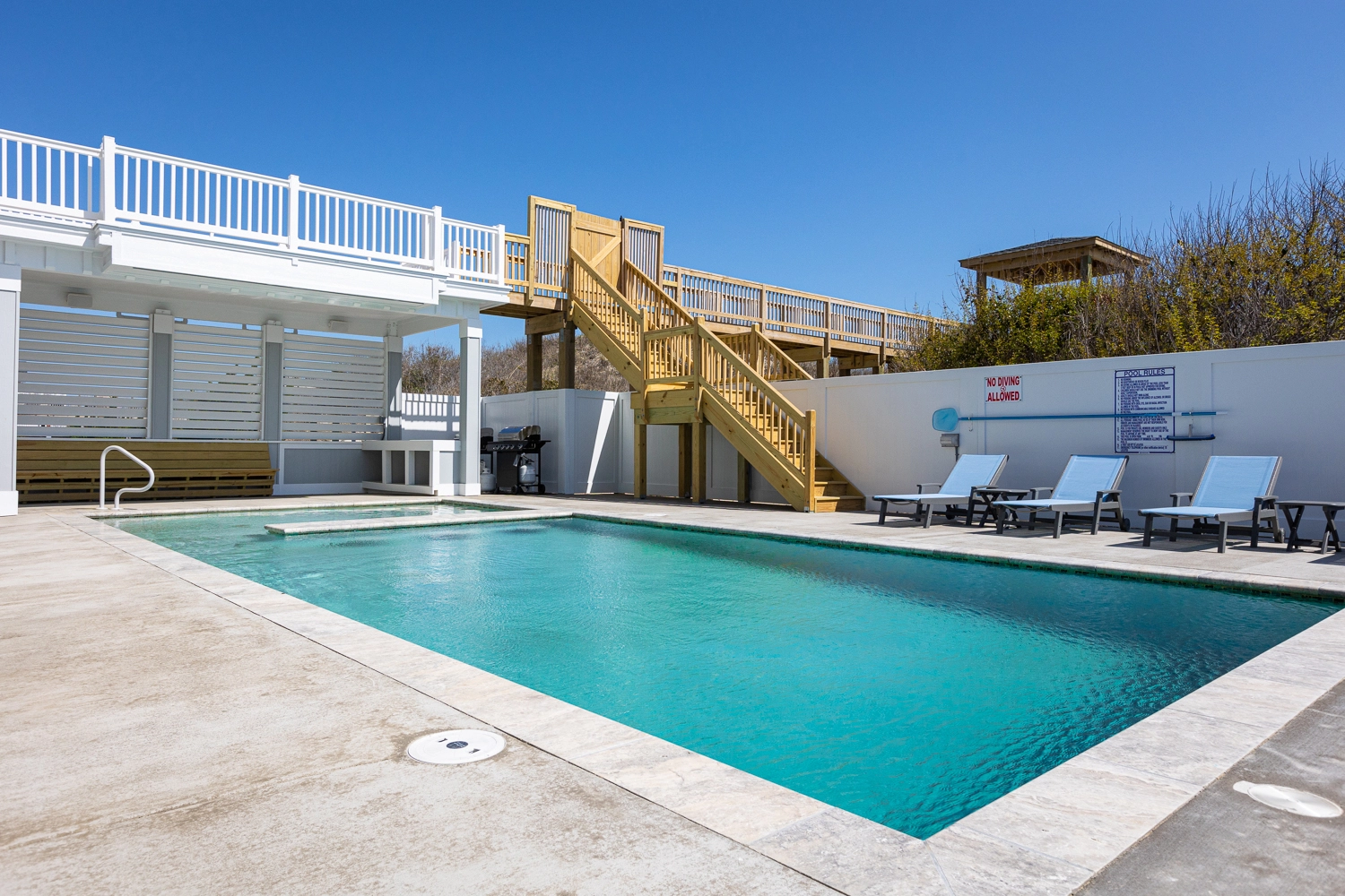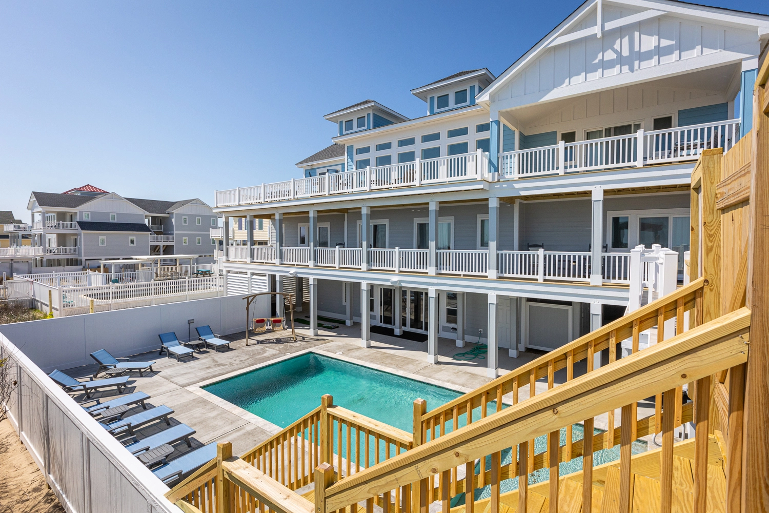 "Pool area, large living and dining areas, dune deck and beach access,"
