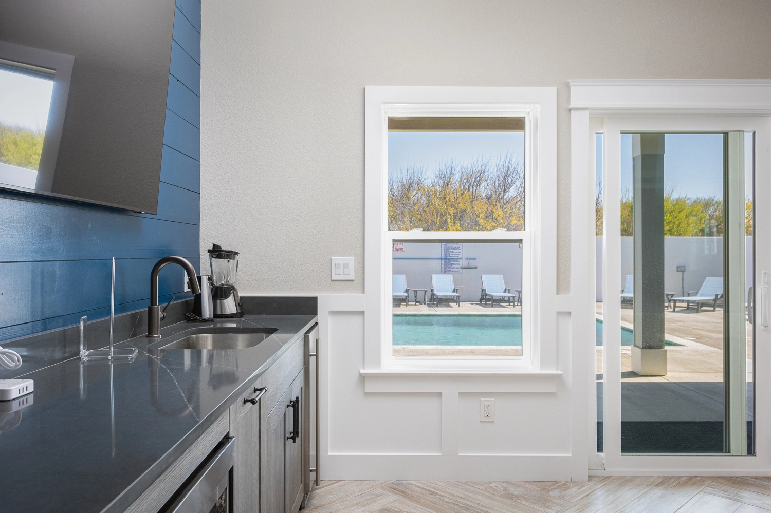 "The home was a new build that was very well done. The home had plenty of space for our family gathering and bonus of having separate space in the guest house (with a sitting area, fridge and wet bar)!! The views from the third floor were amazing and the kids loved the waterfall feature in the pool"
