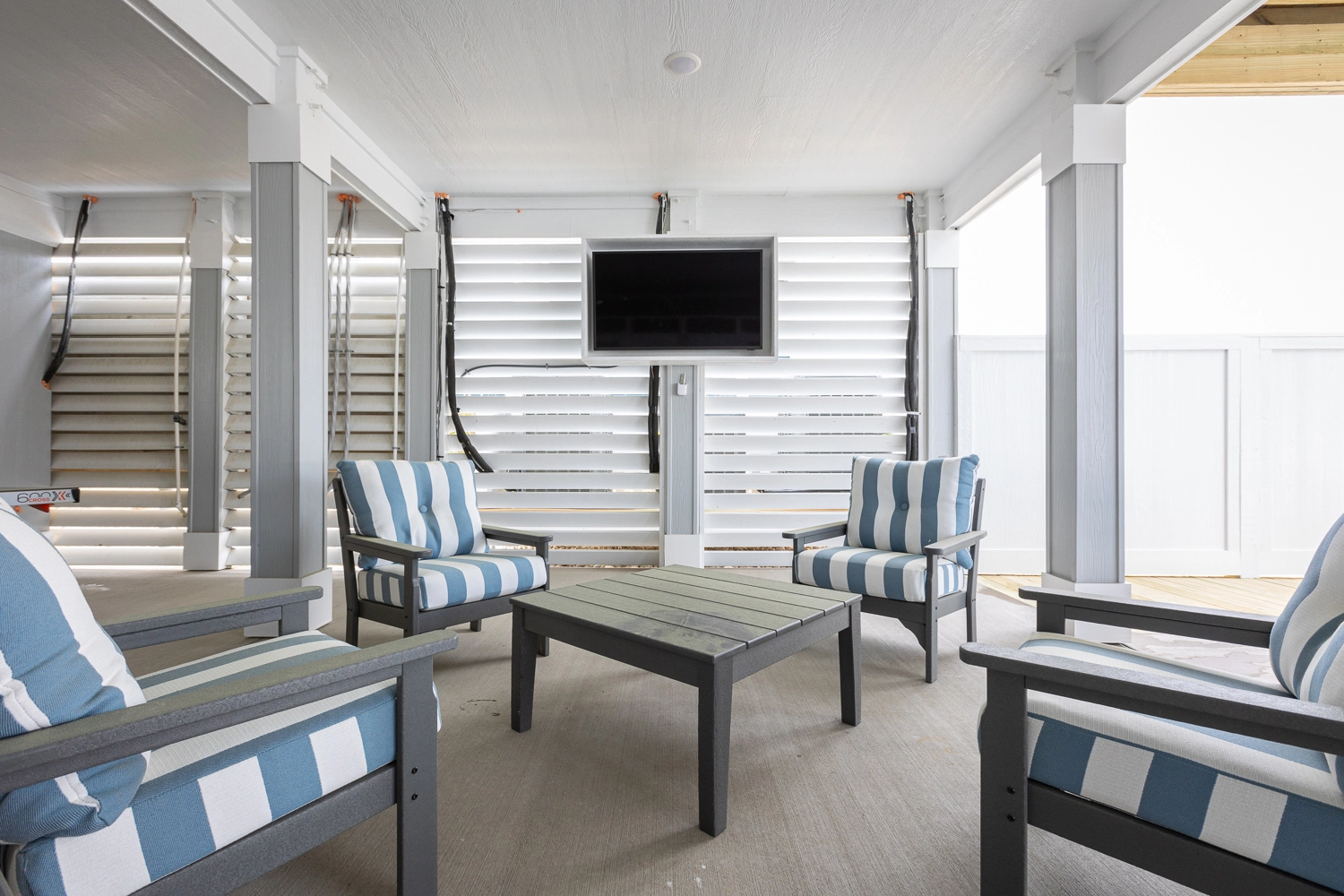"We liked that it was very clean and had the stalls for the shower and toilet outside. Also loved the sitting area with the tv and ping pong table."