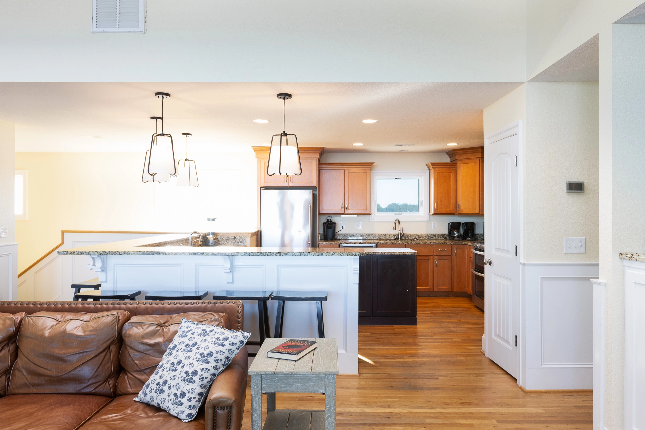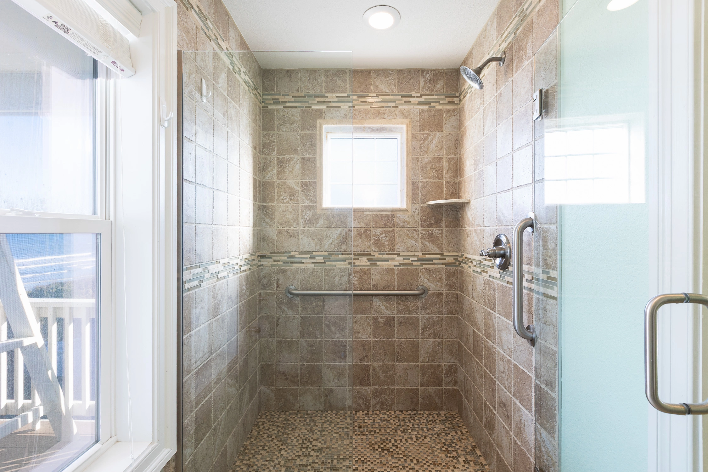 "This house has an amazing deck and ocean views from both top levels, with a great ocean view from the hot tub. The decor is nice, bathrooms and showers are updated, and it is well equipped with dish and glassware. The living room furniture is comfy if a little spotty in places. The farmhouse dining room table really sold us on this house. It was our center point for gathering, eating, and puzzling. I could not give 5 stars because dishwashers and stove need replacing. We were told the homeowner plans to do this after the pandemic when appliance manufacturing is back on-line. There is no stock available on OBX."